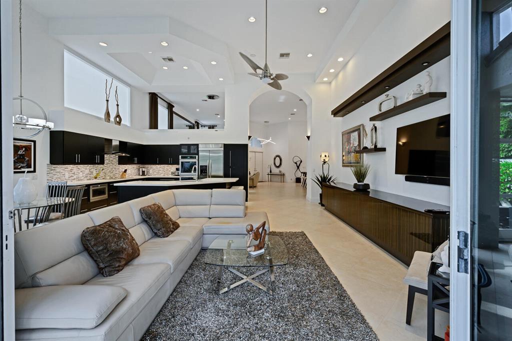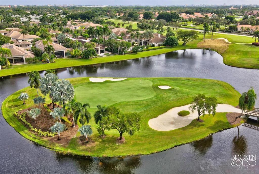 Extraordinary renovated one story, 3 bedroom + office, 3.5 bath Bermuda model in the rarely available Fairway Lake village of Broken Sound. Features include: Soaring ceilings, split bedrooms, open concept floor plan, 24X24 tile floors and contemporary custom built-ins. The gourmet kitchen is open to the family room with quartz countertops, stainless appliances and a complimentary center island. The primary suite features 2 bathrooms his/hers and 2 custom walk in closets. Sip your morning coffee inside the screened in patio or enjoy Florida sunshine by the private heated pool surrounded by marble pavers and perfectly manicured astro turf. This single family home rests on a private cul-de-sac lot, don't miss out!