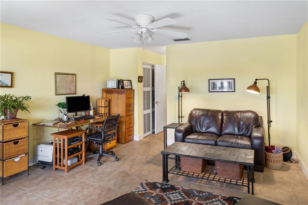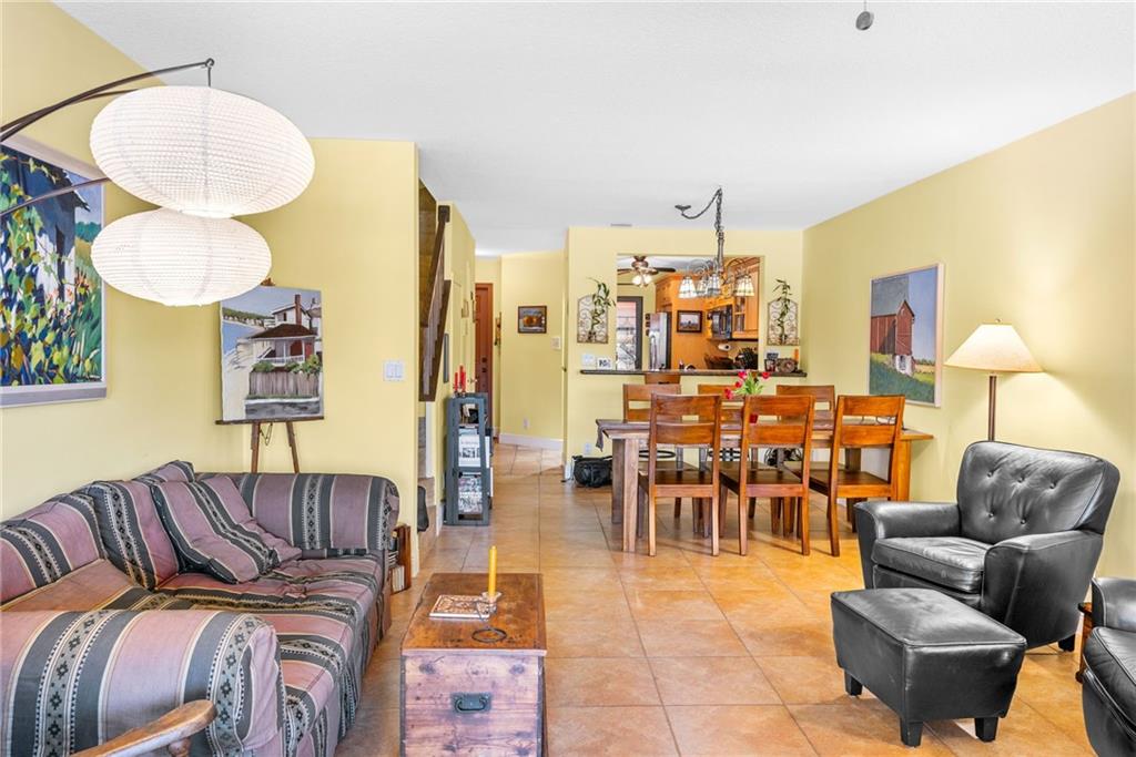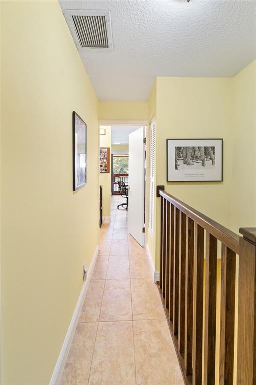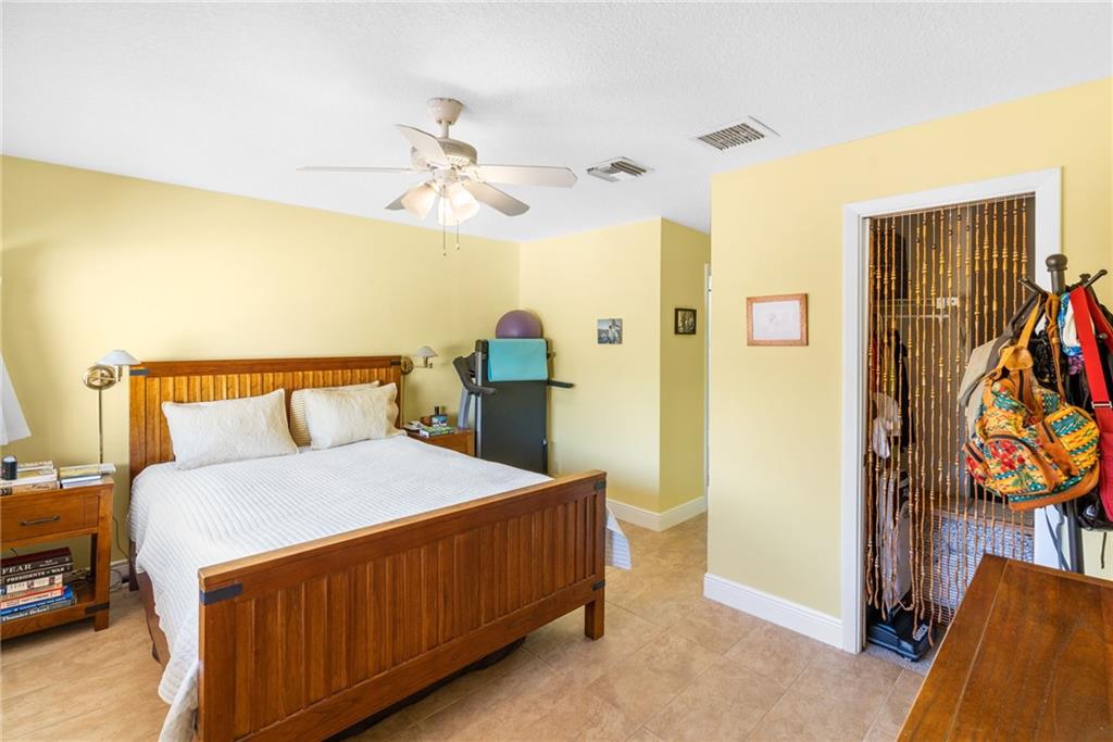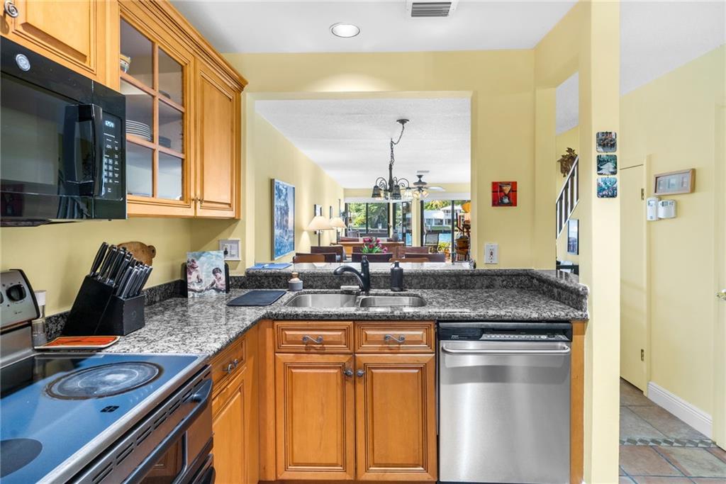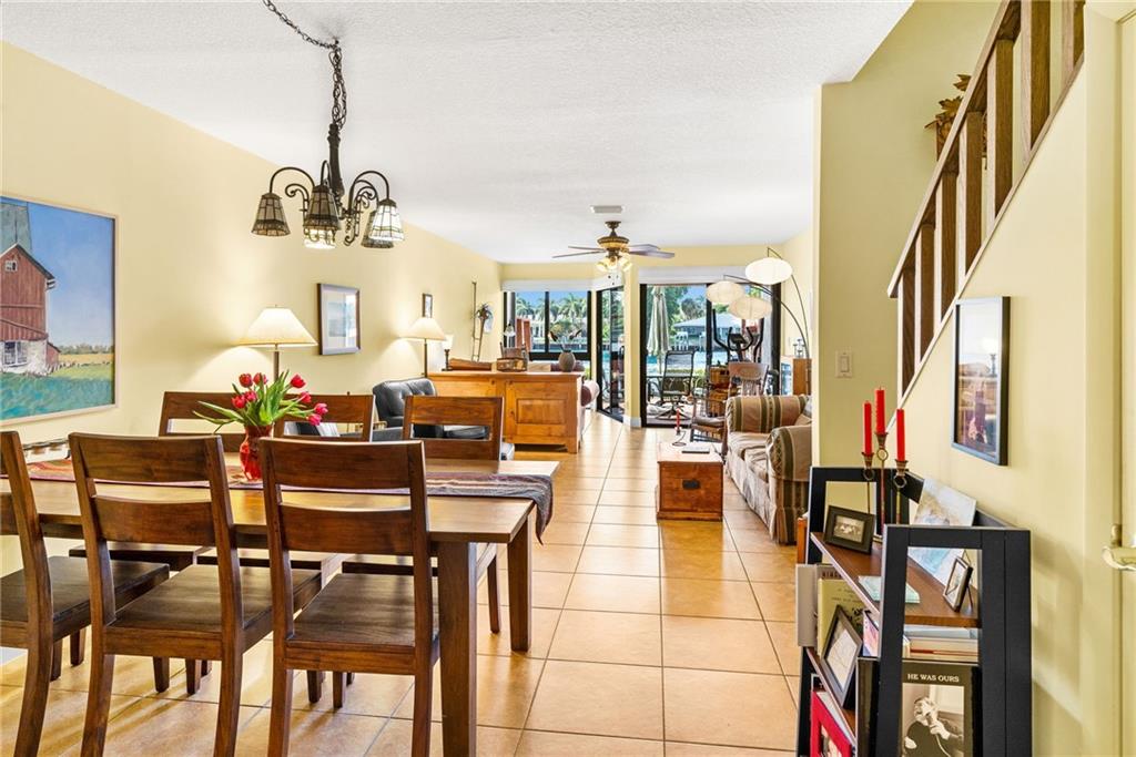 The first floor opens up to a beautiful intercostal view where you can enjoy watching panoramic sunsets. Just outside is a private deck, The kitchen design is perfect for cooking and storage. The main flooring is a beautiful tile throughout. Upstairs there are two large bedrooms. The guest room has a walk in closet, access to a remodeled full bath and laundry. The guest room also has its own private patio. The master suite faces the intercostal with a balcony overlooking the water and has a walk in closet and remodeled master bath. The entire home has impact windows and doors.
