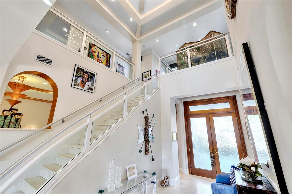 This gorgeous Contemporary custom estate built by Terry Cudmore & designed by Randy Stofft in the premier community of Lake Rogers features 5BD,5.1BA, elevator, South exposure, generator,24in marble all on 1st floor. Architectural ceilings, impact glass, wet bar with copper designer back splash, copper designer chandelier A luxurious first floor master suite w. his & her baths, 2 custom built-in closets, marble flooring, stain glass windows, granite counters. A large gourmet kitchen features custom cabinet with built-in desk, stainless appliances, eat in area with upgraded pendant lights. Outdoor living you have a summer kitchen, large patio area, pool & spa, screened in porch, 80 ft. of Deepwater & just 5 lots from the Intracoastal. (MORE)