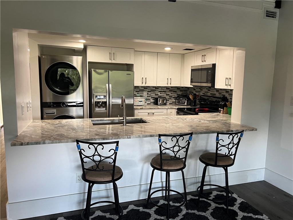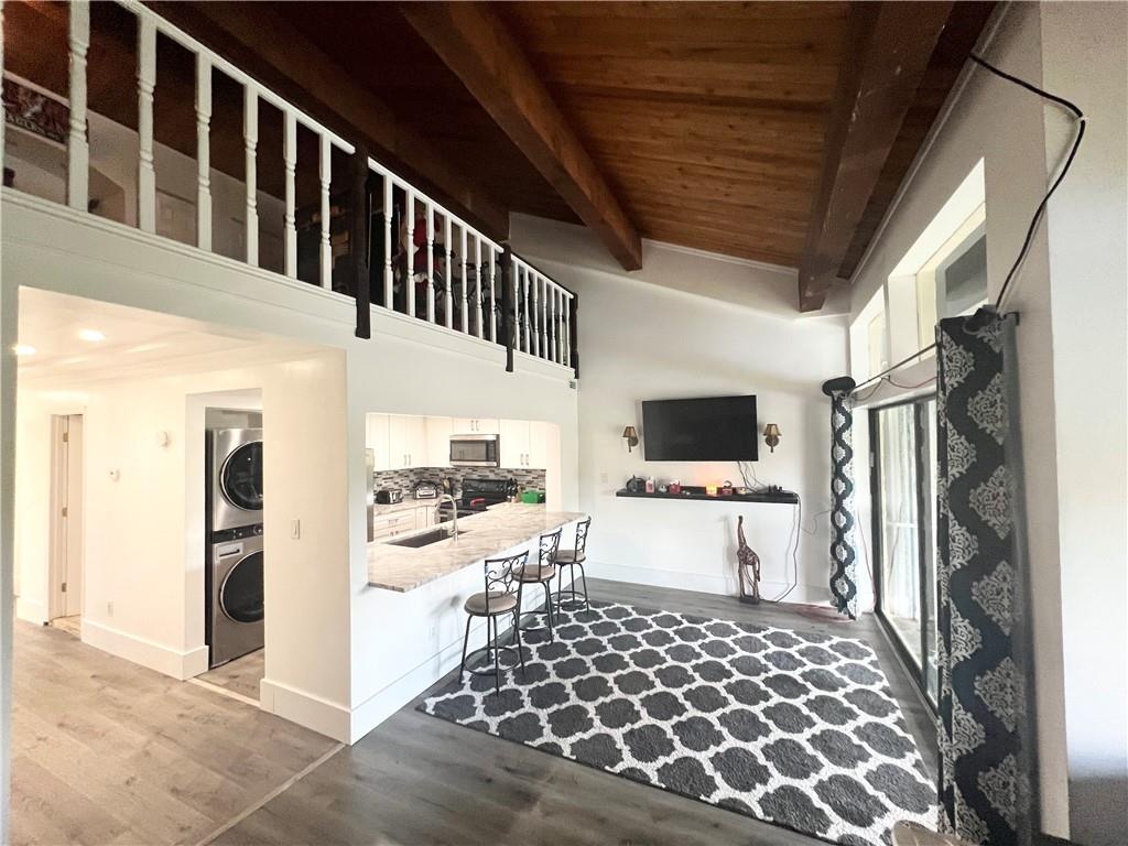Don't miss out on this one! Overlook your waterfront home from the screened patio. Updated 2022- Gray woodlook vinyl Flooring, Kitchen cabinets white and granite counters, Microwave, sink and faucet, washer and dryer and hot water heater, Master bedroom and 2 nd bedroom on the first floor, Plus a Large loft. Low maintenance fees, no rental restirctions, no pet restrictions, Great for investors.