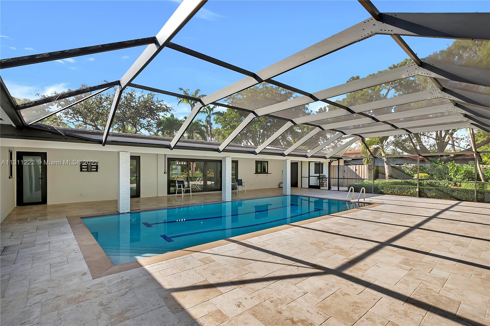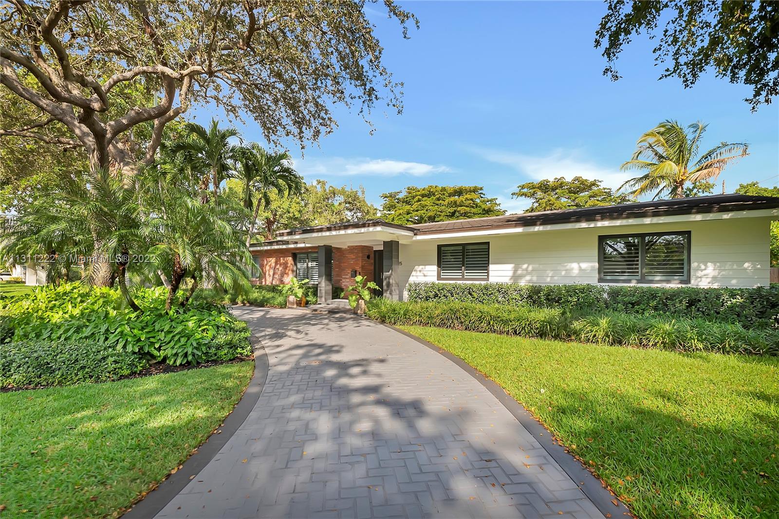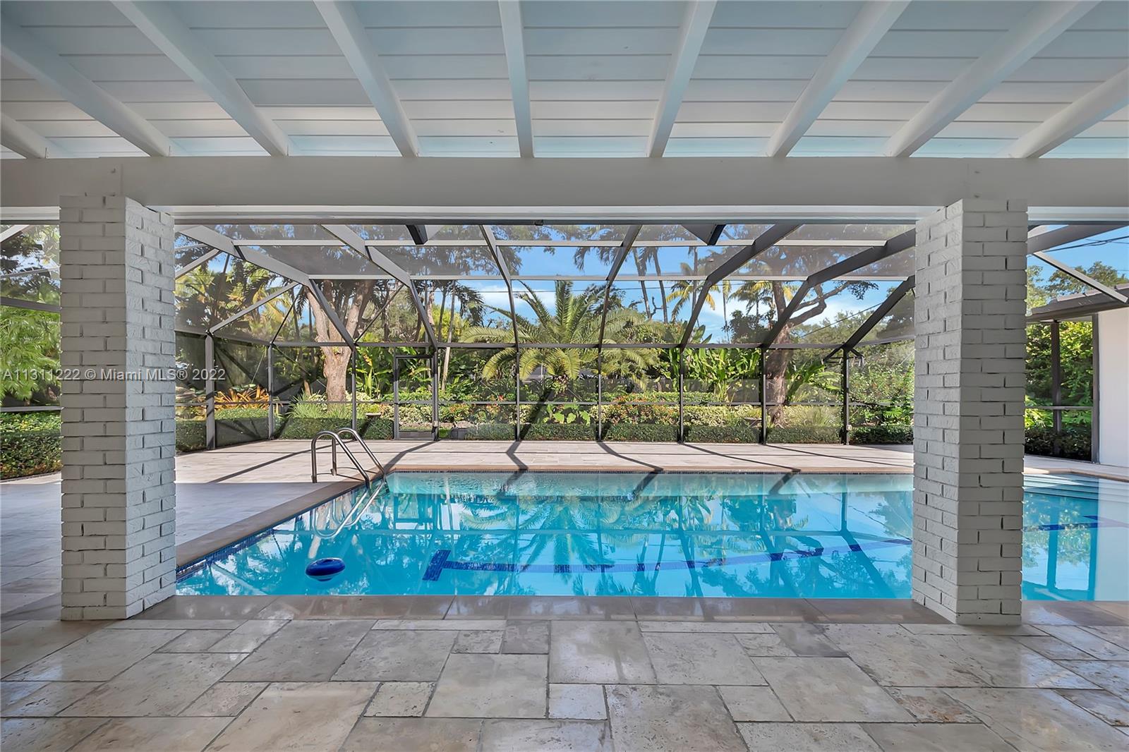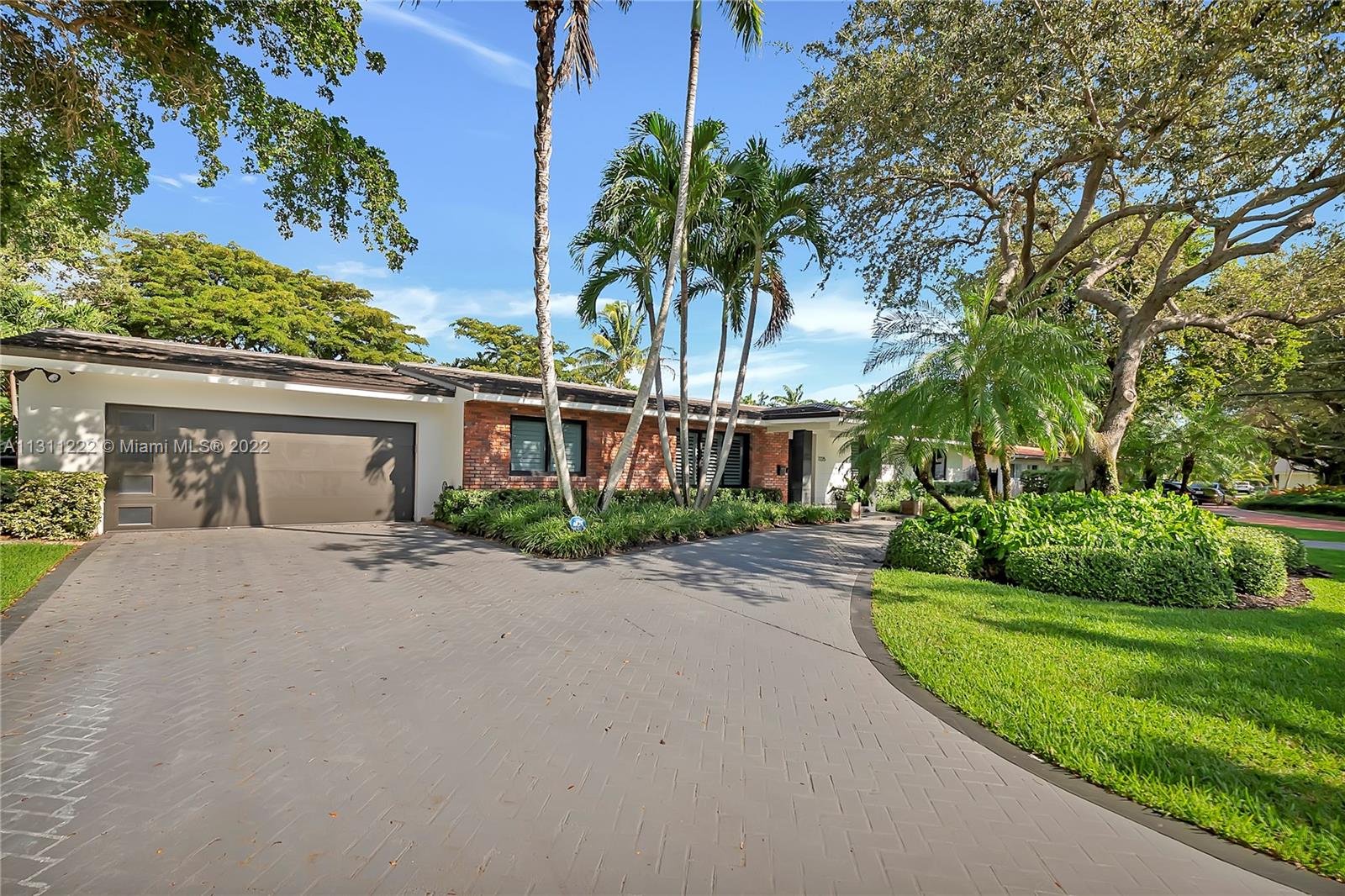 Renovated, 4 bdrm/ 3 bath home in the Village of Pinecrest. Great entertaining spaces. Open formal living room and family room. Formal dining off the kitchen. Modern yet charming kitchen with white cabinetry, subway tile backsplash, granite countertops & new stainless appliances including double ovens. Warm blonde wood plank tile flooring. Spacious, light-filled bedrooms. Fantastic, updated bathrooms. Wonderful primary suite w/ double walk-in closets, dual sinks & view out to the pool. Spacious screened travertine patio w/ deep overhang & pool. Lush yet perfectly manicured landscaping, including a tranquil pond w/ waterfall. New flat tile roof, impact windows & doors. Large laundry room. 2 car garage, circular driveway.