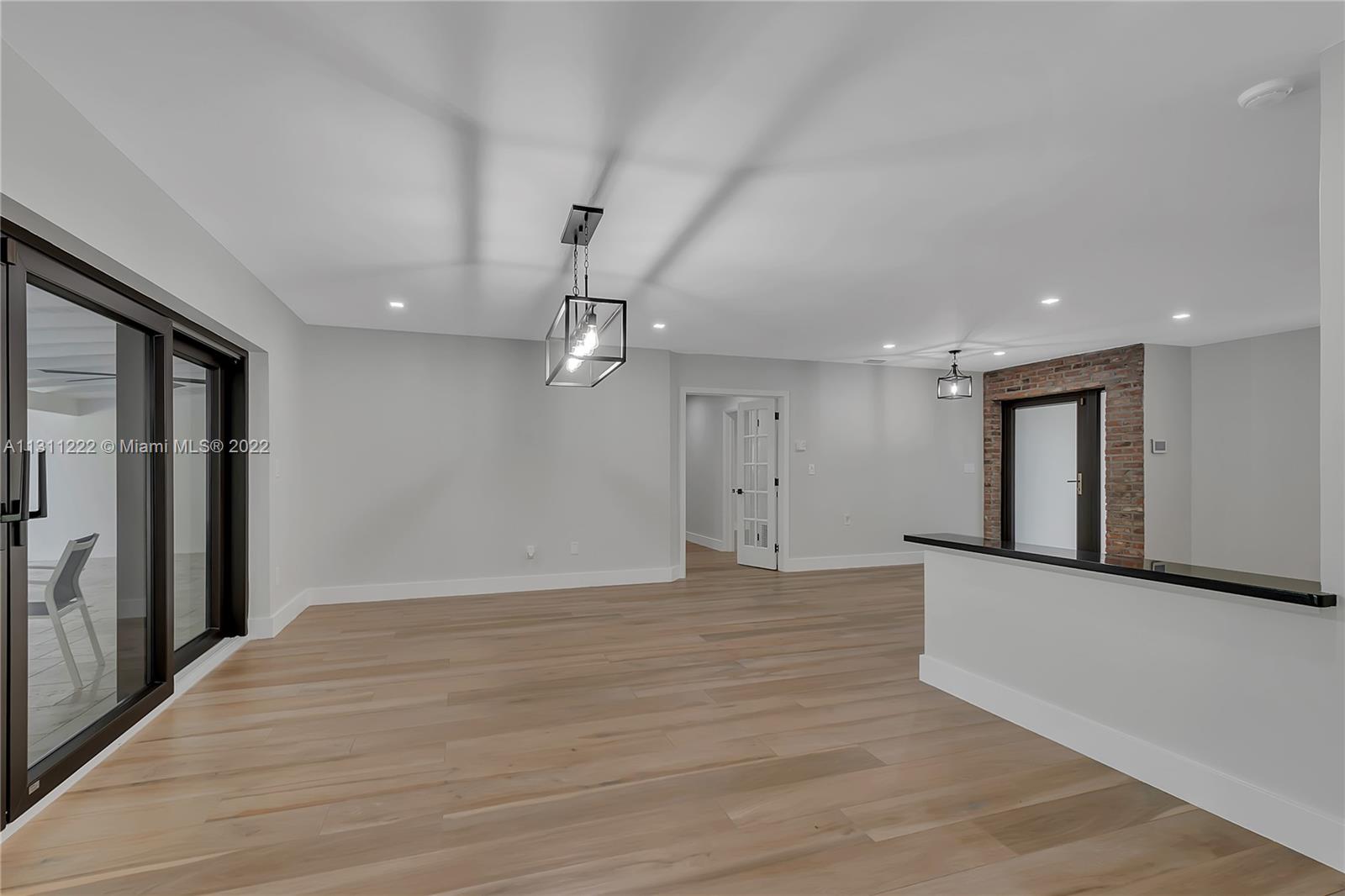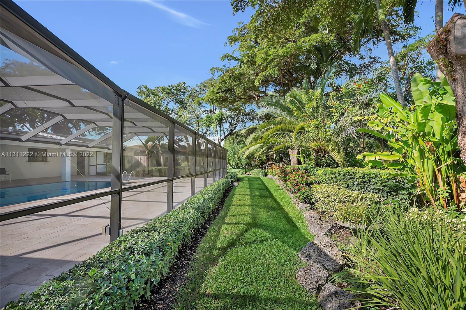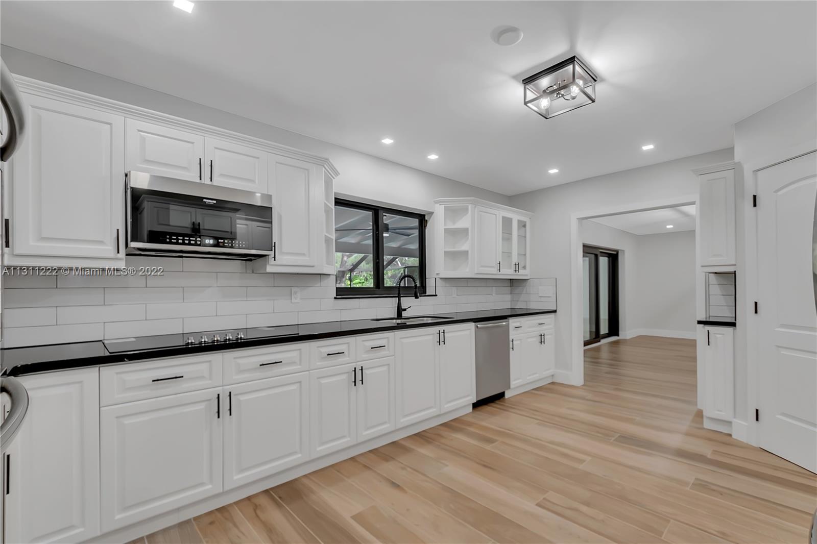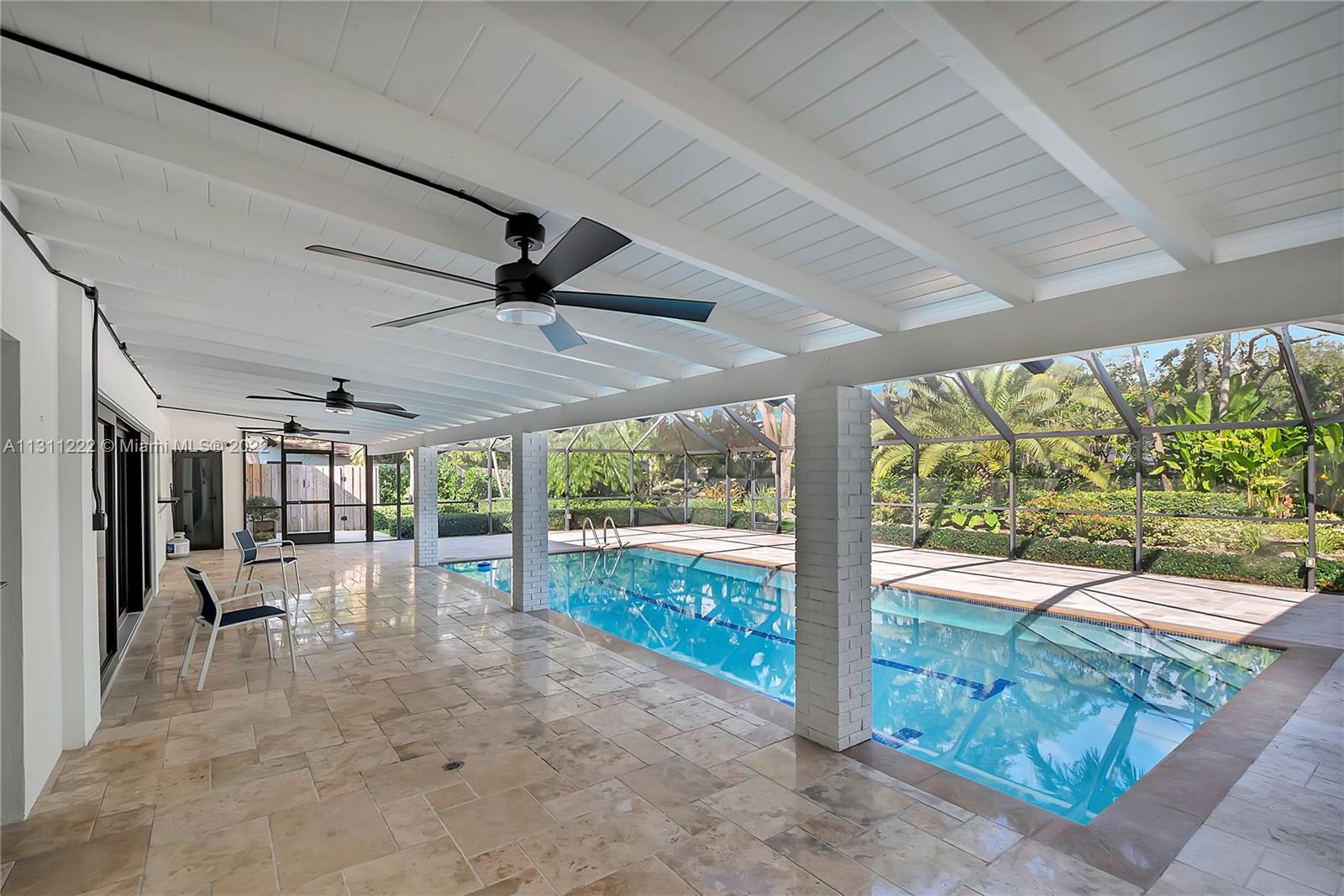 Renovated, 4 bdrm/ 3 bath home in the Village of Pinecrest. Great entertaining spaces. Open formal living room and family room. Formal dining off the kitchen. Modern yet charming kitchen with white cabinetry, subway tile backsplash, granite countertops & new stainless appliances including double ovens. Warm blonde wood plank tile flooring. Spacious, light-filled bedrooms. Fantastic, updated bathrooms. Wonderful primary suite w/ double walk-in closets, dual sinks & view out to the pool. Spacious screened travertine patio w/ deep overhang & pool. Lush yet perfectly manicured landscaping, including a tranquil pond w/ waterfall. New flat tile roof, impact windows & doors. Large laundry room. 2 car garage, circular driveway.