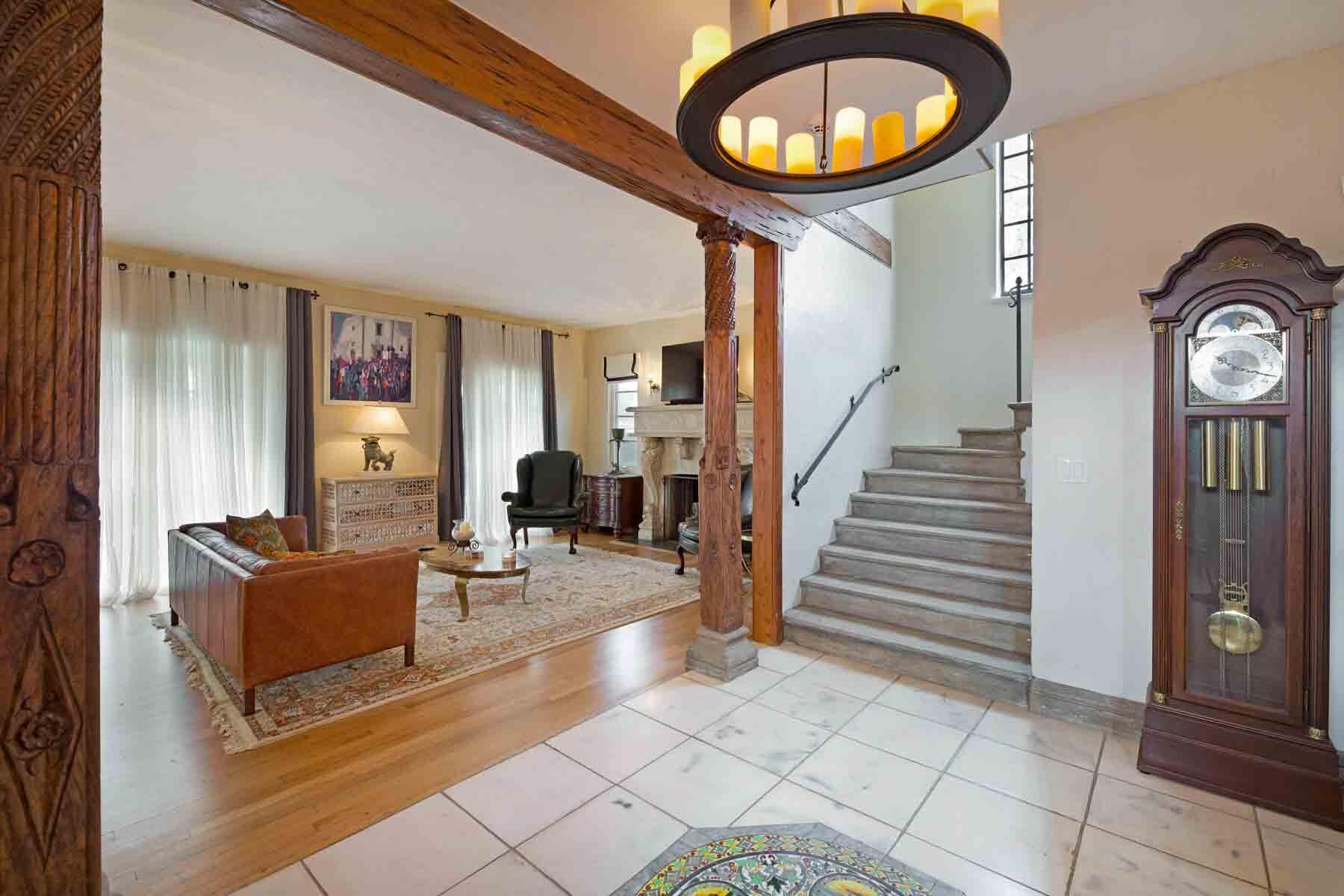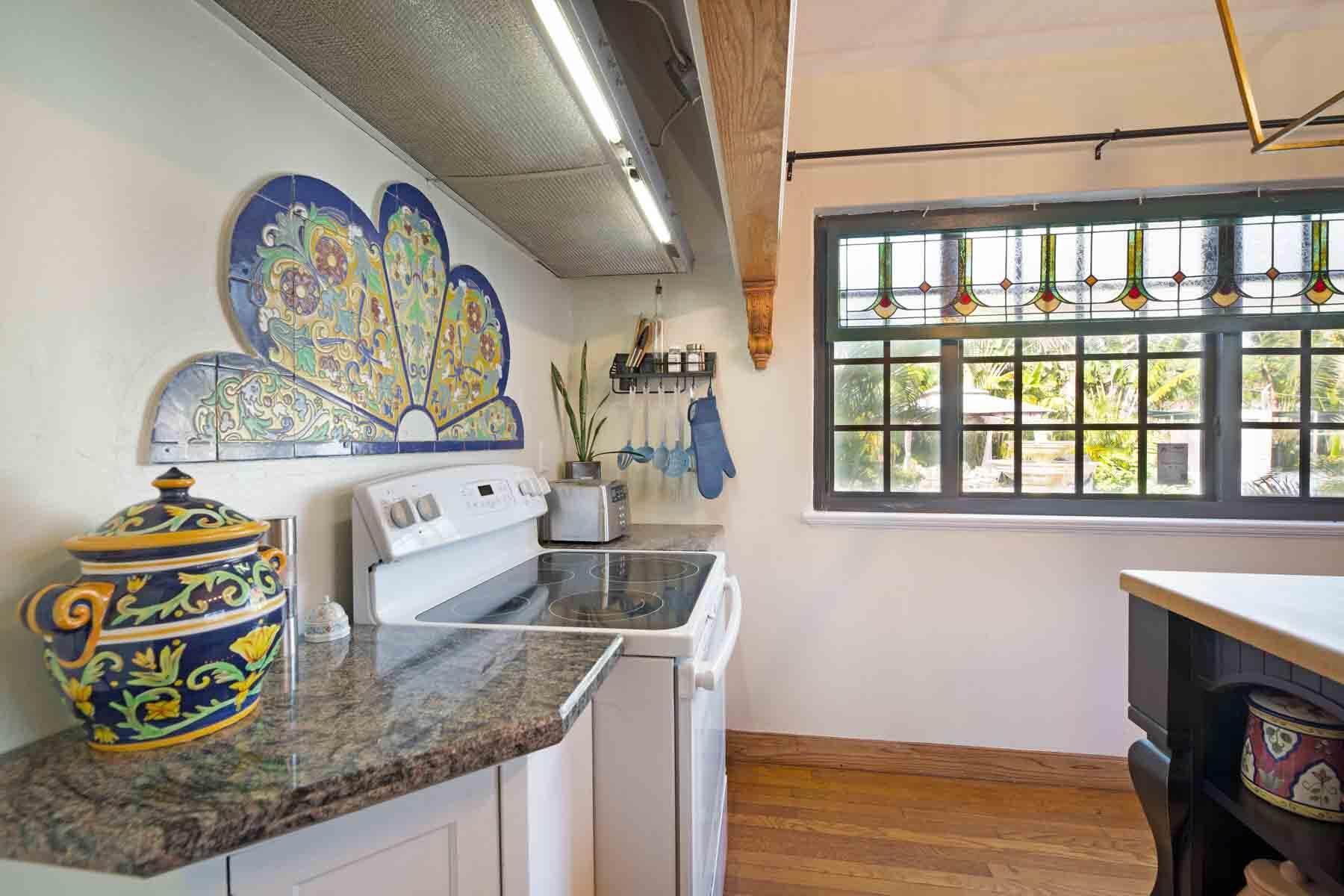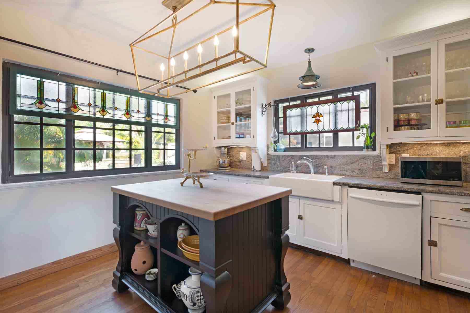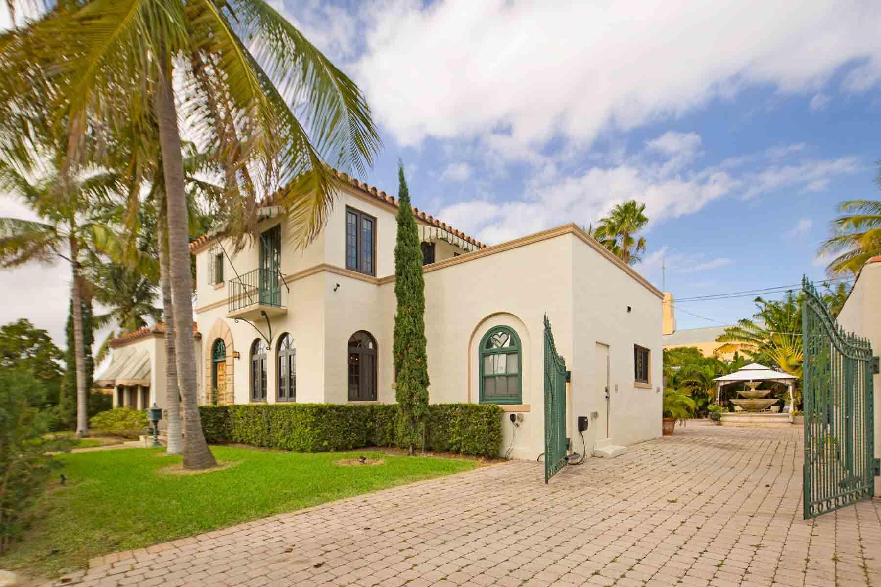 Private Mediterranean double-lot oasis in historic Northwood built in 1930. Rebuilt after the 1928 hurricane-the owner commissioned a commercial architect-resulting in rare commercial grade steel girders and steel windows. Spanish-style, 3 bedroom/3 bath main house. Formal dining room, library, pecky cypress ceiling sunroom, butler's pantry, and becoming bathrooms. Rich details include teakwood columns, cream painted walls, and wood burning fireplace. Large medallion-tiled foyer with high ceilings and stone stairway invites you to the romantic second floor where an expansive second story outdoor, entertaining balcony runs the length of home with classic French doors. Original hardwood floors throughout, new roof 2018, brand new custom impact windows, and 2 car garage. Central air.