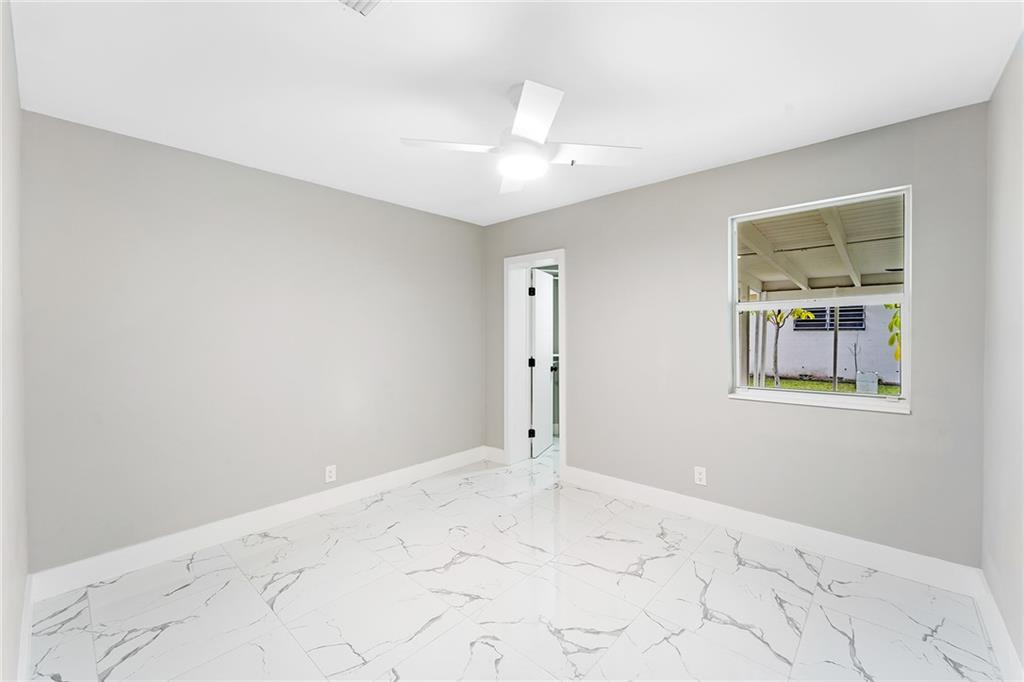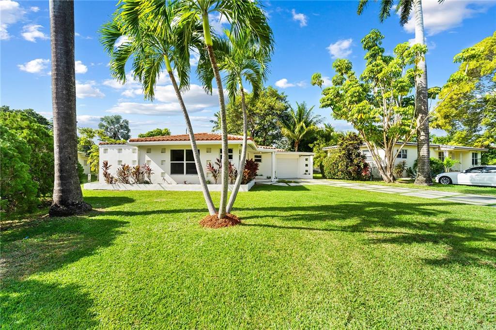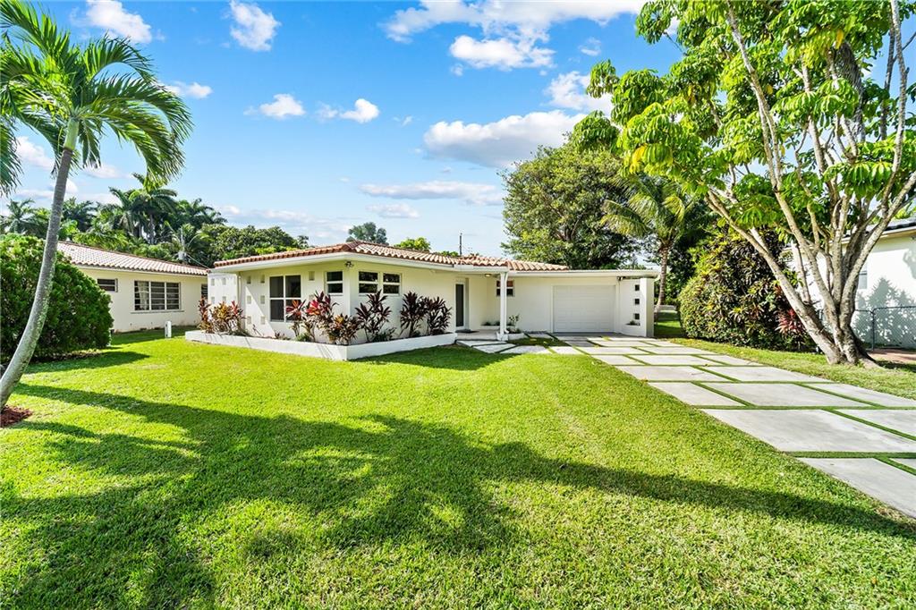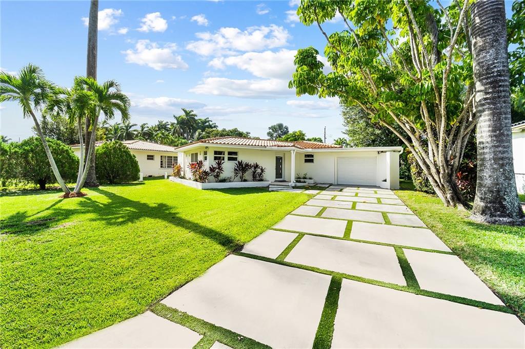 Dazzling upgrades, open spaces + stunning backyard at this 3-bed, 2-bath in wonderful Miami Shores! Miami Shores CC down the street, Miami Country Day School, tennis + downtown in minutes. Latest enhancements: cement box driveway, hurricane-proof 1-car garage door, porcelain tile + more within the residence. Super-spacious lot w/ dots of palms + vast green stretches. Tucked on a dead-end street for max tranquility! Structurally, a popping Spanish tile roof, Deco-esque back patio w/ fans + tons of windows for natural light. Inside, flexible spaces, recessed lights + gleaming tile. Open kitchen w/ gray shaker cabinets, modern white counters + stainless steel appliances. Primary suite includes ensuite w/ supersized, porcelain draped shower + stunning royal blue vanity. See it to believe it!
