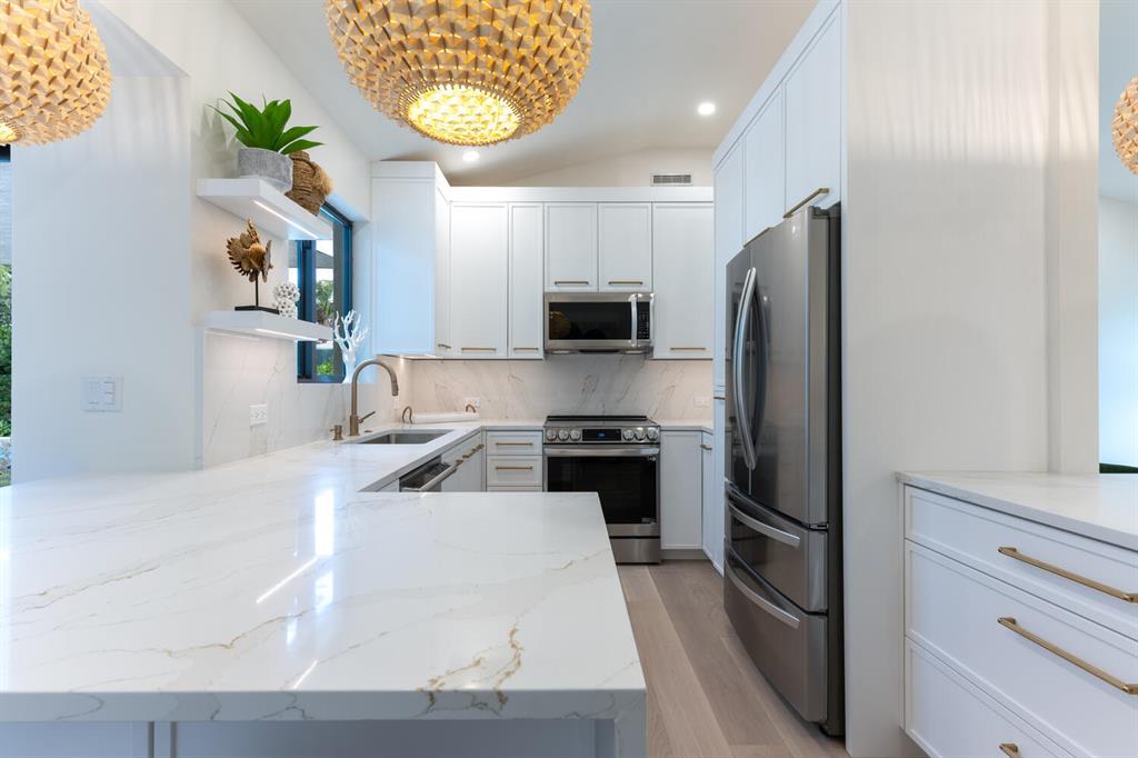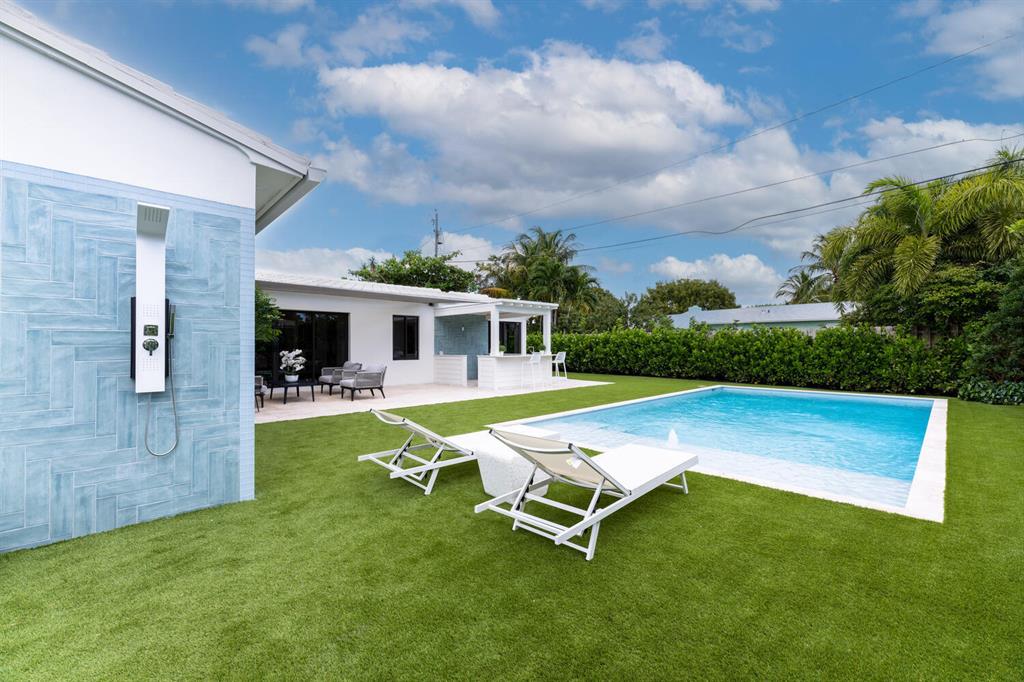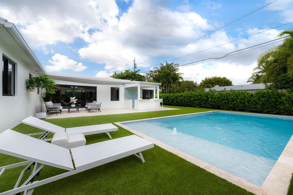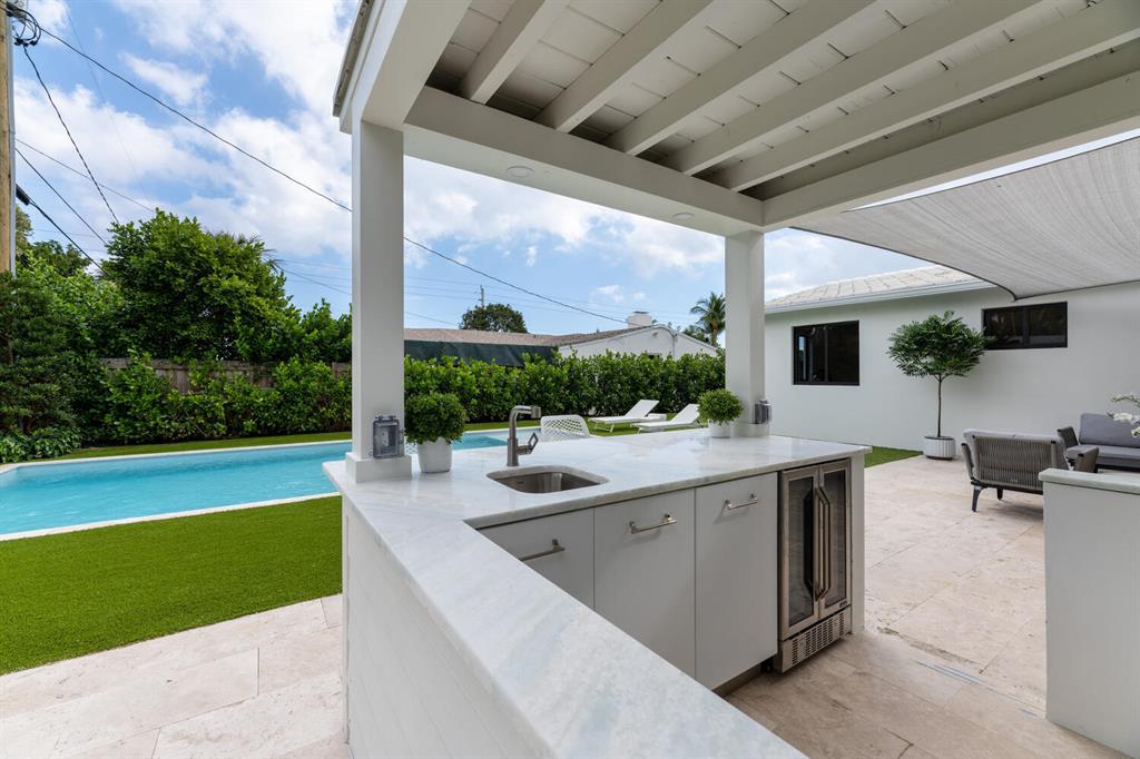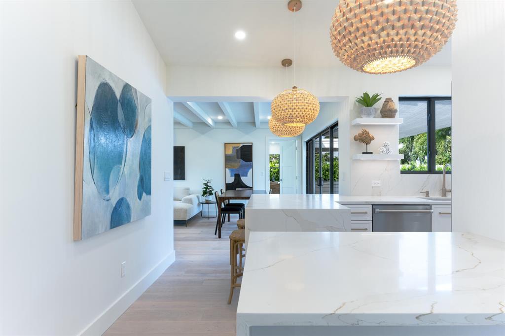 Everything you've been waiting for! Perched on an oversized, newly landscaped corner lot in the hot neighborhood known as SoSo you will find a ''like-new'' 3/2 gem, just completely renovated in 2022; beyond what the eye can see. All new plumbing (even underground), all new electric, new swimming pool, new floors, new kitchen & appliances, new bathrooms, raised ceiling, privacy gates & hedges, impact windows & doors, artificial turf around pool, built-in closets, outdoor shower, covered entertaining center, much more! This light-filled, thoughtfully designed home offers pleasing neutral shades & textures throughout including Jerusalem stone fireplace, pecky cypress mantel, wood floors, mahogany bathroom vanity, porcelain tile, leathered quartz bathroom counter, travertine driveway & patios.