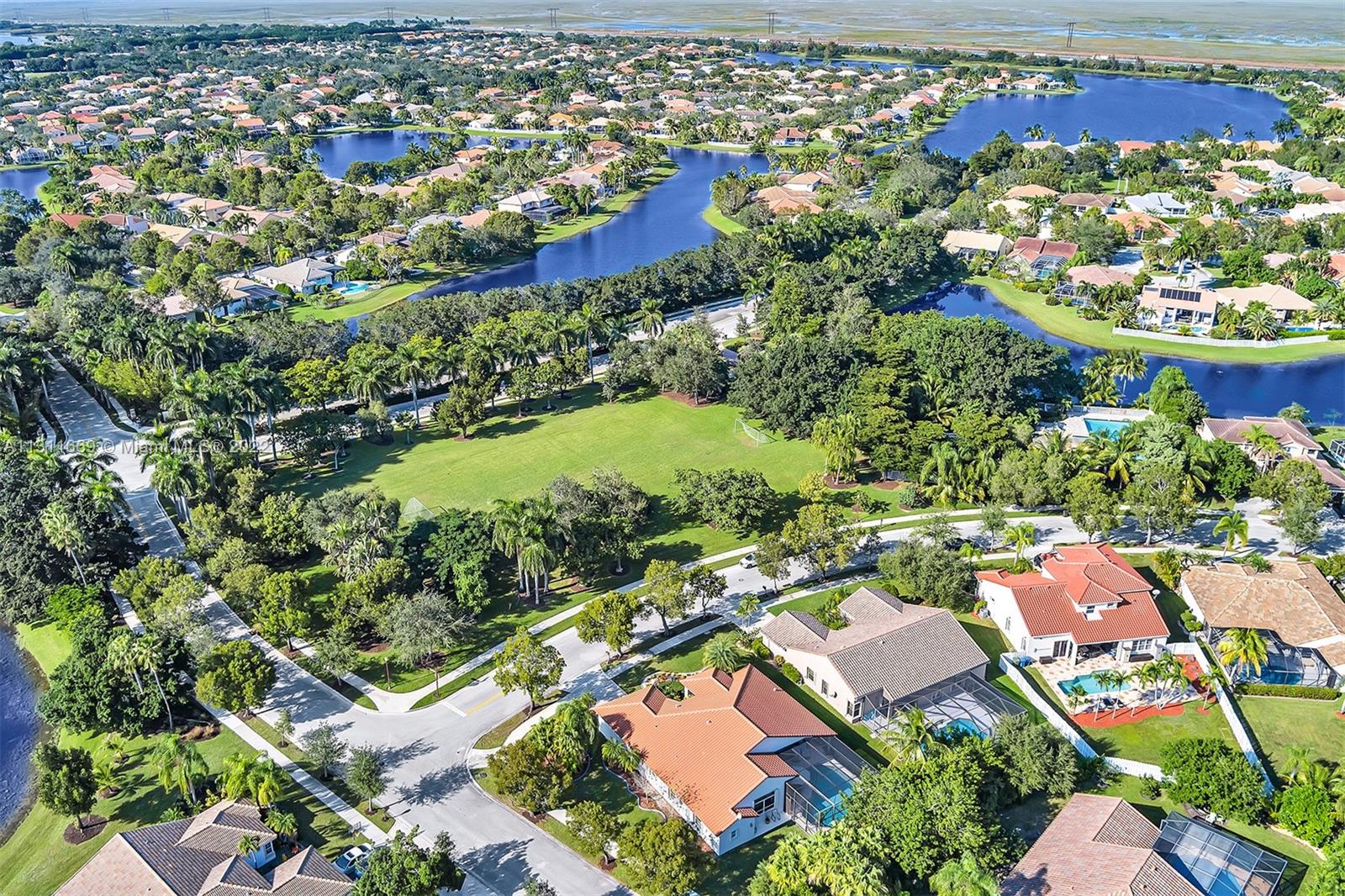 MOVE IN READY! This absolutely STUNNING 4 bed/3 bath one story home is set on perfectly manicured, lushly landscaped corner lot, COMPLETELY RENOVATED with transitional taste and a coastal flair. Enter the foyer and immediately feel the spacious living areas, volume ceilings and large sliders with transom windows. The chef's kitchen with quartzite counter tops, glass tile backsplash and wall oven/microwave overlooks the spacious family room. The master suite boasts a spa-like bathroom and 2 walk-in closets with built-ins. Other features include gorgeous 36x36 inch tile, trendy light fixtures and 3 way split bedroom plan. The screened pool with large patio is surrounded by generous yard. NEW ROOF and accordion shutters. 24 hr guard gated. Steps to community pool, playground and soccer field.
