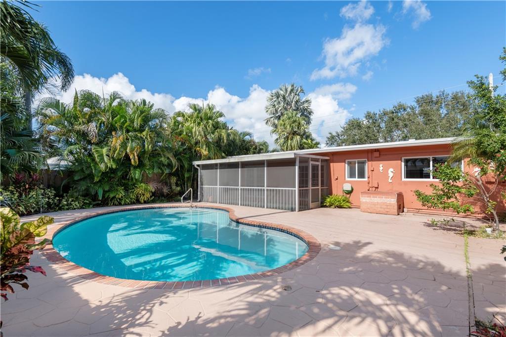 Welcome to 1900 NE 19th Street. This lovingly cared for 3-bed, 2-full bath single family home is located in the highly in demand Northridge section of Poinsettia Heights. Features include 1,412 sq. ft. of under air living space, large Main living area, Kitchen w/ granite counters, wood dovetail construction cabinets, lightly used appliances, Laundry room w/ washer & dryer (2022), tankless gas water heater and central a/c (2017). The large outdoor space includes a screened-in porch, mid-century styled pool w/ lush landscaping. Living in Northridge you will enjoy varied architectural styles, sun dappled sidewalks and location that puts you within minutes of fine dining, shopping, the beach, and vibrant downtown Fort Lauderdale. Some virtually staged photos included.