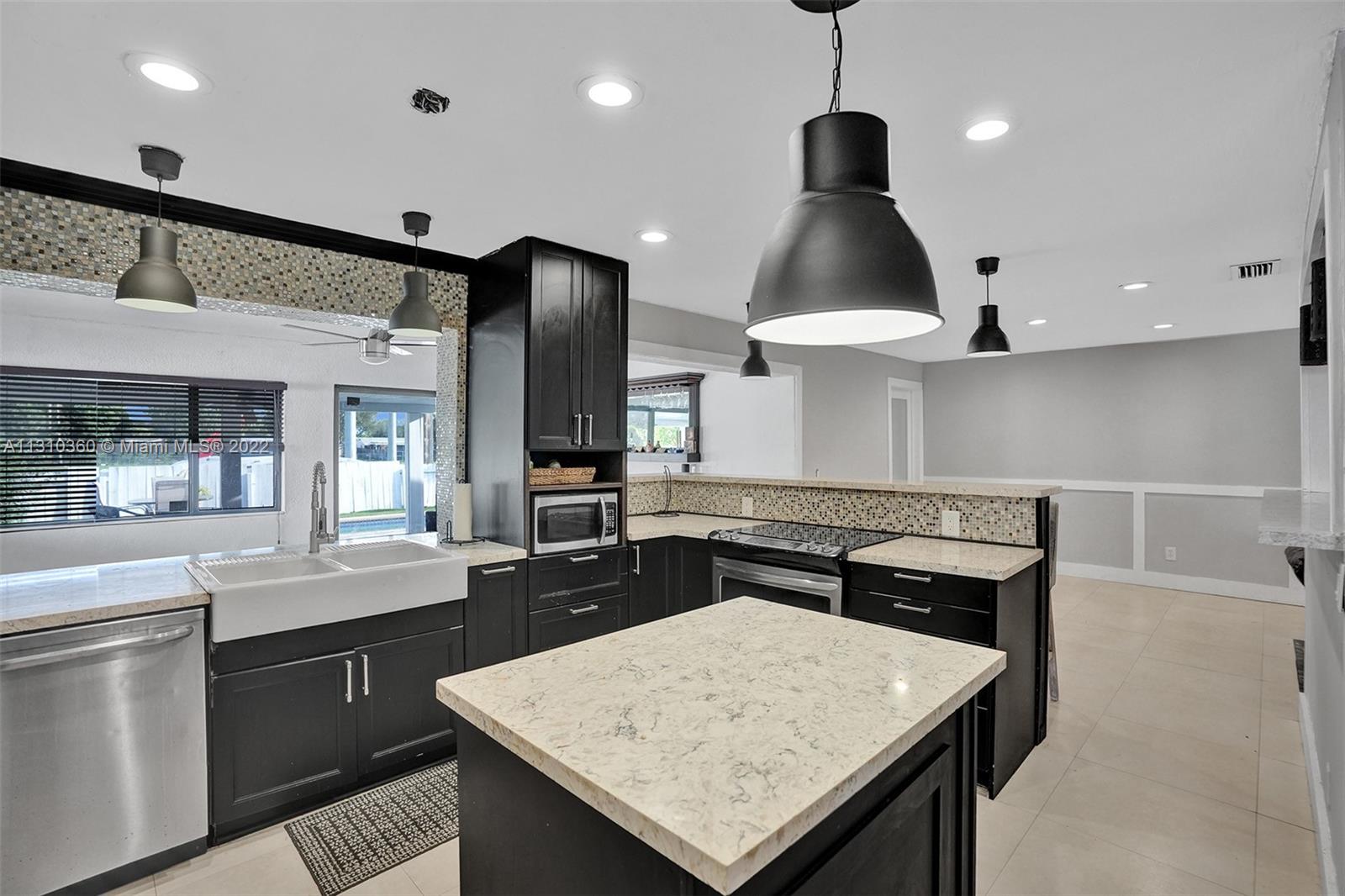 YOUR WAIT IS OVER.... Fully Renovated 4 Bed, 2 Bath ***POOL HOME*** in Highly Sought After ***RAINBOW LAKES at PEMBROKE PINES*** Featuring an Open Chefs Kitchen, Espresso Cabinetry, Quartz Countertops, Glass Tile Backsplash, Farmhouse Sink, Stainless Steel Appliances, Double-wide Commercial Refrigerator, Cooking Island and Serving Bar, Spacious Master Suite, Dual Walk-in Closets, Remodeled Spa Style Bath, Contemporary Vanity, Glass Shower Enclosure, Custom Tilework, Chair Height Toilet, Generous Guest Rooms, Neutral Tile Throughout, Scraped Ceilings ***NEW IMPACT WINDOWS & DOORS*** Expansive Covered Patio, Refreshing Pool, Fenced Grounds Backing to an Endless City Easement/Green Space, Enormous Multi-car Circular Driveway. Residents Enjoy Community Park, Playground & Racquetball Courts.