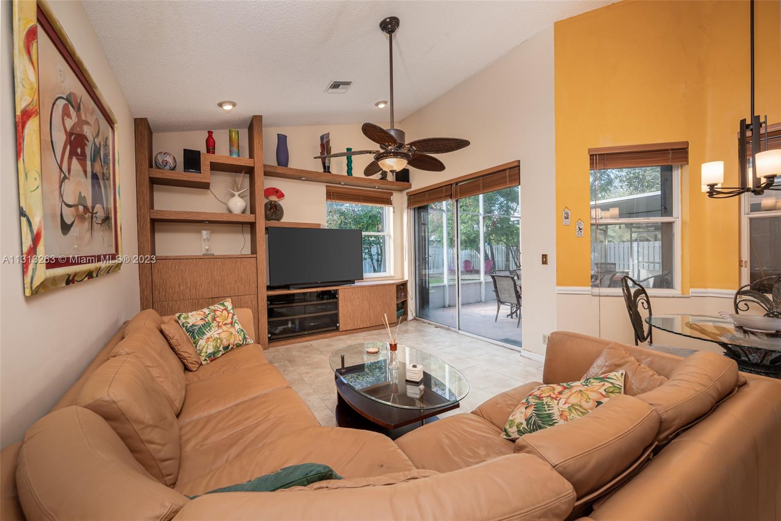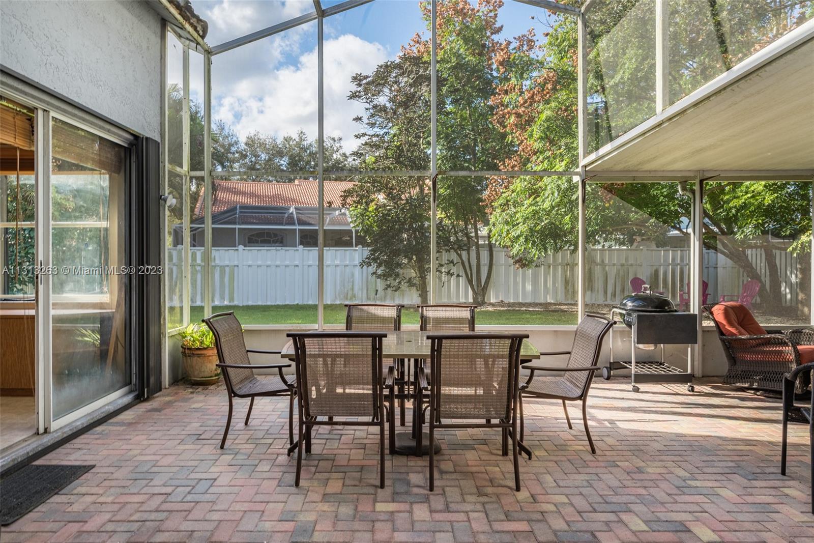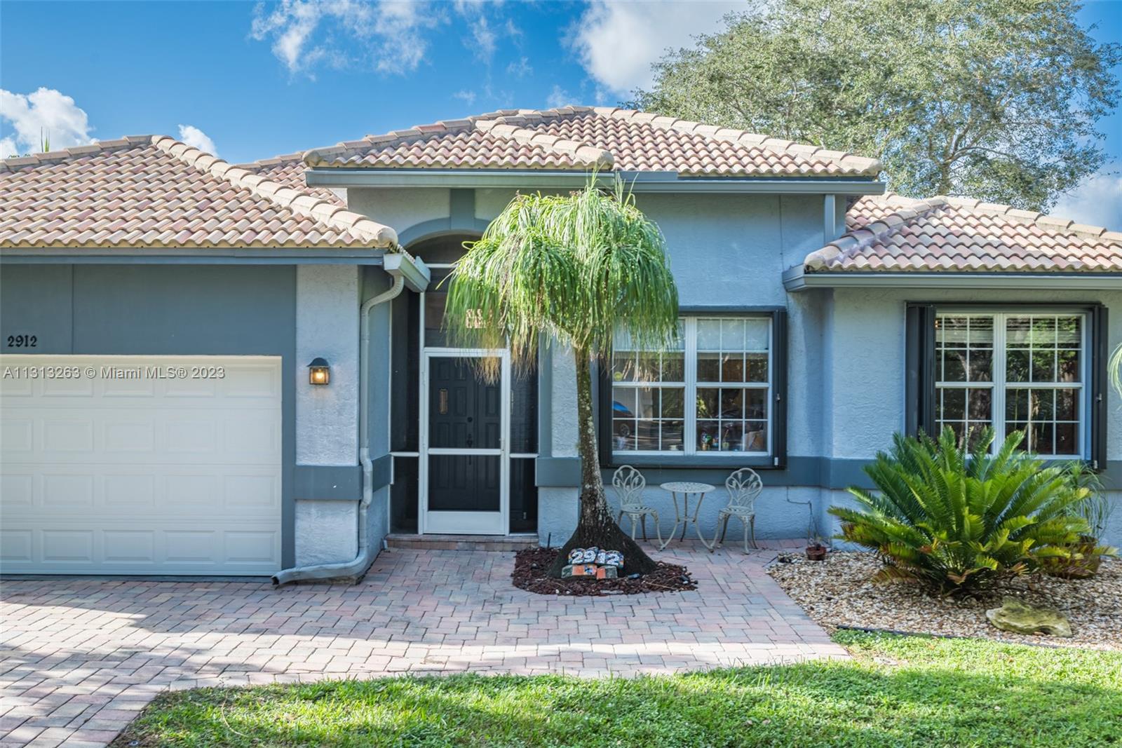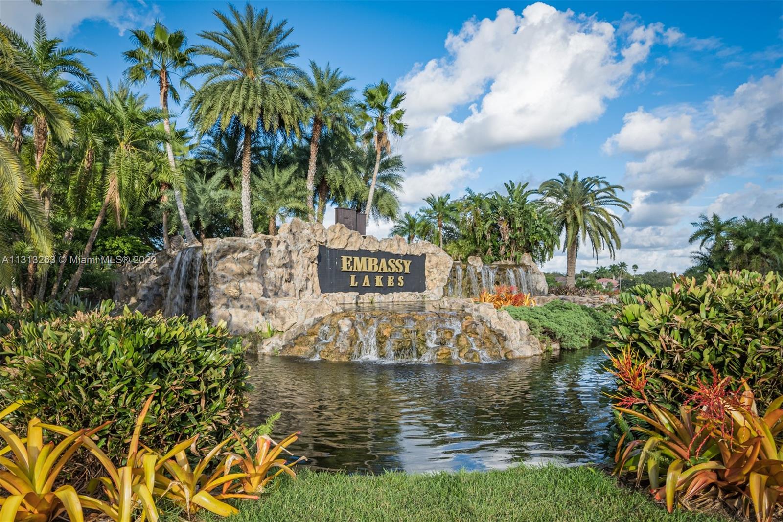 Oversized lot on quiet cul-de-sac! Walk to temple and A+++ schools! Located in the sought after 24 hour guard gated community of Embassy Lakes adjacent to a lovely community park. With-in walking distance of the main club house with huge community pool, exercise room & tennis courts. Spacious foyer entry. Classic marble-look tile in the living areas, laminate in the bedrooms. High volume ceilings throughout. Large master has dual sinks and separate Roman tub/shower, walk-in closets. Kitchen has a loads of wooden cabinet storage, a pantry & a huge snack counter. Inside laundry. Patio is extended. Enormous fenced back yard. Roof is 14 years old. Newer A/C. Accordions. Active community with gorgeous tree canopies and sidewalks throughout.
