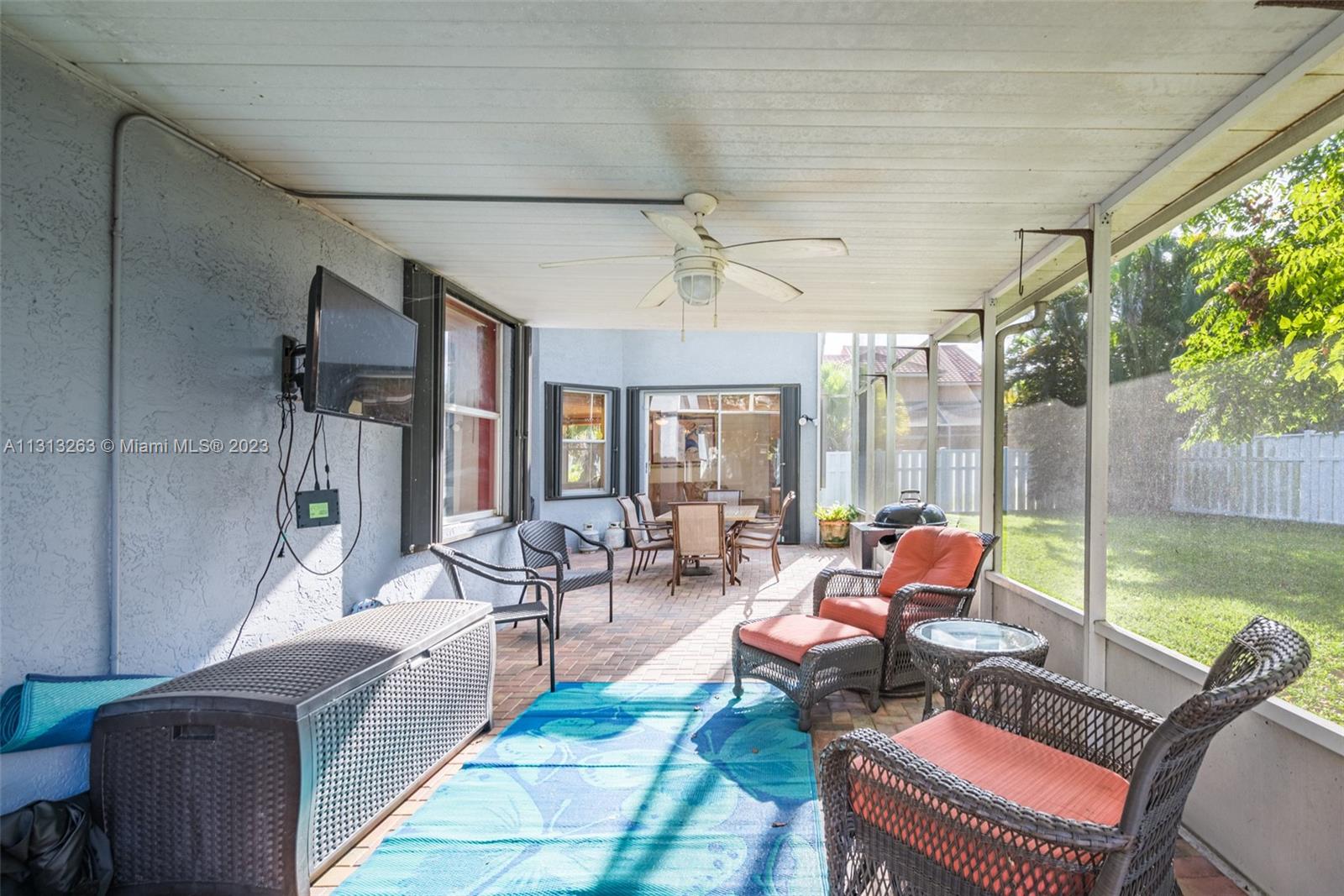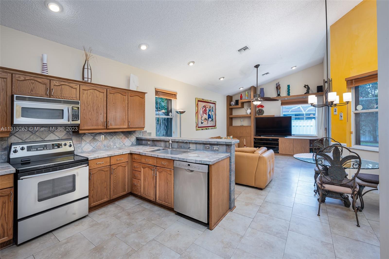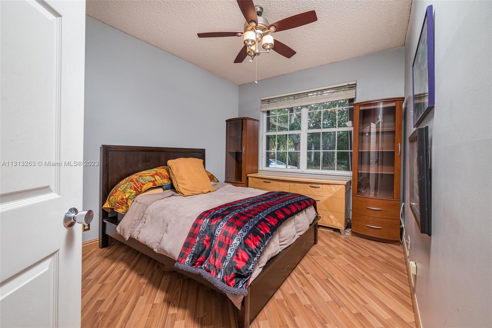 Oversized lot on quiet cul-de-sac! Walk to temple and A+++ schools! Located in the sought after 24 hour guard gated community of Embassy Lakes adjacent to a lovely community park. With-in walking distance of the main club house with huge community pool, exercise room & tennis courts. Spacious foyer entry. Classic marble-look tile in the living areas, laminate in the bedrooms. High volume ceilings throughout. Large master has dual sinks and separate Roman tub/shower, walk-in closets. Kitchen has a loads of wooden cabinet storage, a pantry & a huge snack counter. Inside laundry. Patio is extended. Enormous fenced back yard. Roof is 14 years old. Newer A/C. Accordions. Active community with gorgeous tree canopies and sidewalks throughout.