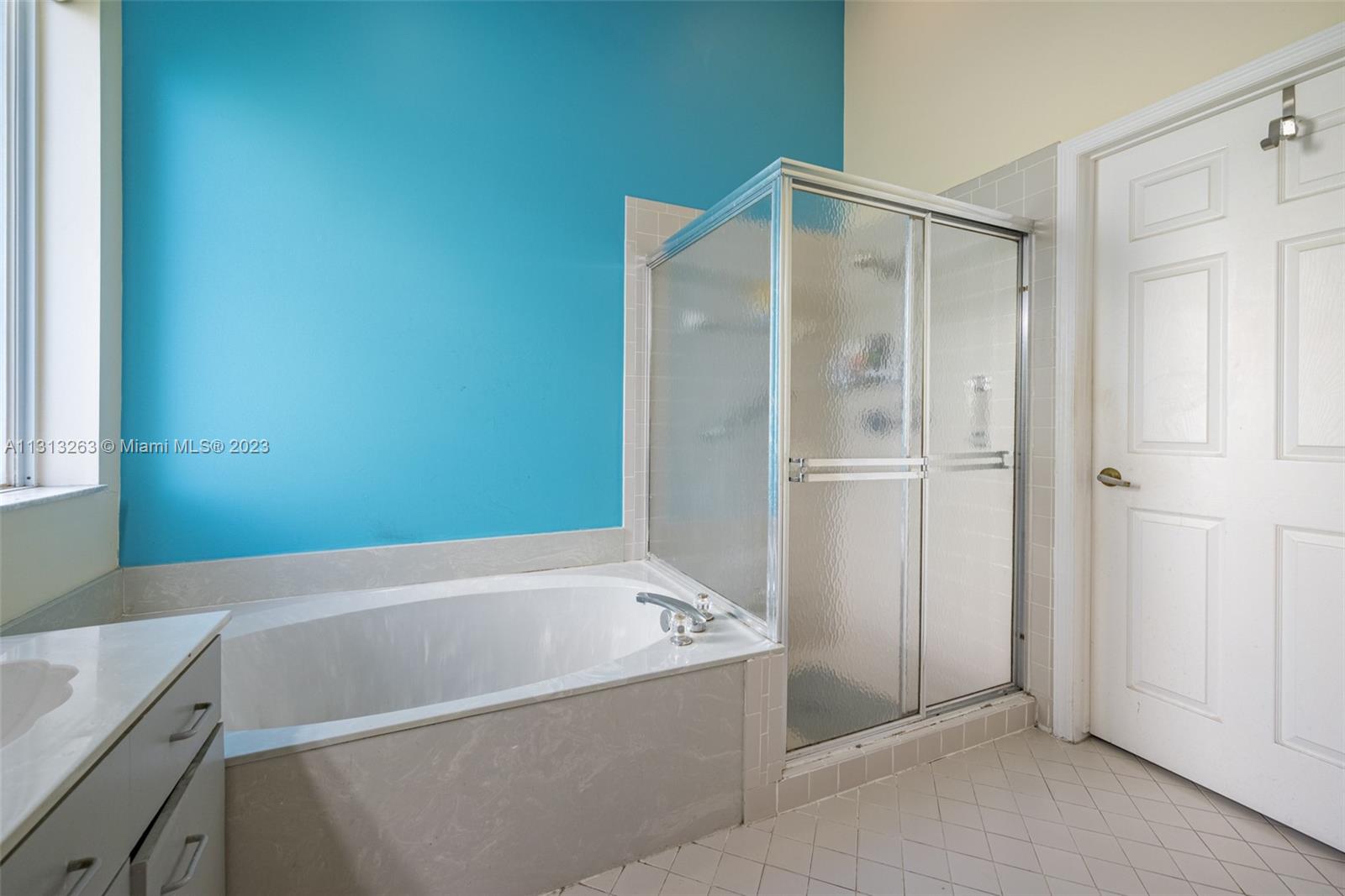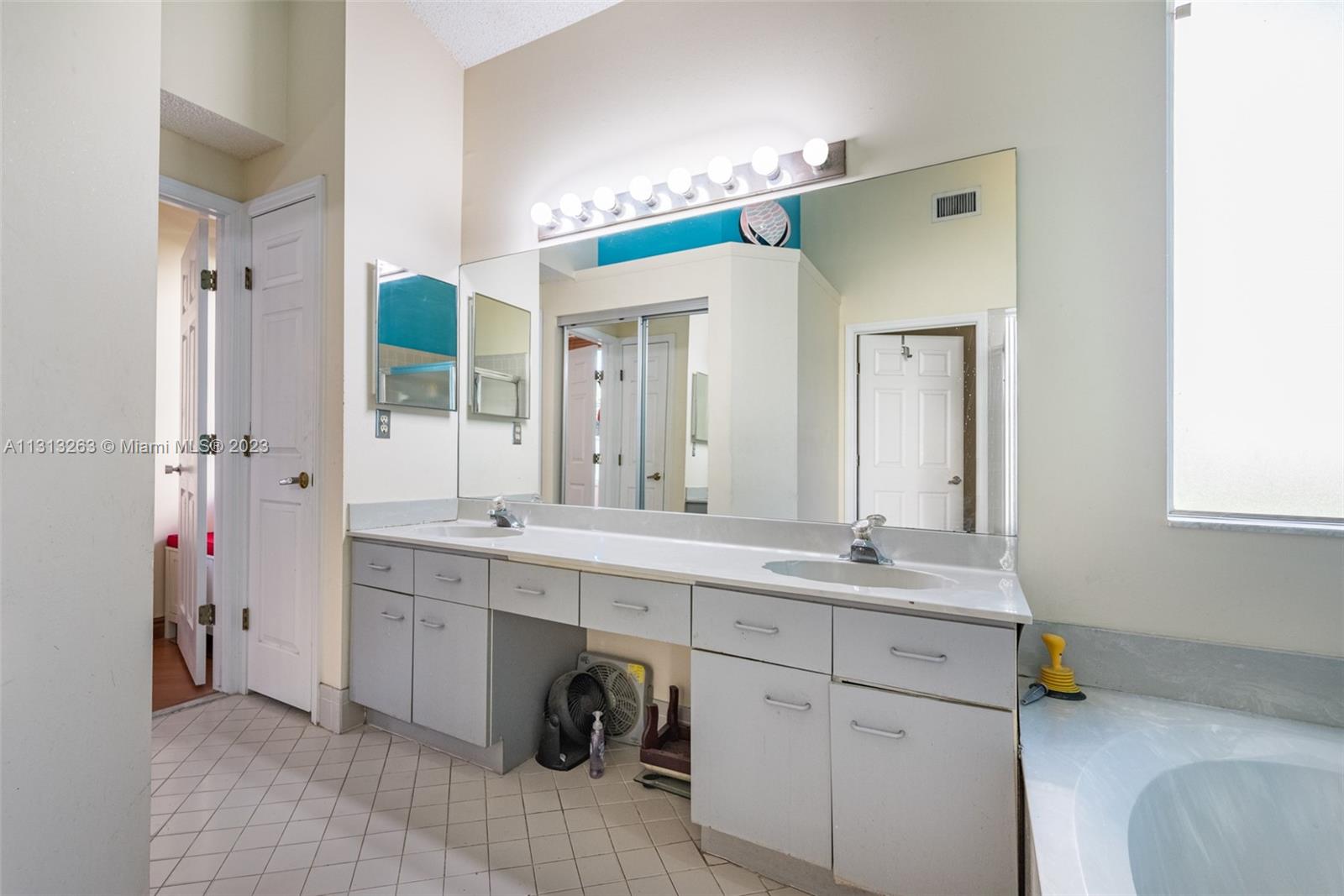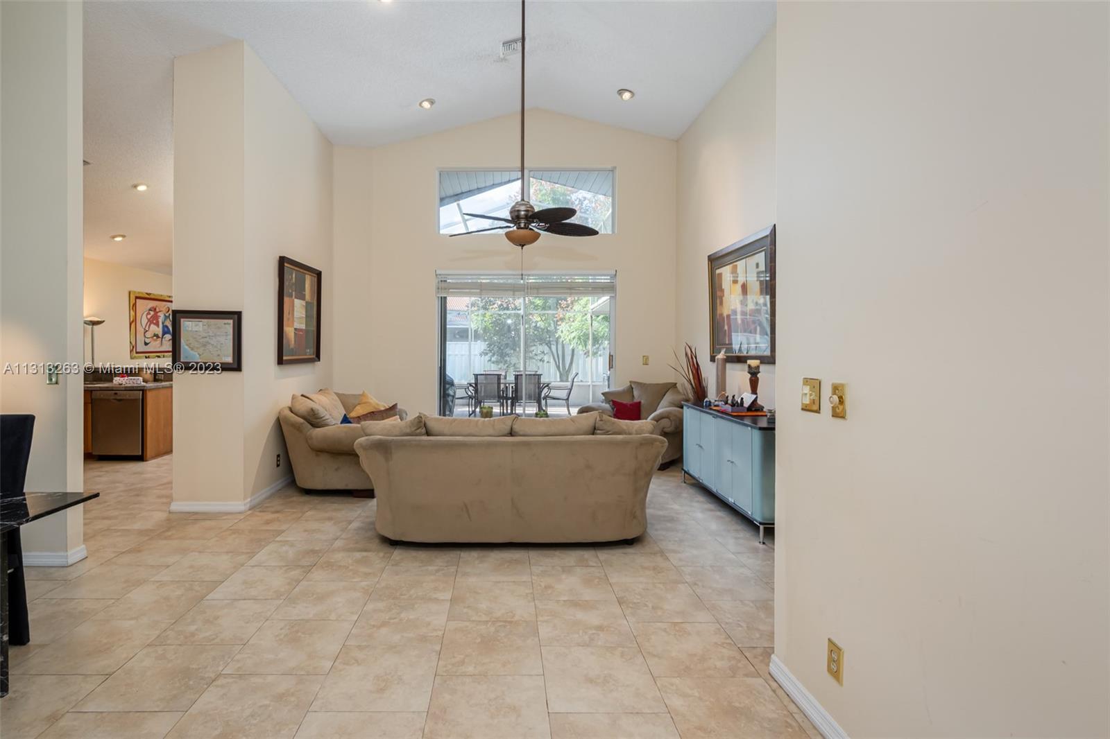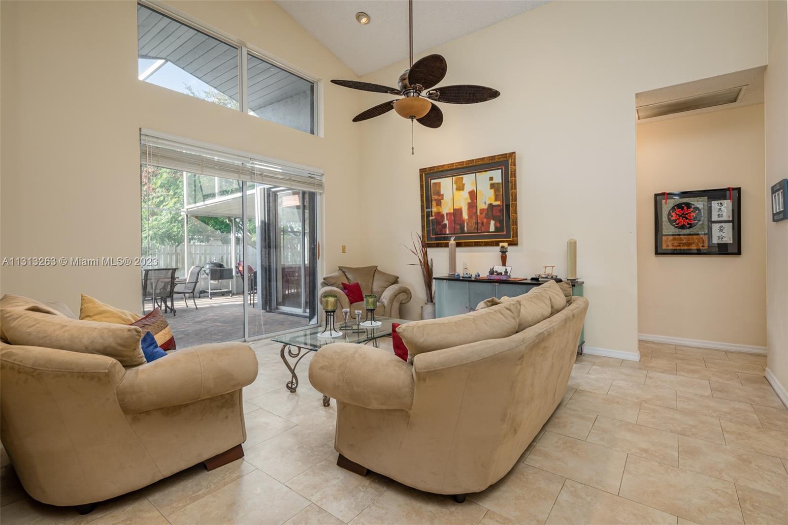 Oversized lot on quiet cul-de-sac! Walk to temple and A+++ schools! Located in the sought after 24 hour guard gated community of Embassy Lakes adjacent to a lovely community park. With-in walking distance of the main club house with huge community pool, exercise room & tennis courts. Spacious foyer entry. Classic marble-look tile in the living areas, laminate in the bedrooms. High volume ceilings throughout. Large master has dual sinks and separate Roman tub/shower, walk-in closets. Kitchen has a loads of wooden cabinet storage, a pantry & a huge snack counter. Inside laundry. Patio is extended. Enormous fenced back yard. Roof is 14 years old. Newer A/C. Accordions. Active community with gorgeous tree canopies and sidewalks throughout.