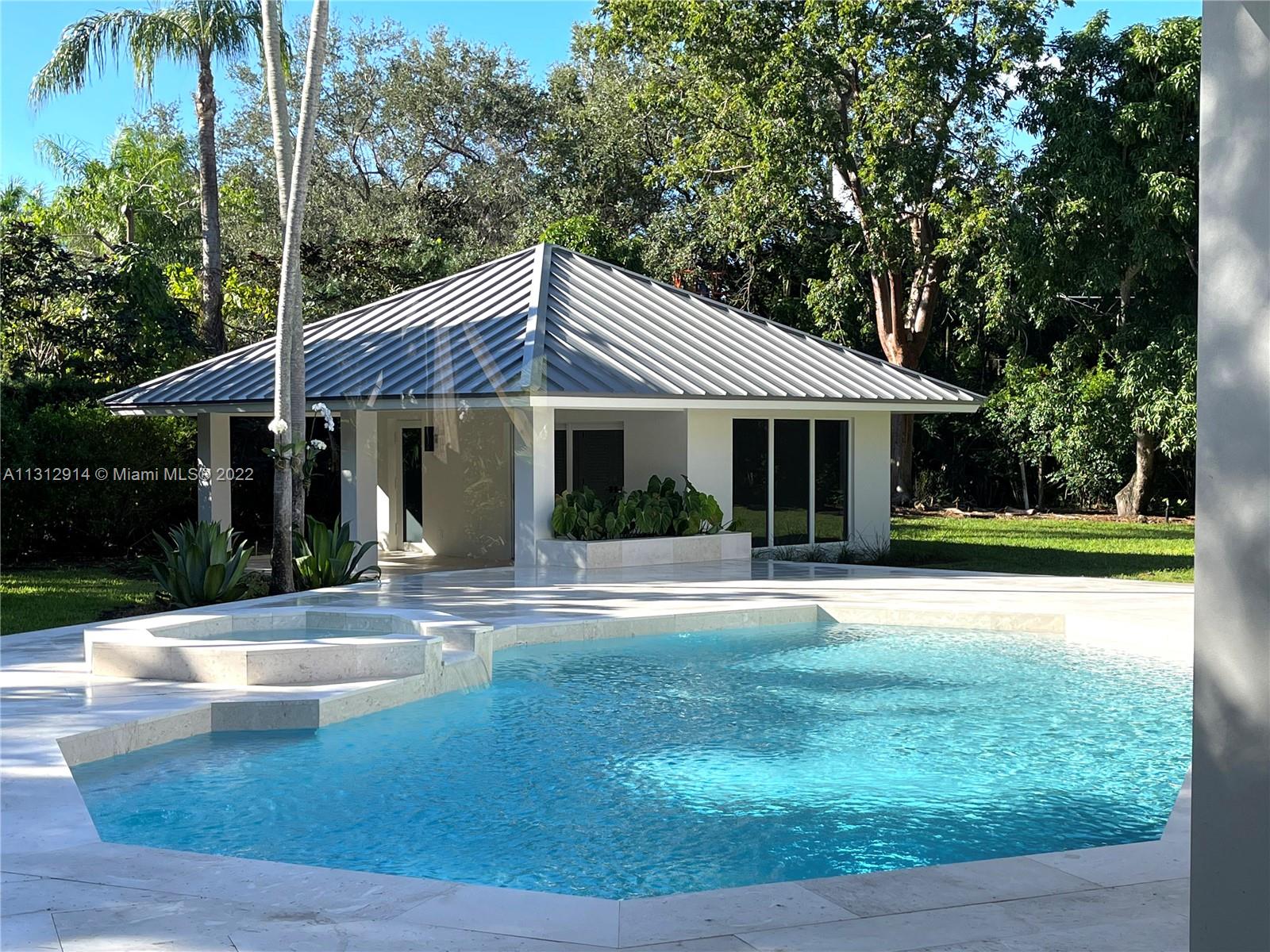This pristine estate offers the ultimate privacy as the acre lot sits at the end of a gated 200' flag entrance. After extensive renovations, this home offers all of the latest in modern amenities and smart home capabilities. The main house features 6 bed, 6.5 bath along with a detached guest house. Discover volume ceilings as you enter the formal living with ethanol fireplace, formal dining room that leads to the open kitchen and family room spaces. The house features new metal roof, PGT imp windows, eng. white oak floors, gourmet kitchen with Viking appliances and Soho White marble counters, laundry room, 2 car garage, new generator with propane 1,000 gallon gas tank, outdoor kitchen with shell stone pool patio, basketball court, landscape lighting, smart home equip.and more
