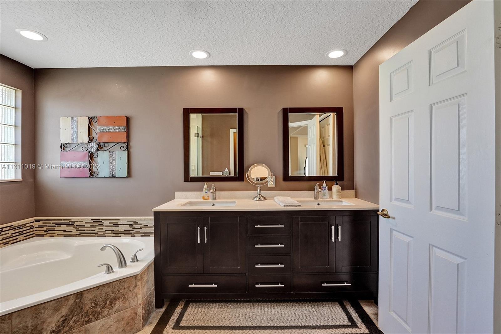 Imagine sitting in your private pool area listening to the birds sing while you drink your morning coffee. You're about to have the home that finally checks off all your boxes. Oversized lot, 2 car garage, pool, office or room for the in-laws AWAY FROM THE MASTER BEDROOM, huge kitchen that's convenient for hosting in the dining area or pool area or entertainment area. HUGE master bedroom with corner roman tub, separate shower, his and her walk-in closets. 3 of the 4 bedrooms are upstairs, perfect for the family that loves to entertain. Plenty of extra yard for a kids play area or for your pets.