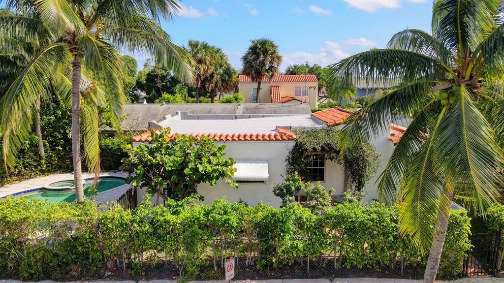 1925 Spanish Mission, hollow tile home built by Hansell Hall, Flamingo Park's premiere builder. 3BR/1BA with SUNROOM & detached 1 car garage. Picture frame hardwood floors in the living/dining/bedrooms & tile in the kitchen/sunroom,/bathroom & laundry room. Newer kitchen cabinetry w/ seeded glass doors & tile counter tops. Outside kitchen is an elevated deck and pergola for private outdoor dining. This home has a wood burning fireplace, many period light fixtures & architectural details throughout. In the backyard there is a large pool and built in spa w/ fenced yard & outside shower. New roof & central air-conditioning in 2022. New paint inside & outside in 2022. The detached hollow tile garage, measures 18x10 & is perfect for future expansion & possibilities. COME SEE