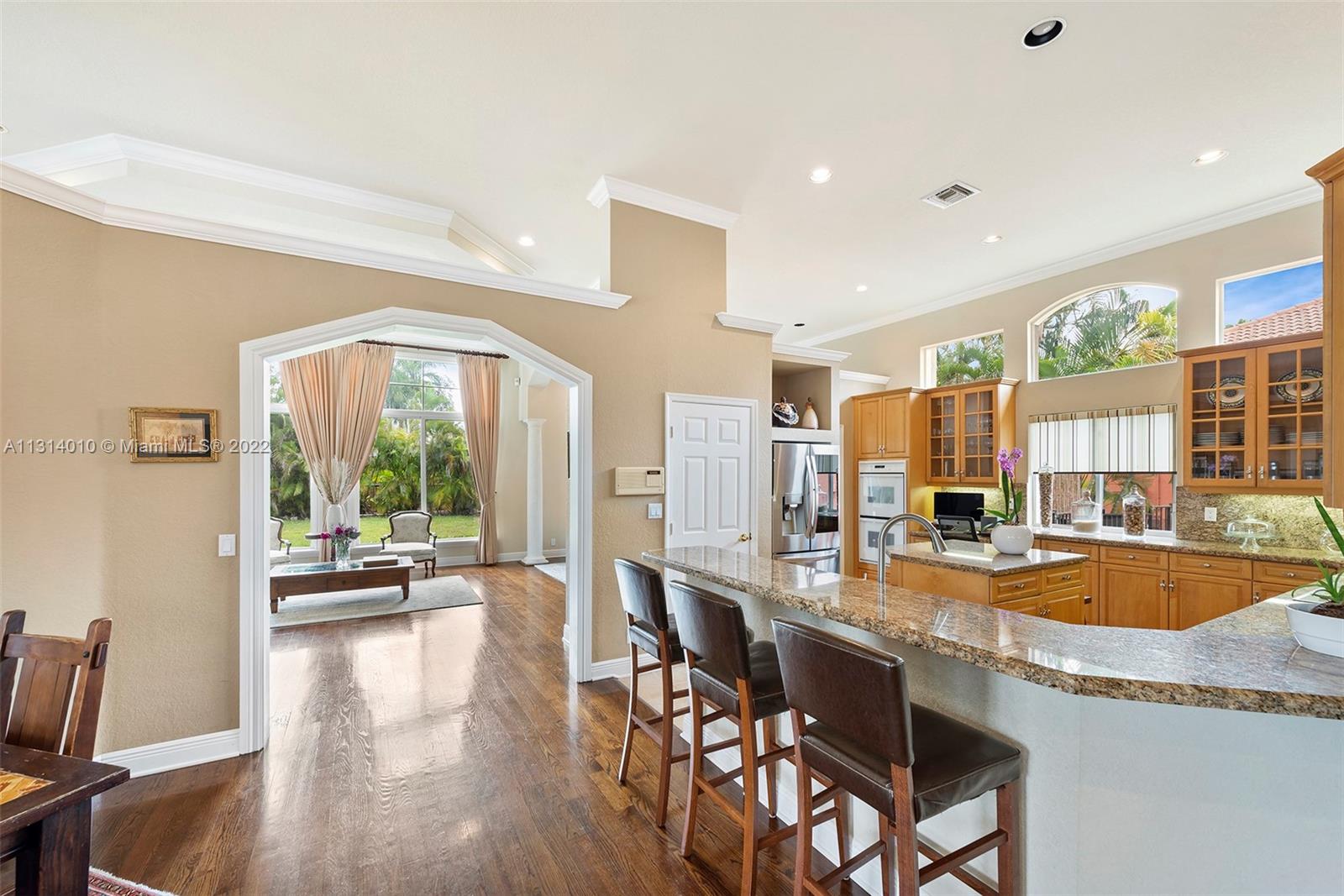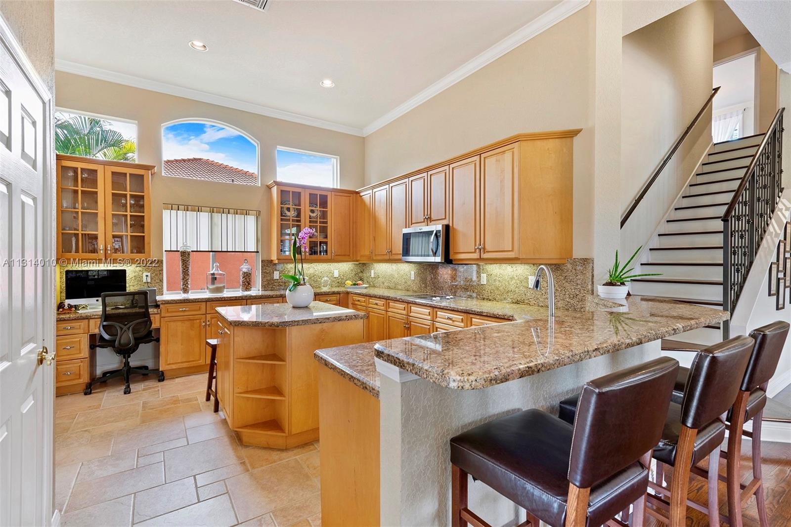 New Year, New Home! Providing a feeling of serenity and privacy, Casa Mia is a breathtaking, courtyard home nestled on a nearly half-acre premier lot in the beautiful resort-style community of Sunset Lakes. The courtyard entrance impresses every time! The main home has 6 bedrooms & 5 full baths. The guest house has 1 bedroom & 1 full bath. Walk out through the french doors from the family room, master suite or guest house into the courtyard which has an open and covered patio area and pool. High ceilings and natural light cascade throughout the home creating an open and inviting feeling. And because of the way this home is situated on the lot, you will enjoy endless hours of family and entertaining time in privacy and comfort.