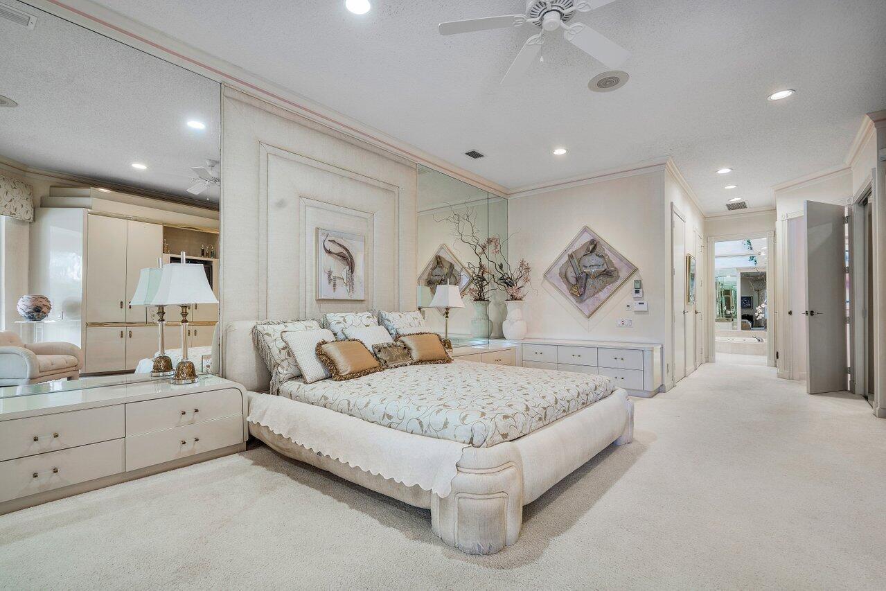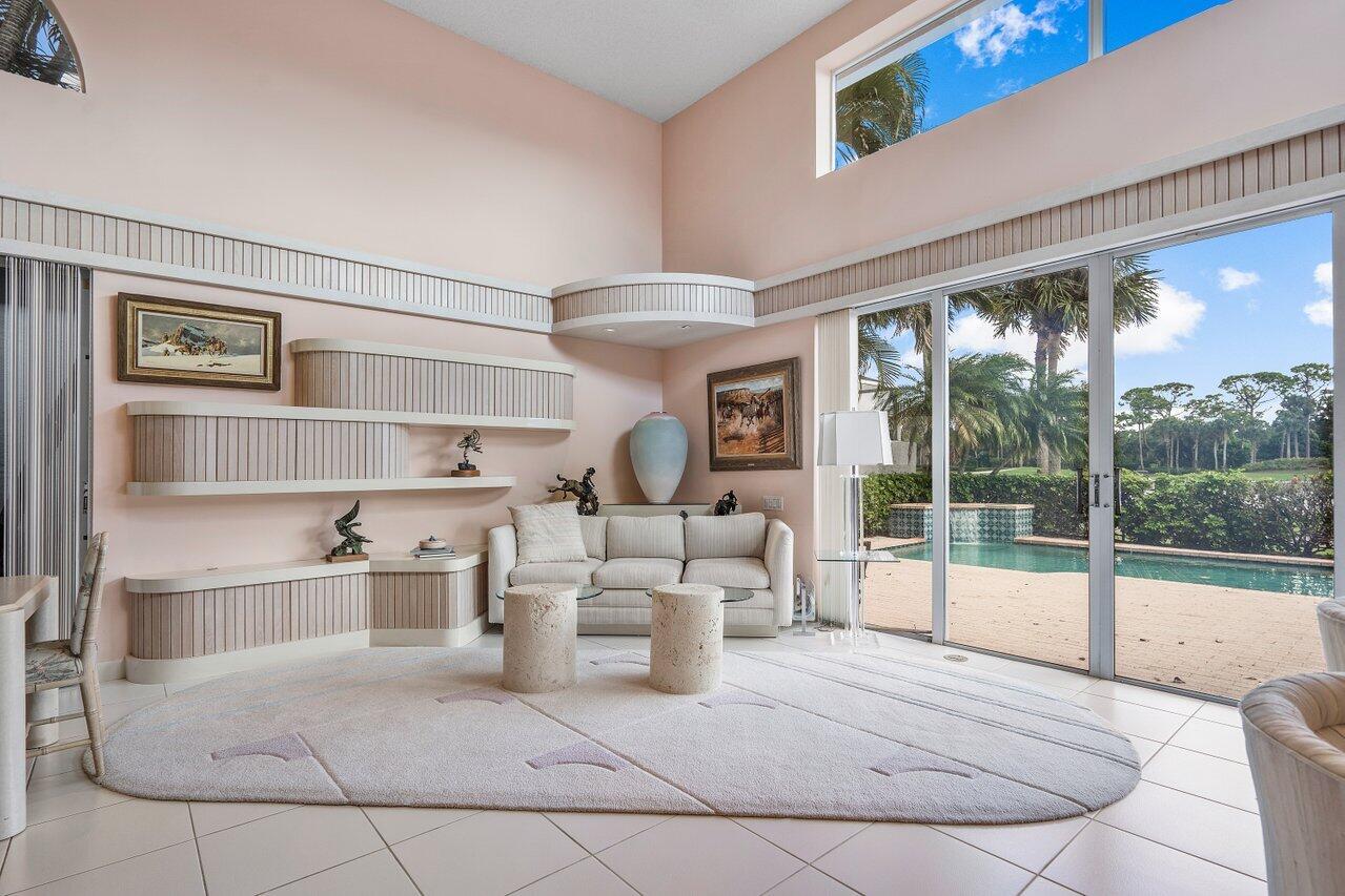 An opportunity to customize your own estate awaits! Located in one of the premier sections in The Polo Club, this Waterford home offers beautiful vistas of both lake and long golf views of the 9th and 10th holes on the Equestrian golf course. This one-story home has an expansive layout, beautiful volume ceilings, and a desirable split floor plan. The grand foyer catches your attention with the double-height statement ceiling. A large living room offers access to the screened-in patio where you can enjoy the private pool and views. Flowing seamlessly from the living room into the family room, a convenient wet bar is great for entertaining. The kitchen offers ample storage, a built-in work desk, and an eat-in area. The formal dining room is the perfect place to fit large gatherings but can