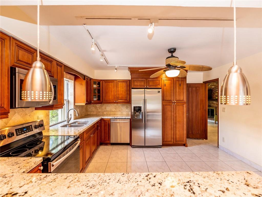 5beds 5.5bath w/ in-laws quarters! Circle-drive allows several vehicles & gated privacy wall provides secluded courtyard with pool &wrap around patio. Updated kitchen w/ granite counter &large eat-in dining. Vaulted ceilings w/brick fireplace &drop-down living room holds the entire family! Shutter-protected,over-sized windows give natural light, golf course & lake views. Coral fireplace creates cozy 1st floor master w/ ensuite &walk-in closet. Upstairs has 3 rooms/2full baths. Gas generator. Lake fed sprinklers.3 ACs 2016. Roof 2012. Studio apartment over detached 2-car garage w/renovated kitchen& bath! Quiet neighborhood mins from highways, beaches, colleges, hospital &*Walk at Plantation*w/ fabulous dining & shopping