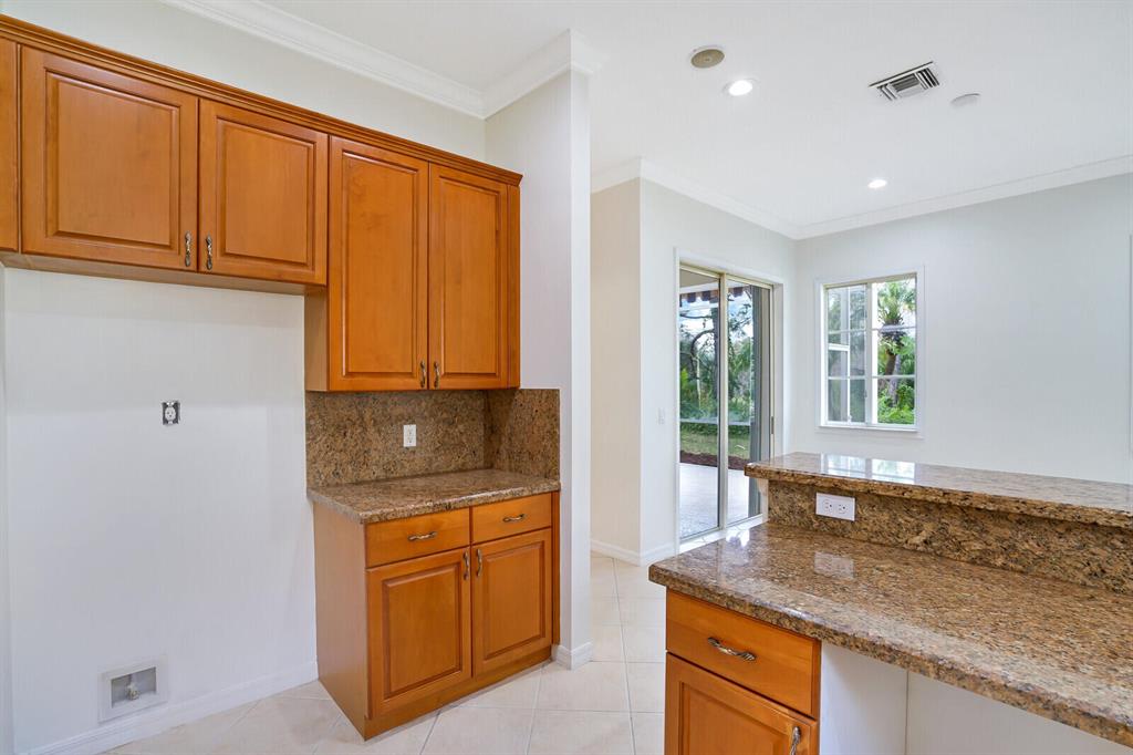 Gorgeous one-level home on a quiet street with private Preserve views in the gated Andros Isle community. Split floor plan includes 3 spacious bedrooms with custom closets, 2 full baths, & a 2 car garage. Enjoy the formal living area plus a family room off the kitchen and a separate dining area. Kitchen with tall cherry wood cabinets, granite counters, and ready for your choice of appliances. Laundry room with built in shelving leads to the garage which has a freshly painted floor and central vacuum. The master has wood laminate floors, two closets and an oversized bathroom with dual sinks, Roman tub and a separate shower. Please see additional remarks..