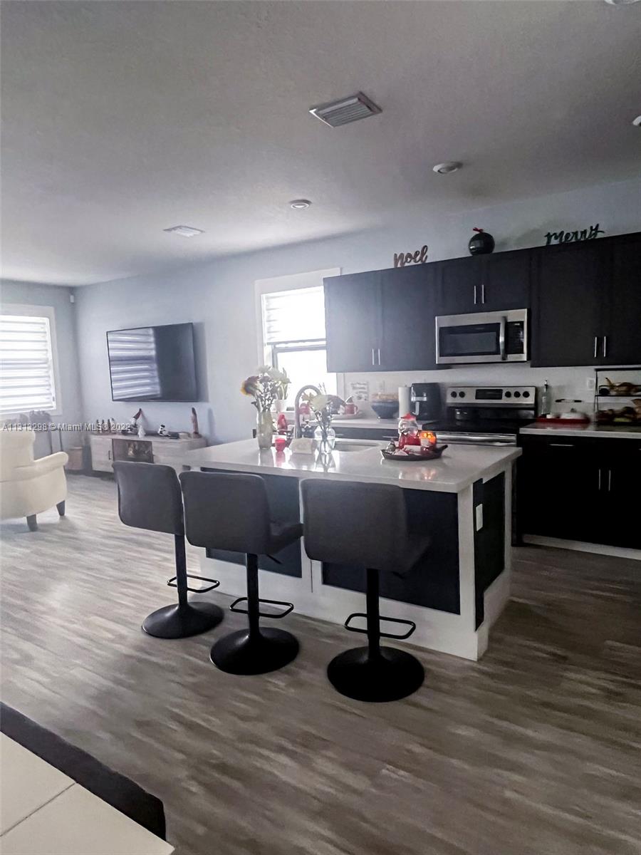 Beautiful! single-family " Smart Home" featuring 4 Bdr, 3 full baths with one of the bedrooms on the ground floor, open layout, stainless steel appliances, quartz countertops, large, fenced backyard, garage with 240v outlet for electric cars, keyless entry and more. The property is in the sought after community of AQUABELLA, Private gated community with 2 clubhouses, pools, fitness centers, water park for kids, plenty of parking spaces for visitors, close to major highways and much more. Must see