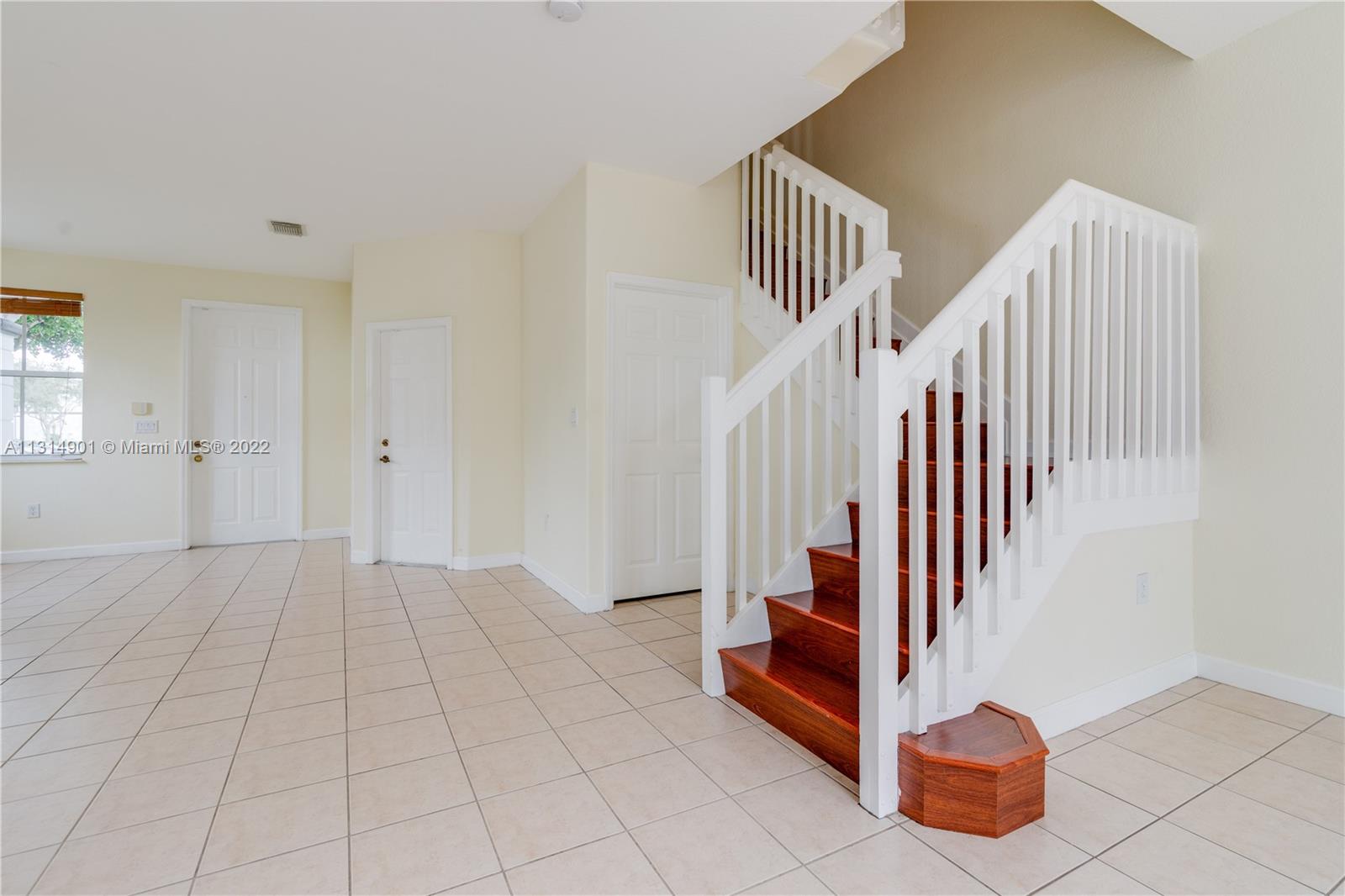 Windward at Island at Doral Gated Community, Beautiful CORNER townhouse. Featuring 3 bedrooms upstairs and 2.5 bathrooms. Laminate floor upstairs and ceramic floor downstairs. Spacious bedrooms. 1 car garage. Spacious fully fenced patio that need to be repair. Great for a family. Walking distance to "A" schools, supermarkets, shopping centers, restaurants. Ranked-A charters and public school close by, as well as Publix, CVS, TJ-max, Gate community with regular patrol. Private community pool, kids park, access to island at Doral club house, very close access to Florida's turnpike and walking distance from Doral Legacy Park.