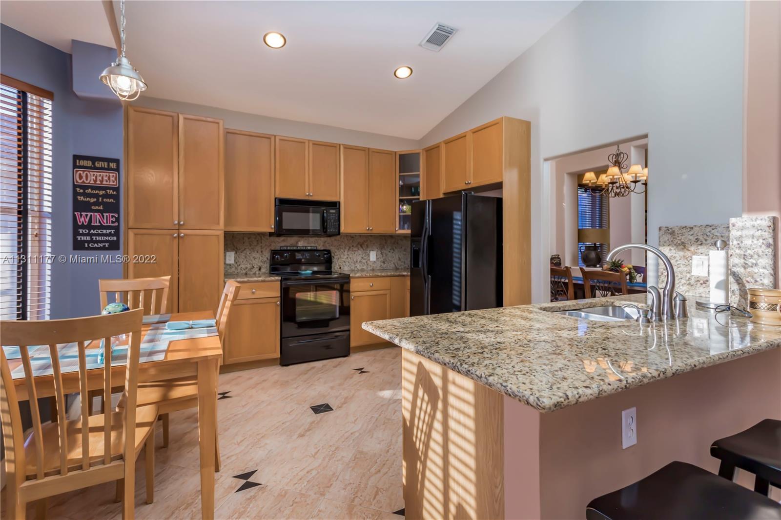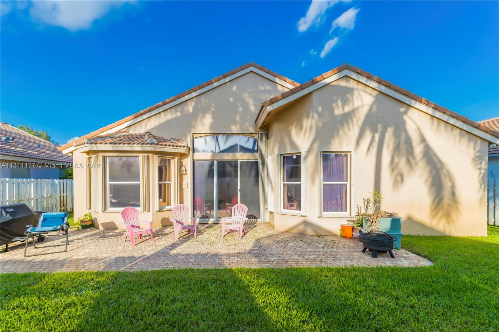 GORGEOUS THREE BEDROOM, TWO BATHROOM, ONE STORY HOME IN MONACO AT SUNSET LAKES. THIS HOME FEATURES TILE FLOORING & VOLUME CEILINGS THROUGHOUT. UPDATED KITCHEN WITH GRANITE COUNTERTOPS, WOOD CABINETRY & CUSTOM BUILT-IN BENCH AT BREAKFAST AREA. THE MASTER SUITE FEATURES A SITTING AREA & CUSTOM CALIFORNIA CLOSET. FULLY FENCED-IN BACKYARD WITH A PAVERED PATIO AND GRASSY YARD, WITH PLENTY OF ROOM TO BUILD A POOL. THIS HOME IS PROTECTED BY ACCORDION SHUTTERS.