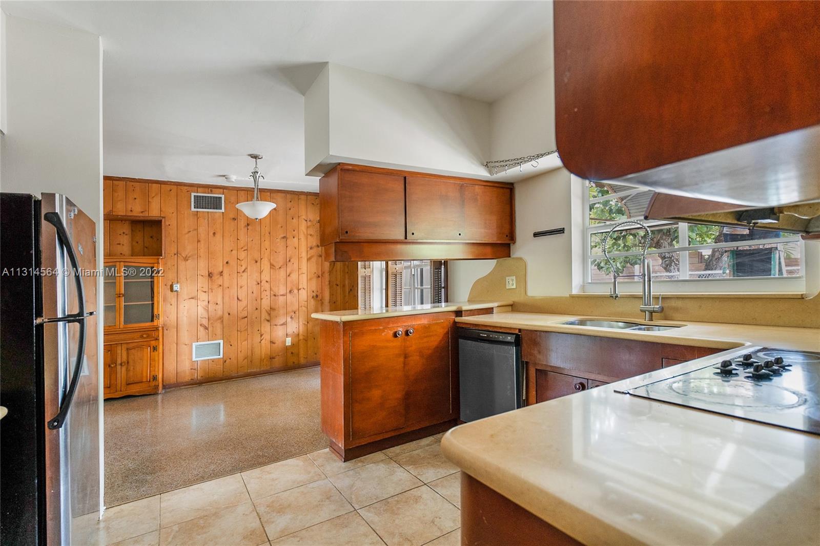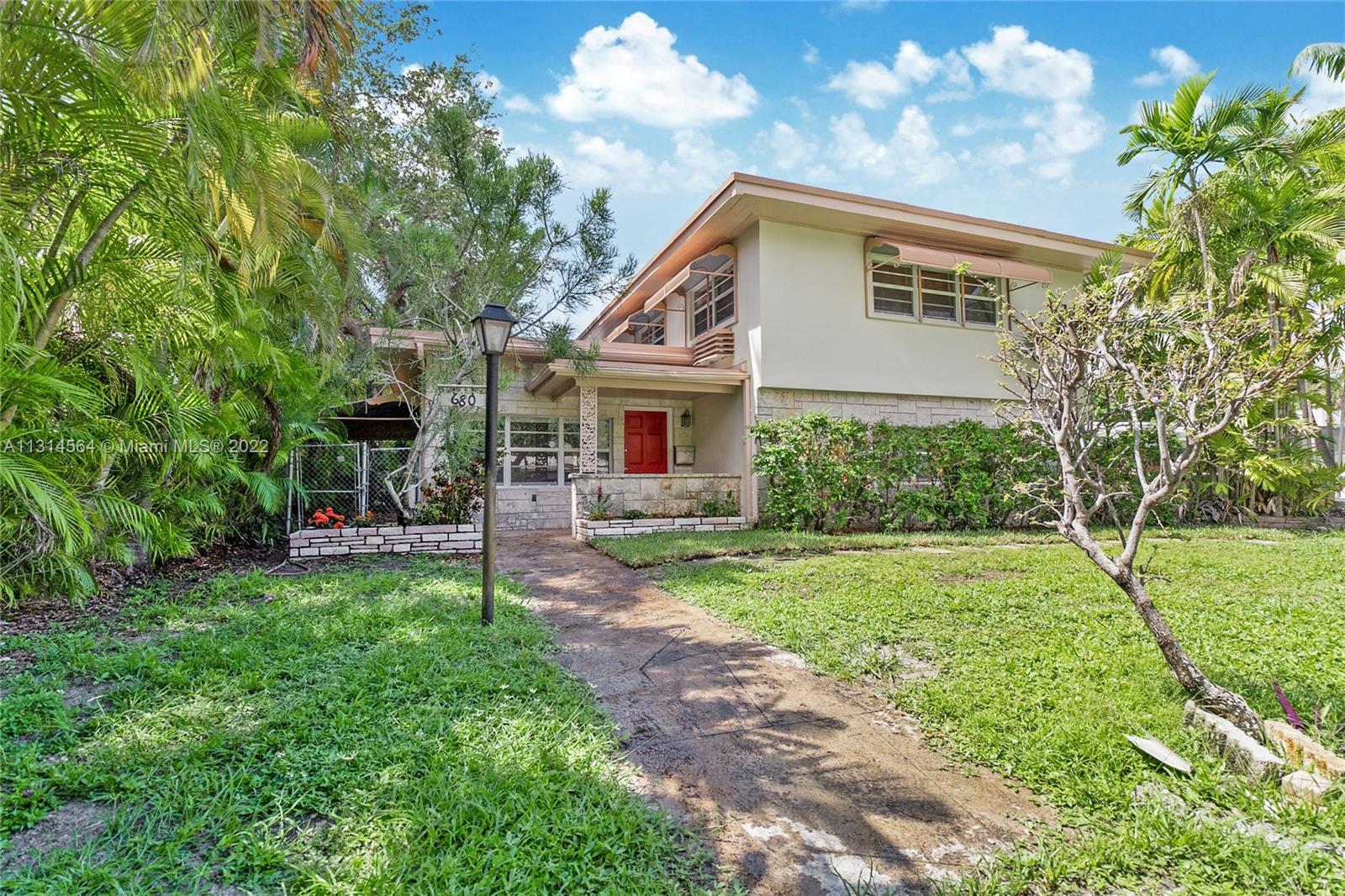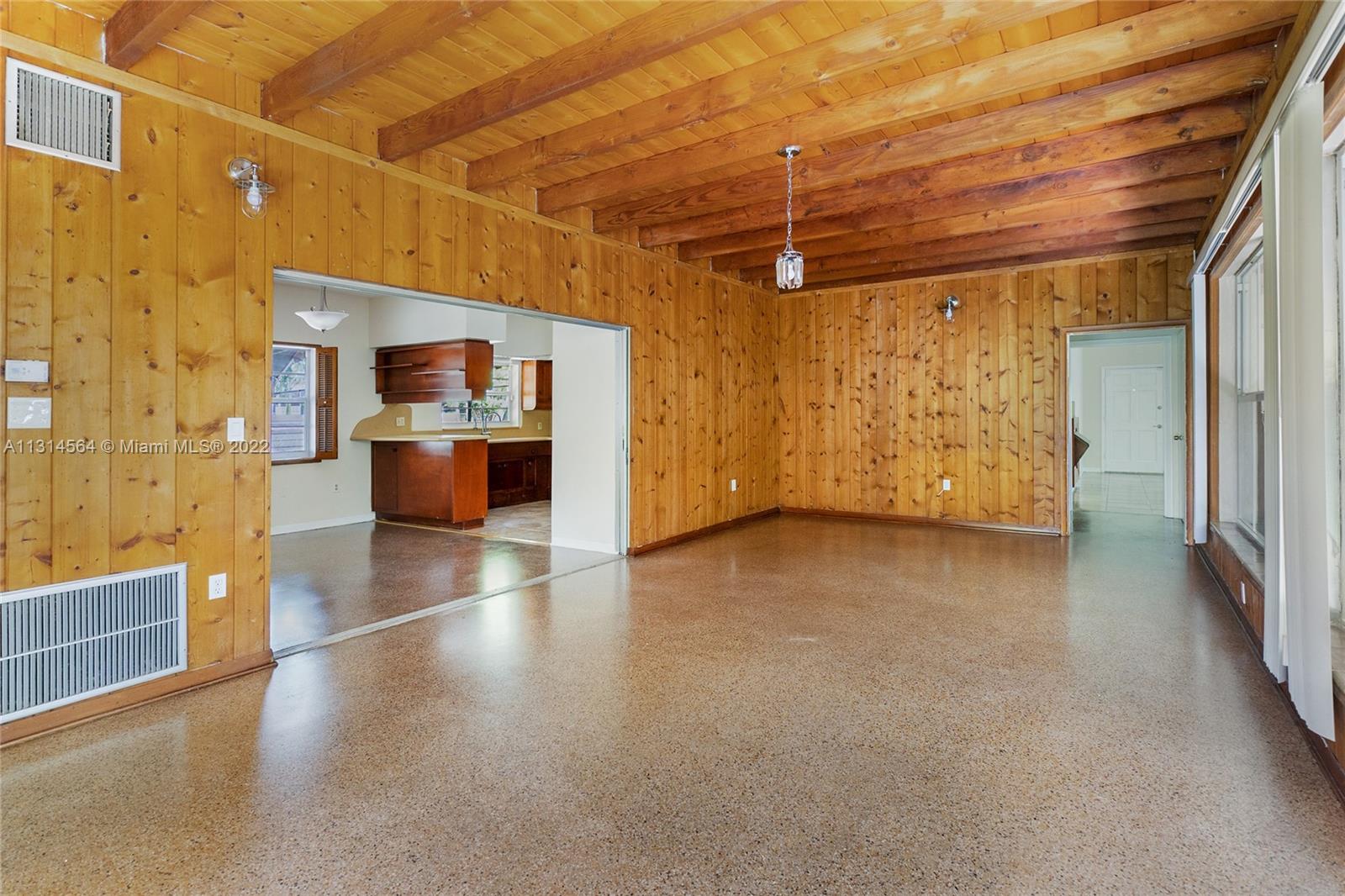 Morningside location! Really exceptional property adjacent to the park: Reshape an exquisite two-story Mid Century Modern 3003 sqft. 3 bed 2 1/2 bath, split floorplan, with master bed and bath downstairs. This 1956 house was custom built, ensuring diffused light throughout the expansive large rooms, with original terrazzo downstairs & wood floors upstairs. 14ft wood beamed ceilings. Formal living room has Cuban marble floors and framed copper domed fireplace. Large 2 car garage This is a MIMO original with plenty of room for a pool and your creative imagination! please use Show Assist