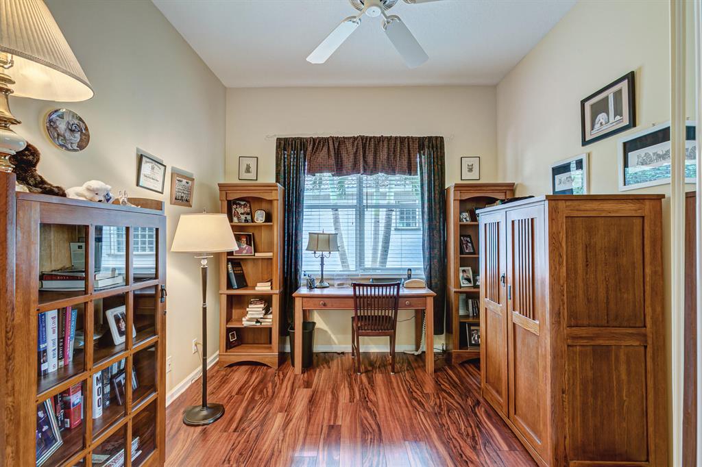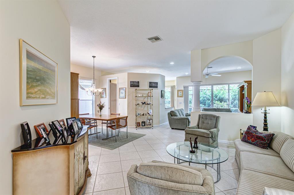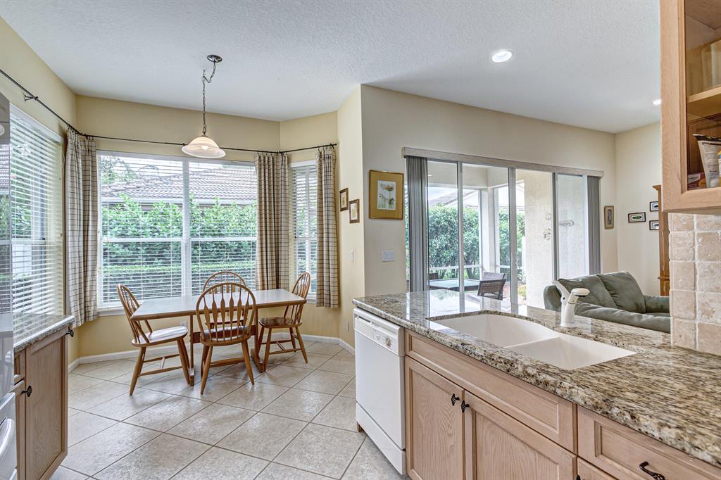 Carefully Maintained and Immaculate 3/2/2 Snowbird residence in ultra convenient Andros Isle. Premium Tile & Laminate Floors, no carpet. Updated K with granite counters and Newer Appliances, Both Formal DR and Casual Din. 36''pecan wood cabinets.. Large MBR with sitting area and two walk in closets. Roman Tub in MBTH and large shower. Split BRs. Covered/screened patio, and enclosed backyard with superior privacy values. HOA includes landscaping (grass cutting, tree and shrubbery trimming), Irrigation Maint.,Basic CATV, WiFi and Broadband, 24/7 staffed gate, patrol, home security system, award winning clubhouse w Huge Heated Pool, Spa, Sauna, Fitness Center, Lighted Tennis, Pickleball, Bocce. Private Road to Publix Shopping Center. Easy access to Tpk, Airport, Downtown WPB and Wellingt