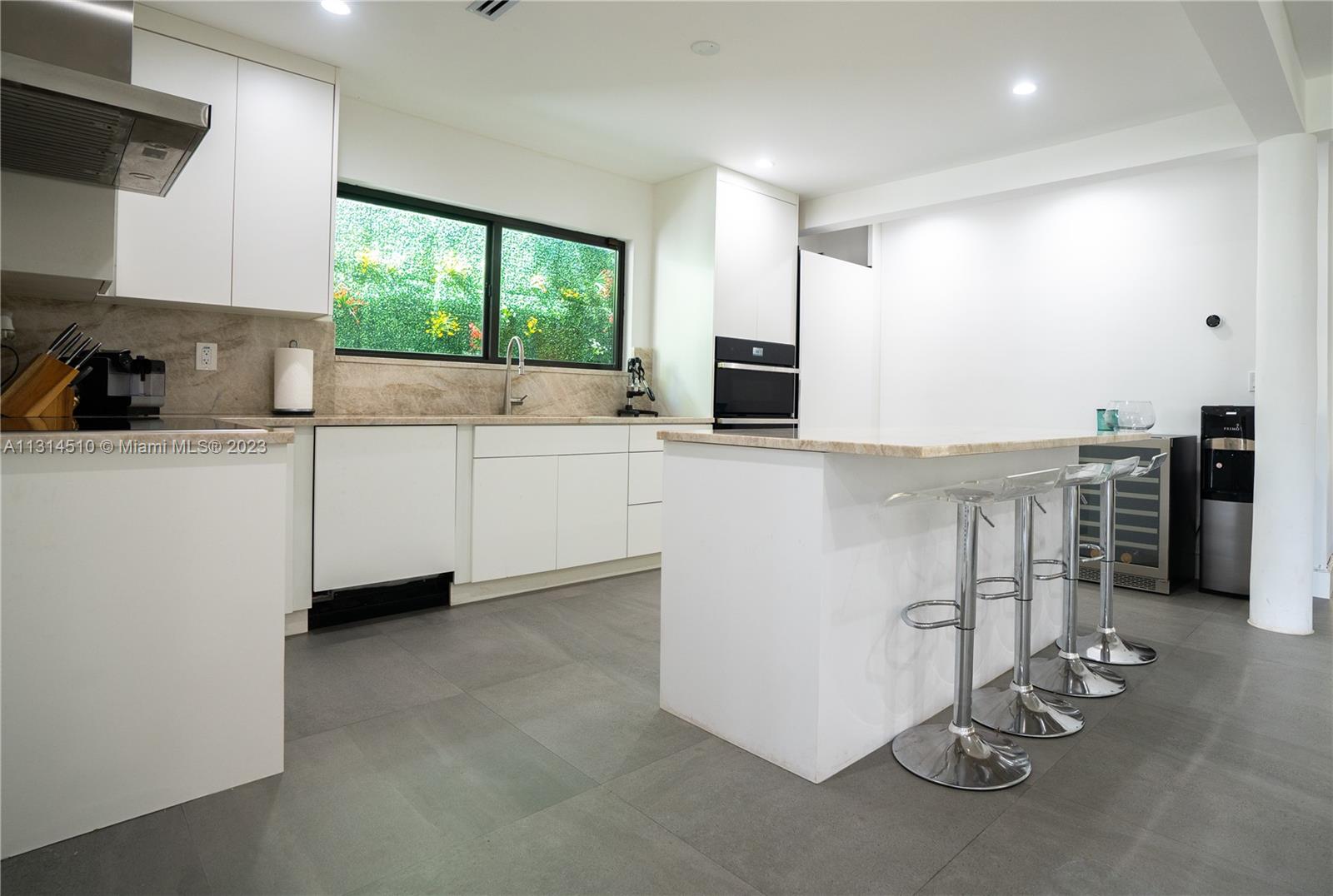 This private Miami Beach home offers a bright and spacious open floor plan and is conveniently located walking distance to 41st Street. You'll be close to restaurants, banks, stores and places of worship, as well as being within walking distance of the beach. Enjoy a private heated pool and jacuzzi surrounded by beautiful landscaping and fruit trees. The outdoor patio is perfect for entertaining with an Argentinian grill, wet bar, and plenty of seating with views of the pool. The master bedroom and living area both have folding windows that open completely to bring the outdoors in. The house is outfitted with great finishes, such as AC Diffusers and Recessed lighting, making this a great property to show.