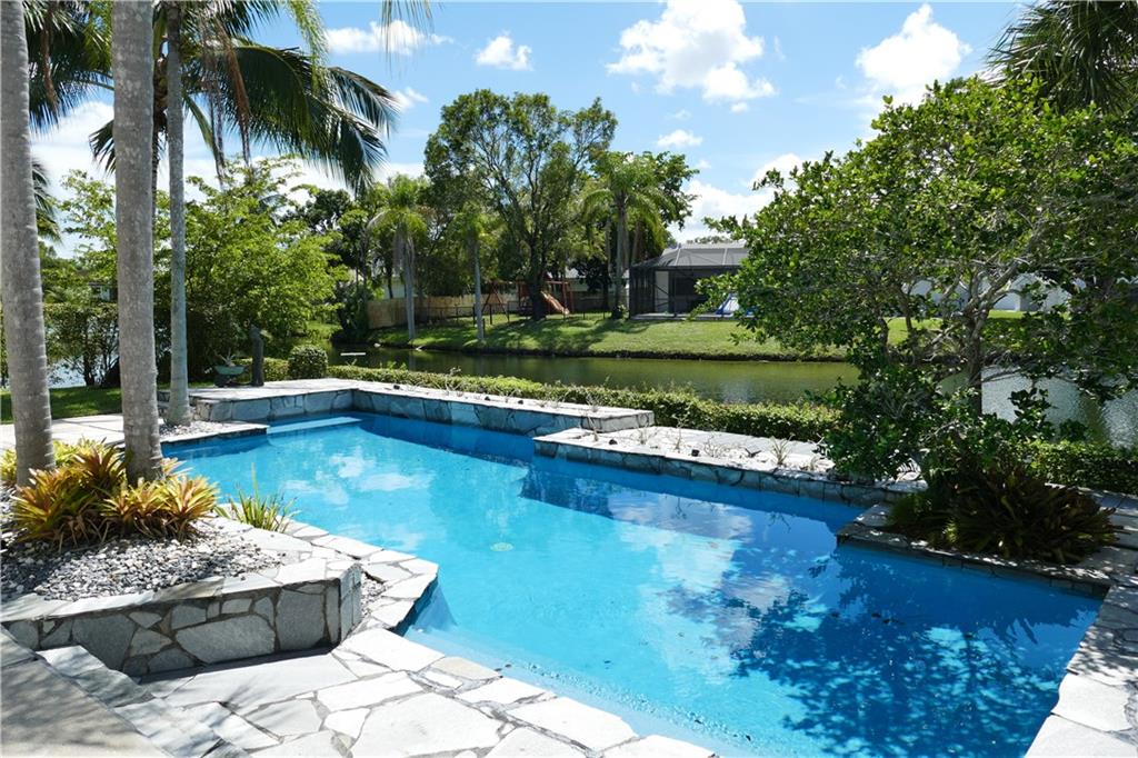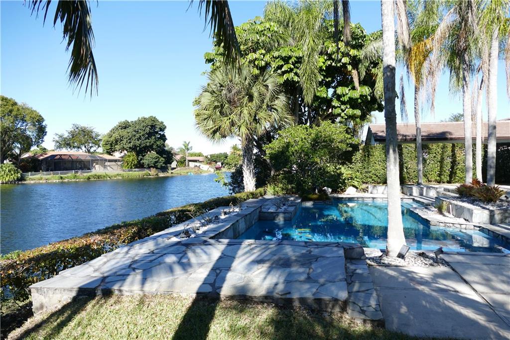 1 of a kind in Jacaranda Lakes! GREAT CURB APPEAL & LOCATION! Can't beat this WATERFRONT lot in Jacaranda Lakes-a canal to the S side of the property that merges into a lake in back on the W side! Just beautiful and private! In addition, this home is directly across from Jacaranda Park one of the town parks in the neighborhood! This 2-story, 4BR 2 1/2 bath and a shower off the laundry room was custom built by this original owner! XL primary BR w/an enormously long walk-in closet is something rarely seen in Jacaranda Lakes. Updated 2nd bath, laminate birch wood floors in FR and kitchen. Accordian shutters, 2 Aone A/C-Ruud 6/17 & a Carrier 3/15. Updated GE electric panel, Ring doorbell + cameras. Enjoy beautiful Florida sunsets and water views from your pool and patio! Seller motivated!