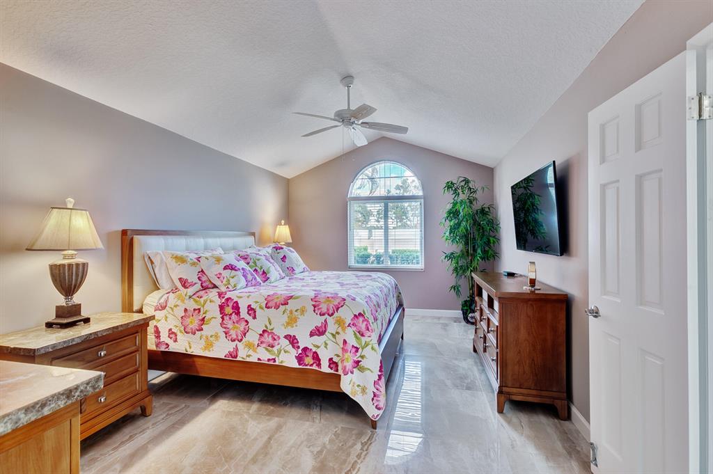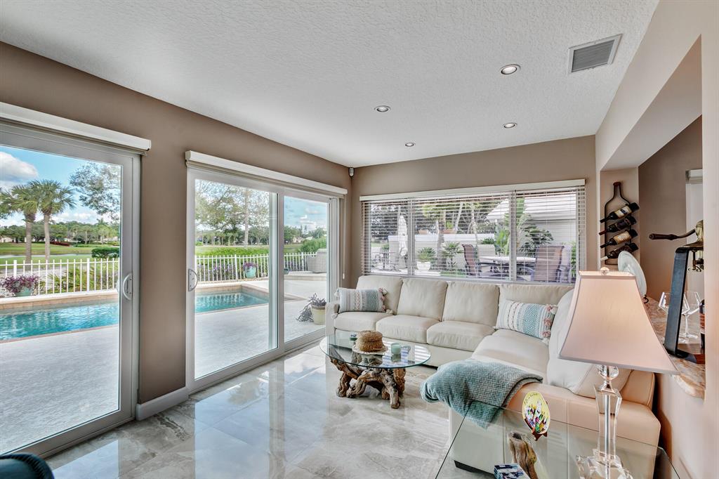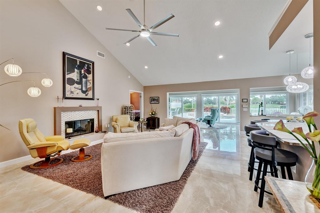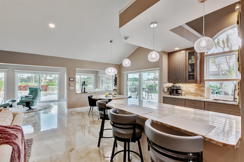 Exceptional pool home privately nestled on the 4th fairway of Bear Lakes Estates Lakes Course. This incredible single story home in Saratoga Bay was totally redone and features extended living areas with custom finishes, 3 bedrooms, 2 full bathrooms, 2 car garage, new A/C, situated on oversized (.20 AC) pie-shape lot with sweeping views of lake and golf course. Designed with the perfect combination of casual living and sophisticated entertaining, this enchanting home is awash with tons of sunlight and natural hues, vaulted ceilings, modern LED hi-hat lighting, and all impact windows and doors (including garage door). Impressive upon entry from your elegant (hurricane protected) etched glass front door, and decorated to perfection, this open floor plan features stunning 32'' porcelain