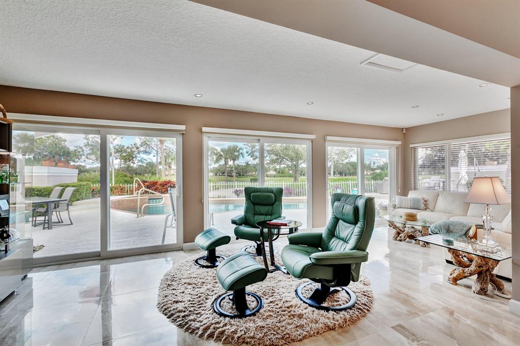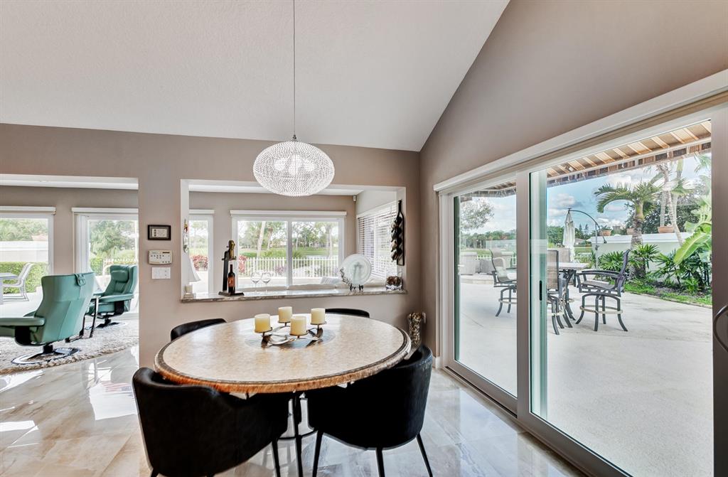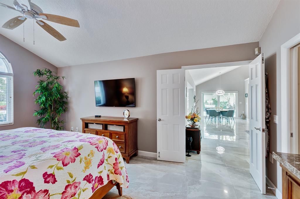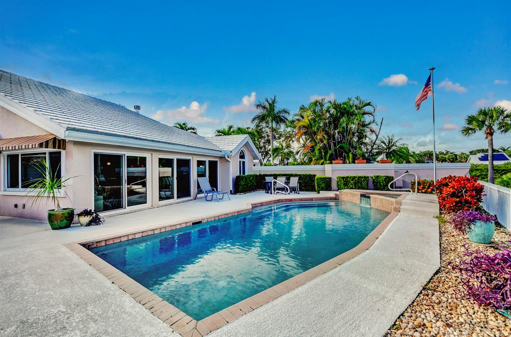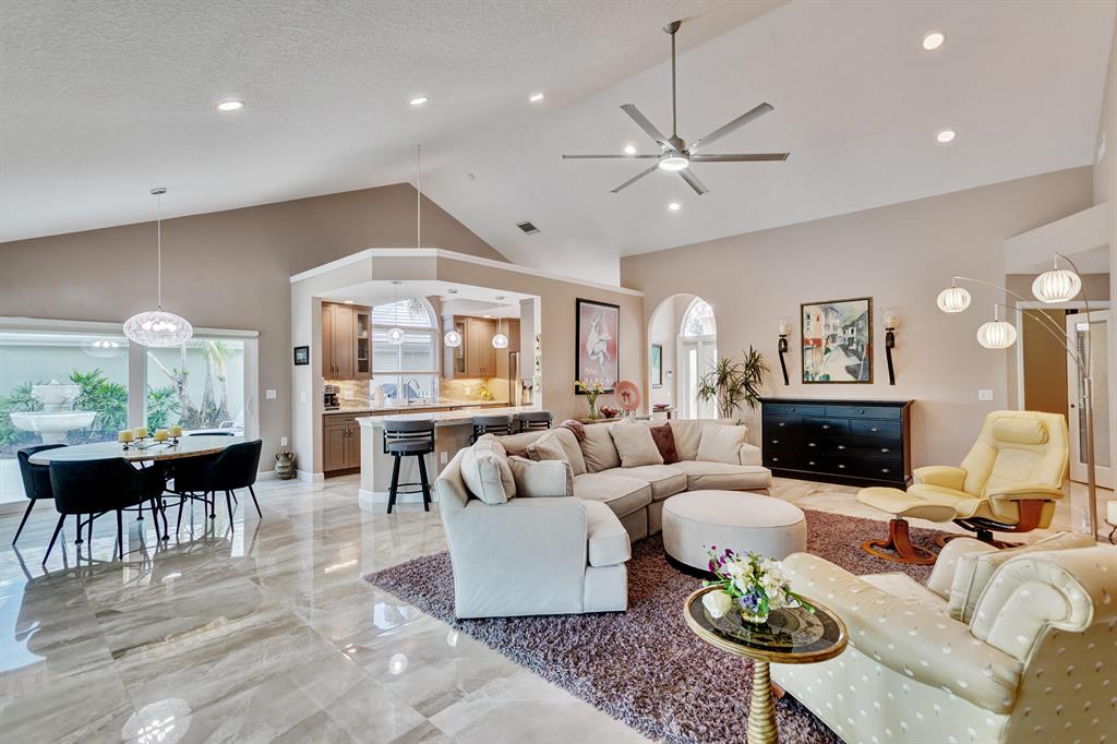 Exceptional pool home privately nestled on the 4th fairway of Bear Lakes Estates Lakes Course. This incredible single story home in Saratoga Bay was totally redone and features extended living areas with custom finishes, 3 bedrooms, 2 full bathrooms, 2 car garage, new A/C, situated on oversized (.20 AC) pie-shape lot with sweeping views of lake and golf course. Designed with the perfect combination of casual living and sophisticated entertaining, this enchanting home is awash with tons of sunlight and natural hues, vaulted ceilings, modern LED hi-hat lighting, and all impact windows and doors (including garage door). Impressive upon entry from your elegant (hurricane protected) etched glass front door, and decorated to perfection, this open floor plan features stunning 32'' porcelain