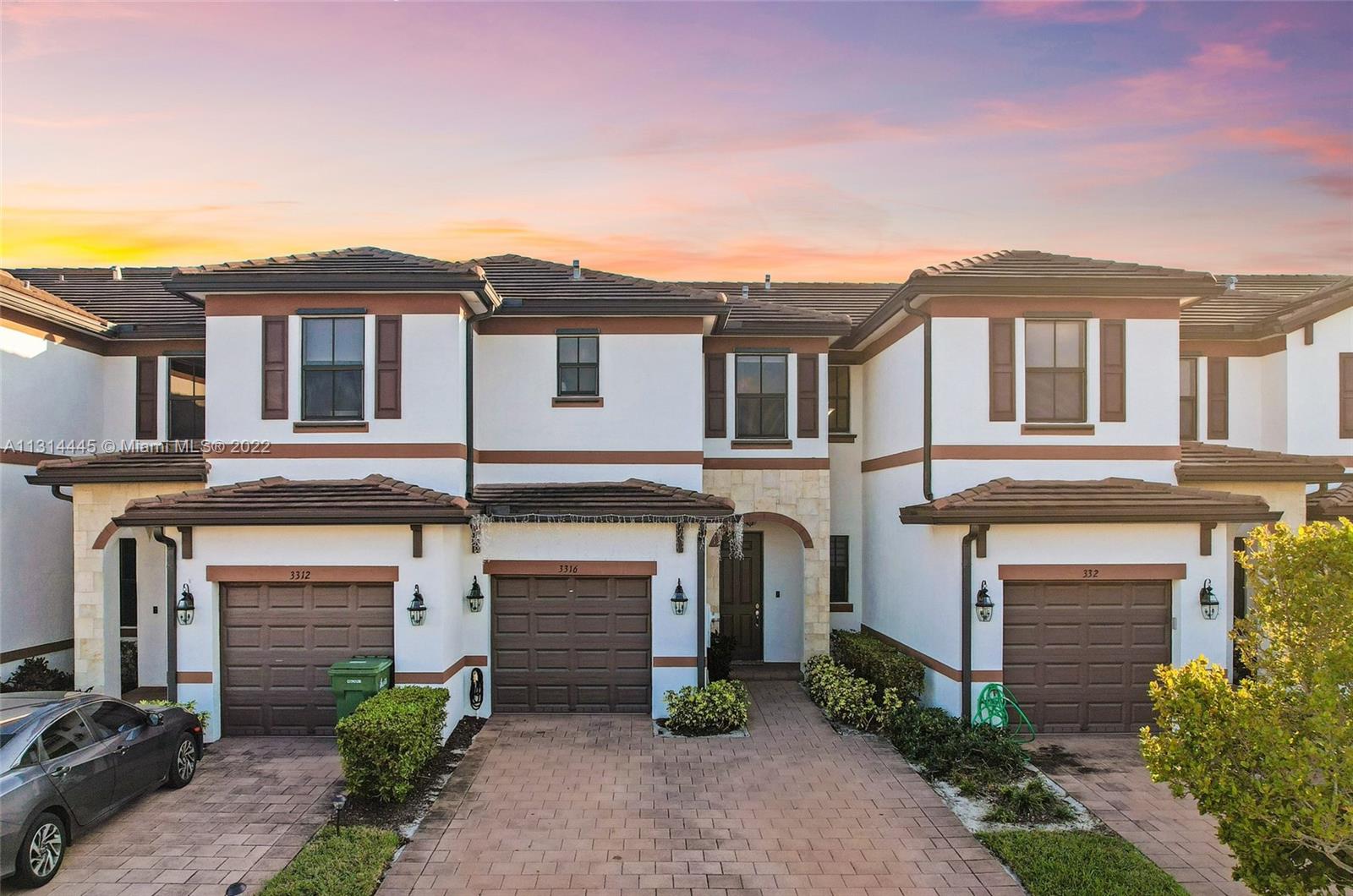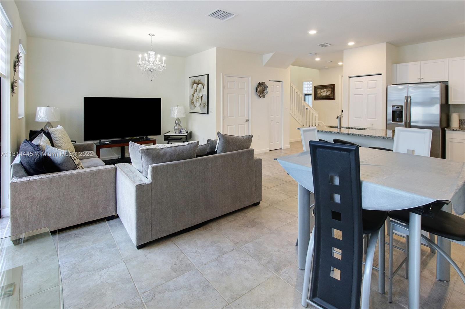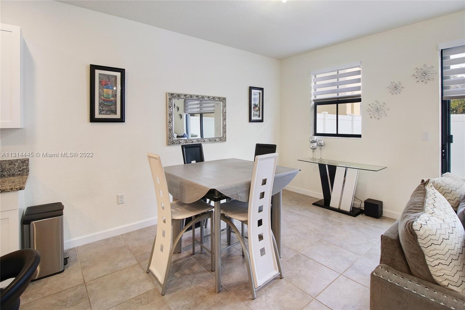 Presenting a beautiful townhouse, offering you a 3 bedroom, 2 full bathrooms and a half bathroom in the Aquabella community. This property features stainless steel appliances along with a kitchen island, dining area connecting to the living room. Giving a spacious backyard with concrete, great for entertaining guest, BBQ & family activities. Carpet leading upstairs covering the rooms, primary bedroom with an en suite and double closets, two standard rooms which share the second bathroom. Washer & Dryer provided on the second floor, easy access from the rooms. New construction home allowing quick access to nearby highways such as I-75, 826 & Turnpike and daily used convenient stores 5 miles or less away. This home neighbors great elementary, middle & high schools nearby.