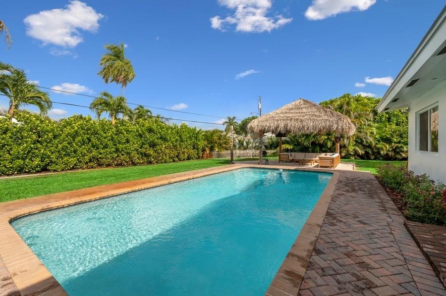 Dreaming of a vacation-inspired lifestyle in sought-after Old Pompano? Completely move in and FULLY renovated, this 4 bedroom/2 bathroom home is ready for you to enjoy! This home is an entertainer's dream featuring a large gourmet kitchen outfitted with stainless steel appliances, white cabinets, ample cabinetry and a beautiful bar. Spend your afternoons unwinding in the Tiki Hut overlooking the beautiful pool in this oversized lot. The many upgrades include new PVC plumbing throughout, impact windows & doors, a brand new aluminum roof, beautiful new LVT flooring, fresh interior & exterior paint and tropical landscaping. Come experience the ultimate in laid-back Florida living! Also would be a great opportunity for a vacation rental!