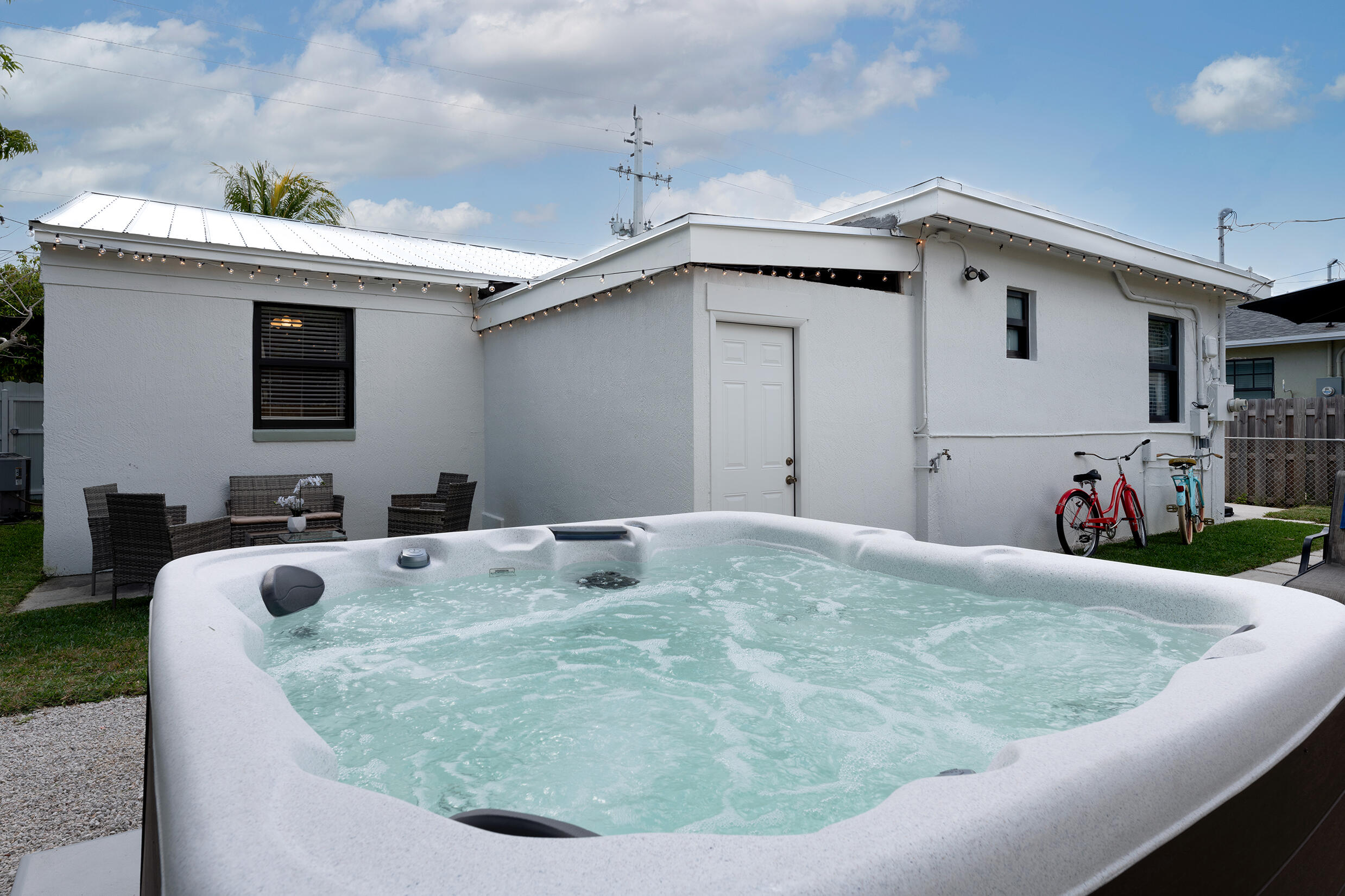 Newly remodeled bungalow 5 minutes to Palm Beach Island and 7 minutes to downtown WPB- 1 block from the new Joseph's Market on Dixie. Brand new metal roof and impactwindows. Remastered bathrooms with new tile, vanities, lighting and built in Bluetooth speakers. Brand new kitchen with granite countertops and stainless steel appliances. New irrigationsystem. Large, private totally enclosed backyard with brand new hot tub. This house can be purchased as a turnkey furnished/stocked rental and immediately generate income. Huge appreciationpotential with new developments and shopping centers right down the street. Quiet street right in the heart of everything, enjoy all that West Palm Beach has to offer!