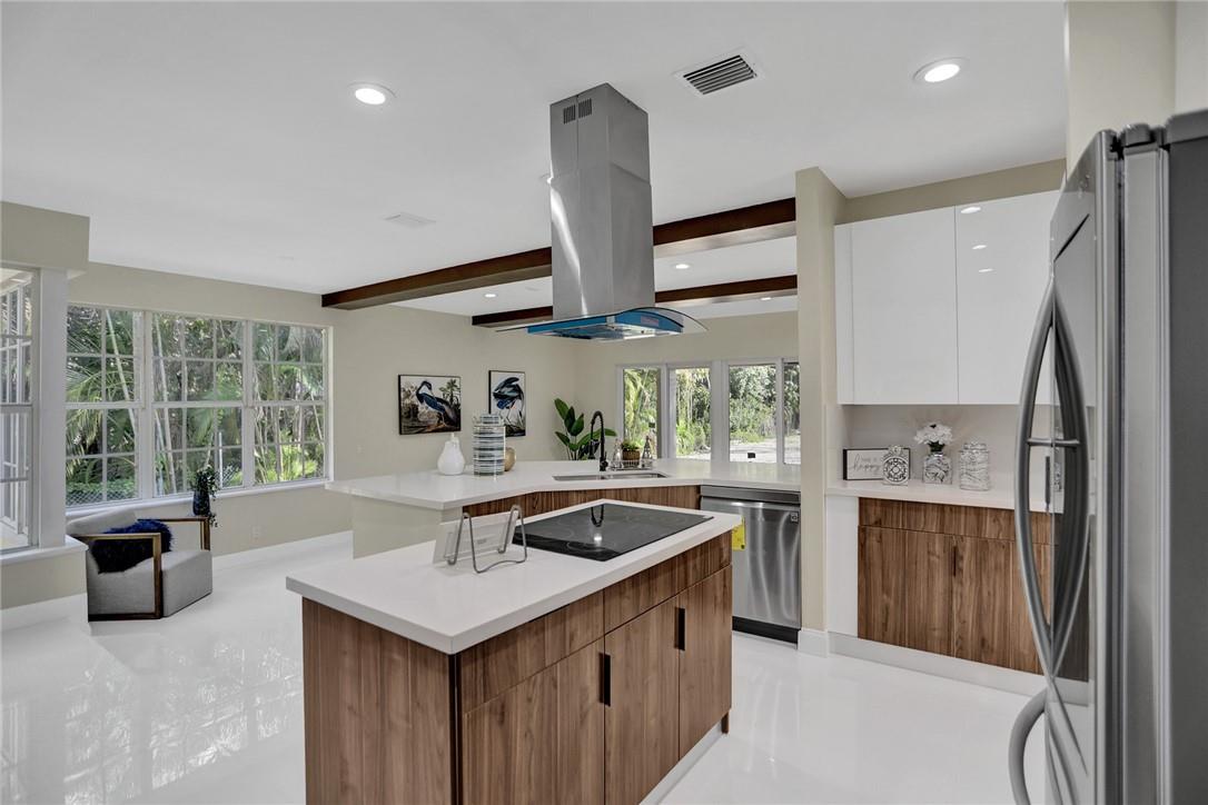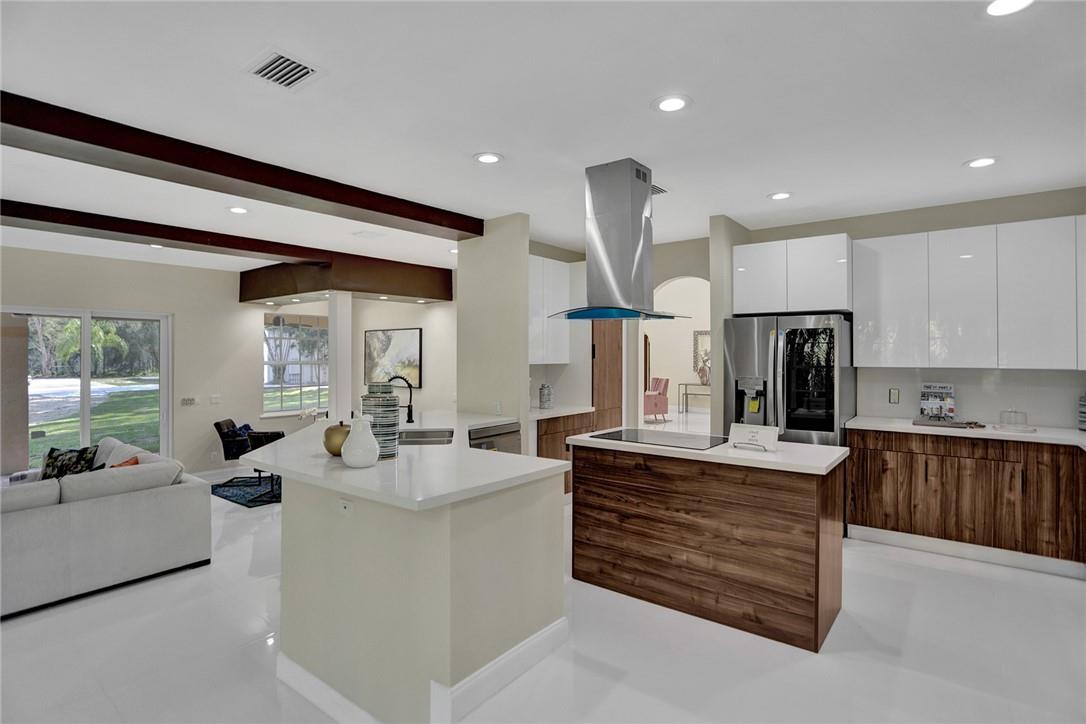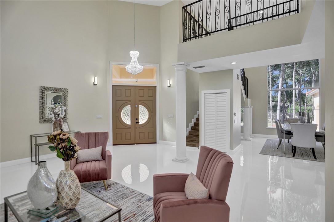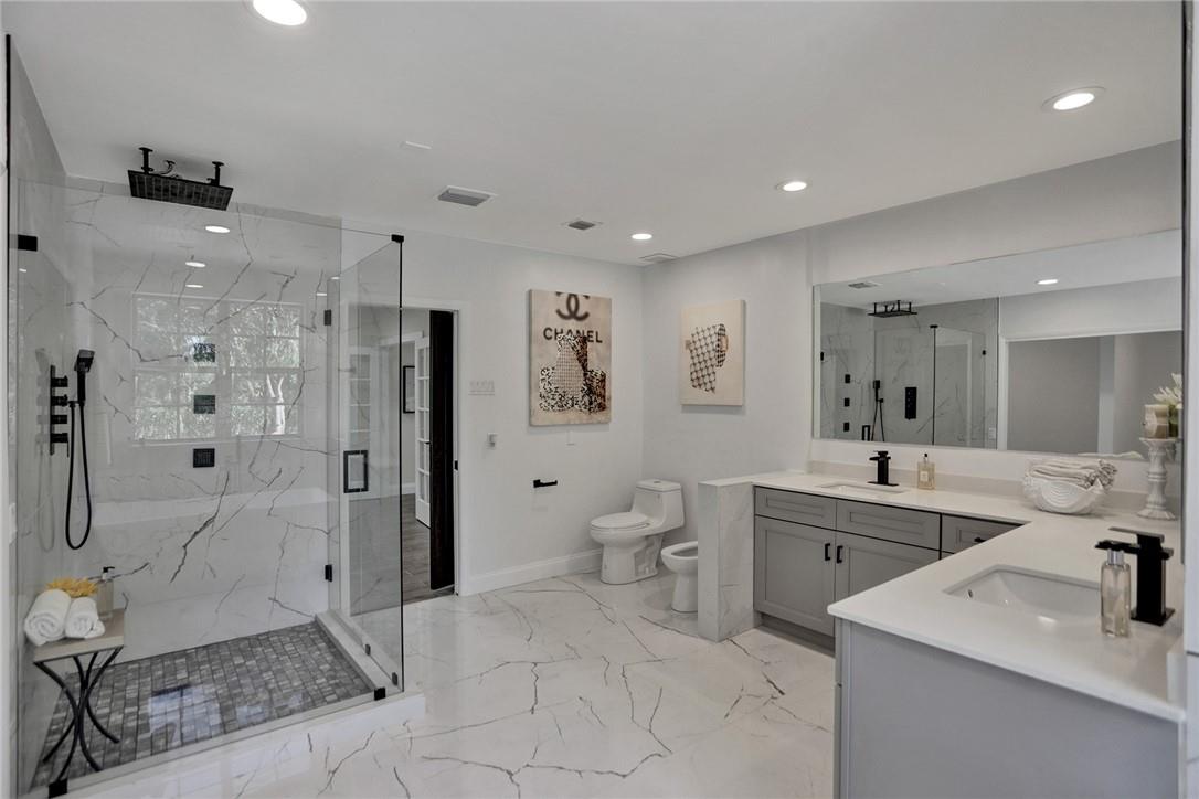 This spectacular 2-story home welcomes you to a 84.071 SF lot with a private driveway entrance. This property has been completely renovated with new wooden cabinets in the kitchen, quartz countertops and SS appliances. New porcelain floors throughout the entire property, remodeled bathrooms, and freshly painted inside and out. Ground floor offers 3 bedrooms & 3 baths with a spacious master suite on the second floor with vaulted ceilings and private balcony overlooking the backyard. One of the many highlights of this impressive property is its 14-car garage space (6,700 sq ft). New owner can also be creative with the garage spaces in the backyard which make this property very unique and attractive. Home also features security gates with remote control and new Miami tropical style pavers.