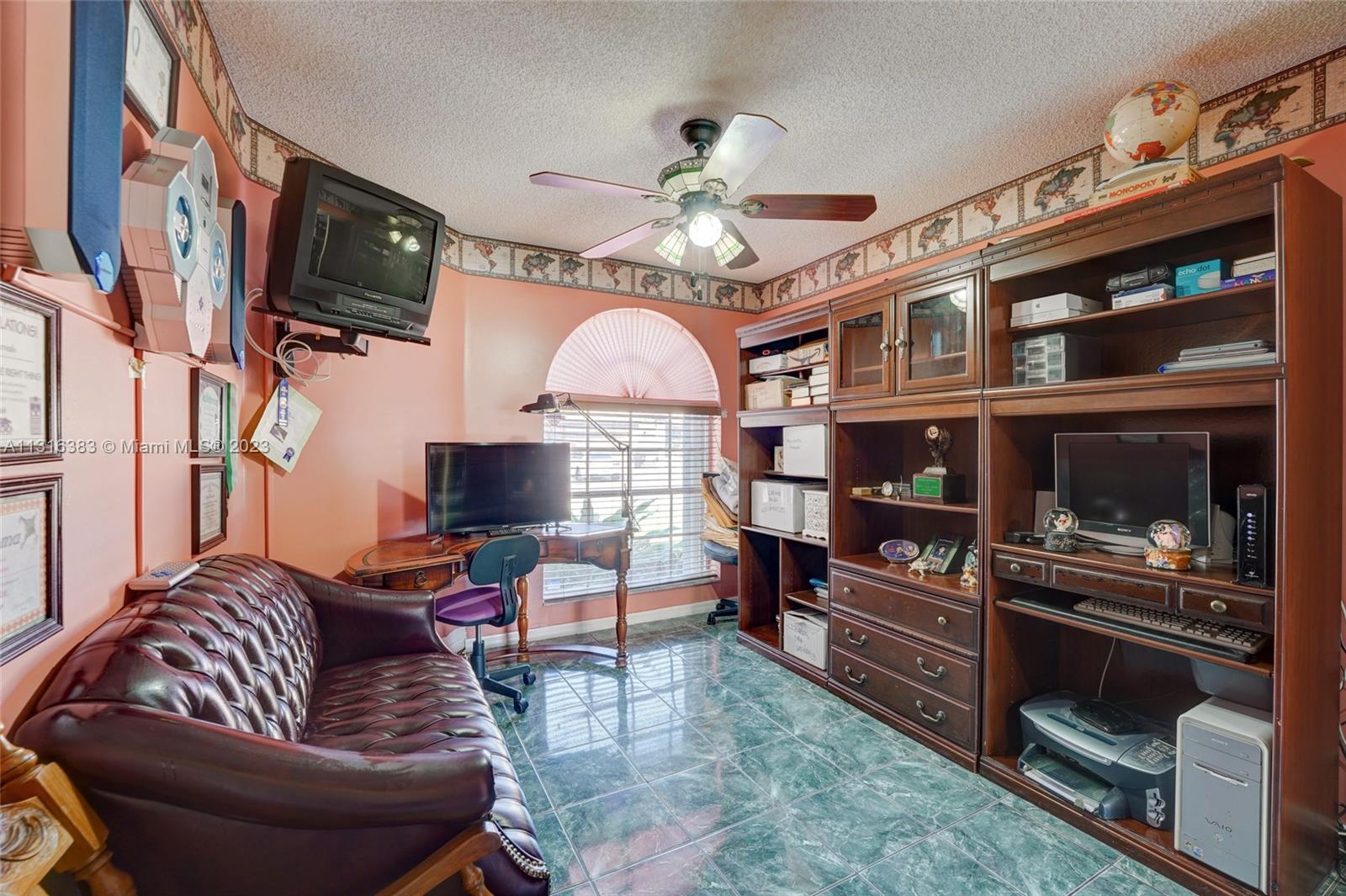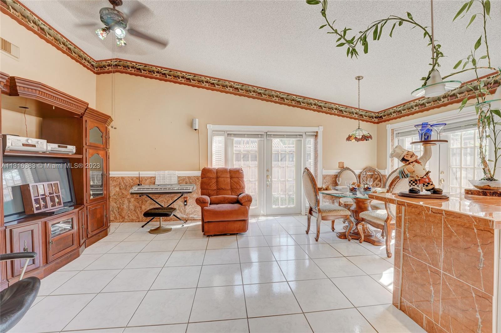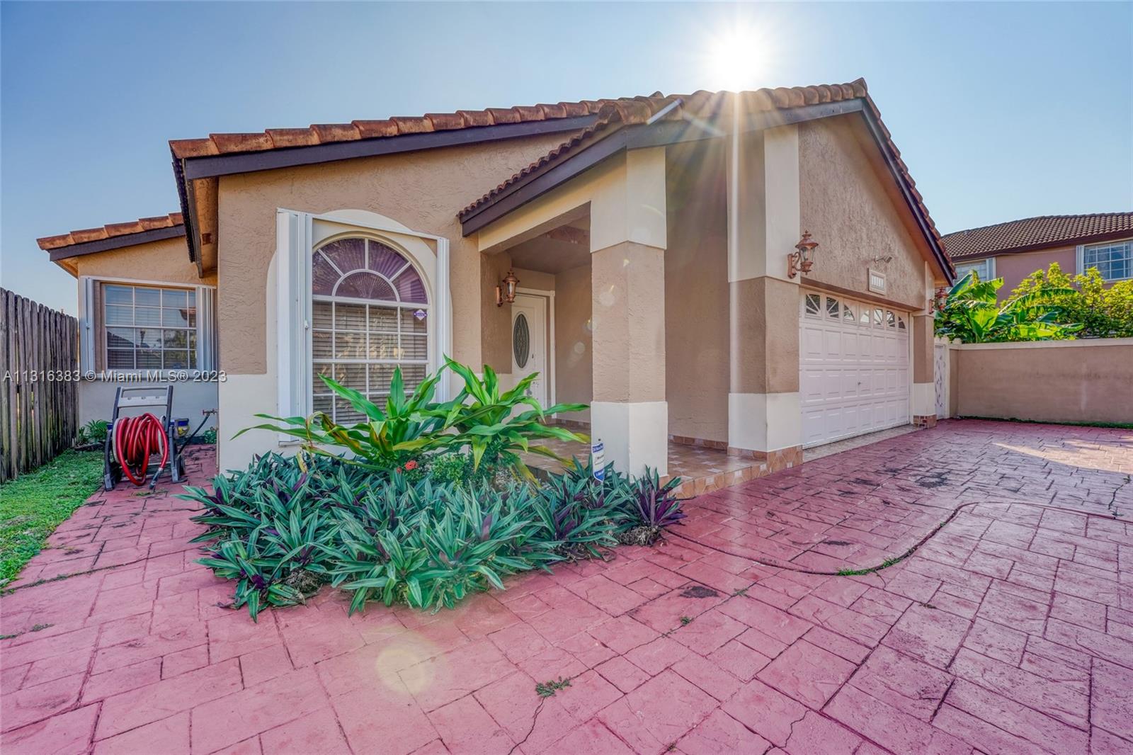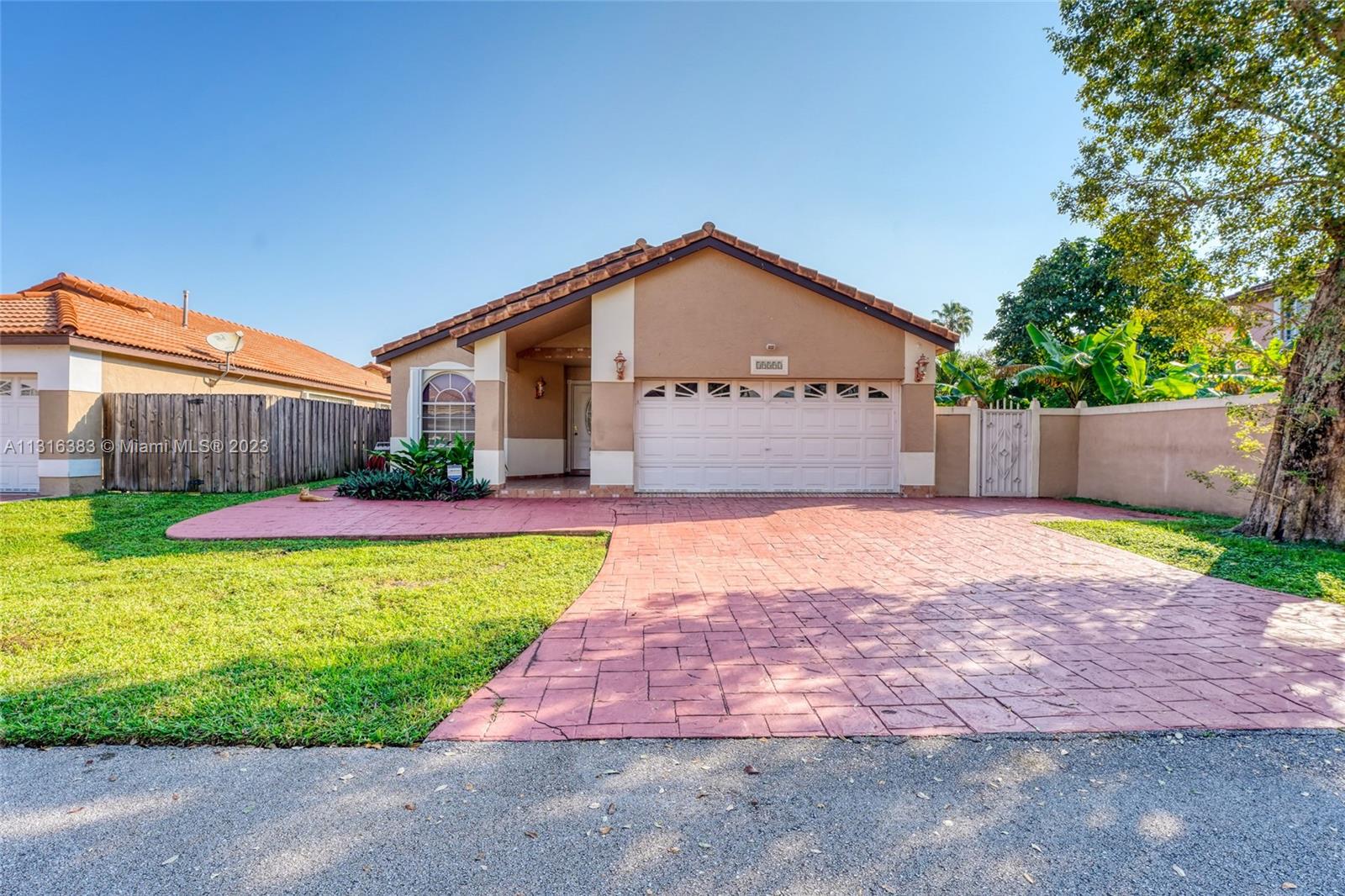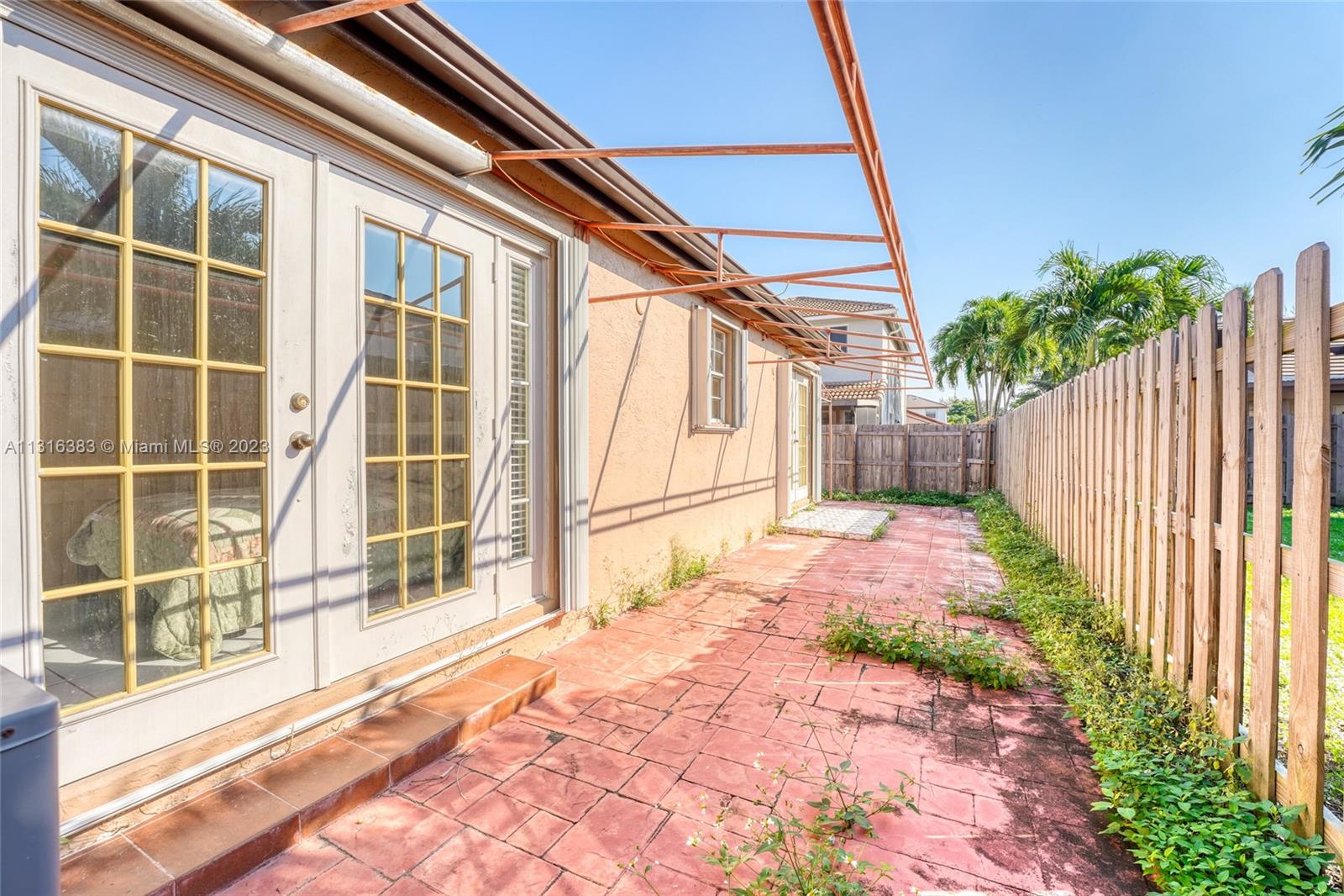 Amazing property located in a well desirable area. This beautiful single family home offers 3 bedrooms, 2 baths, an added den/office/4th bedroom, 2 car garage, large master suite with walk in closet, eat-in kitchen and multiple french doors leading to wrap around back patio. This property is located in a family oriented gated community within short distance from shopping center, restaurants, turnpike, palmetto, I-75 and schools. Monthly Association Fee includes security, lawn maintenance and community pool.