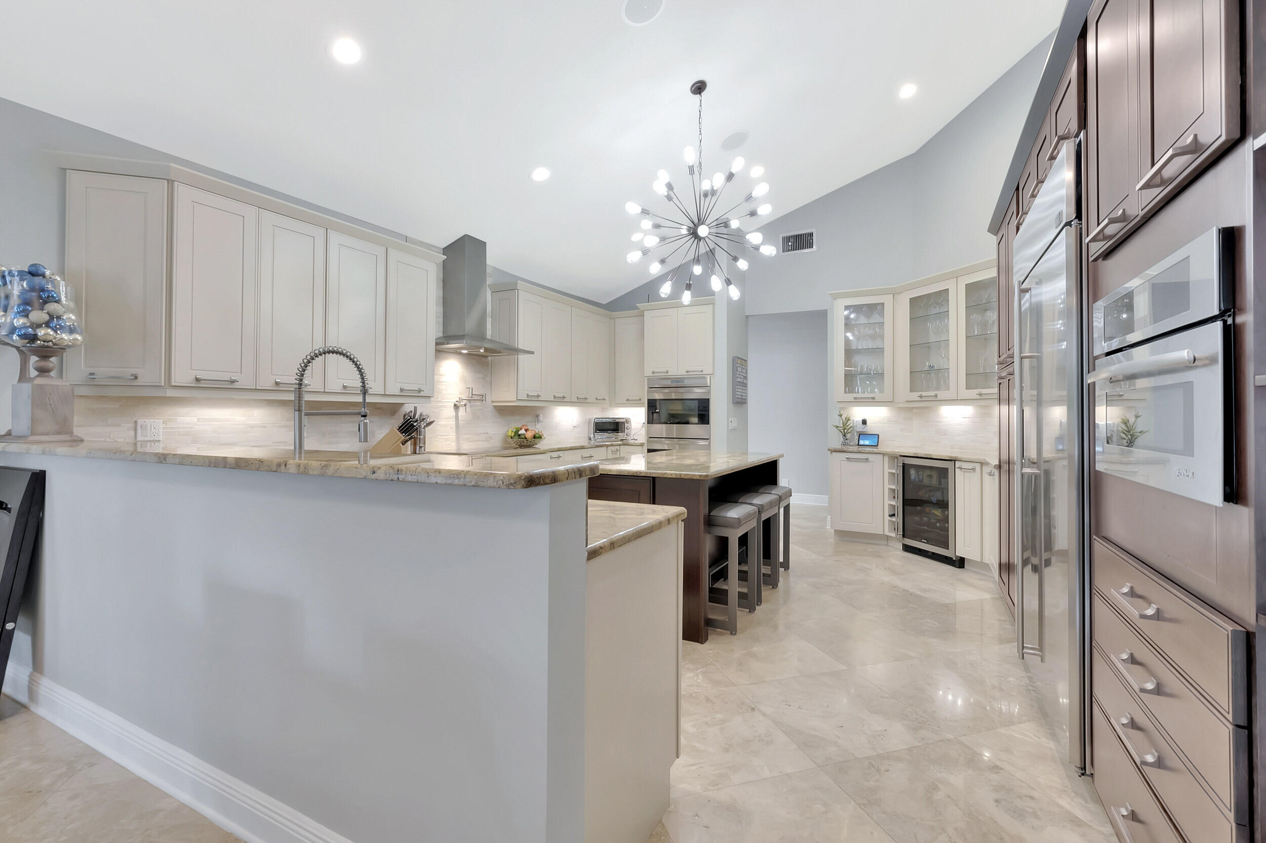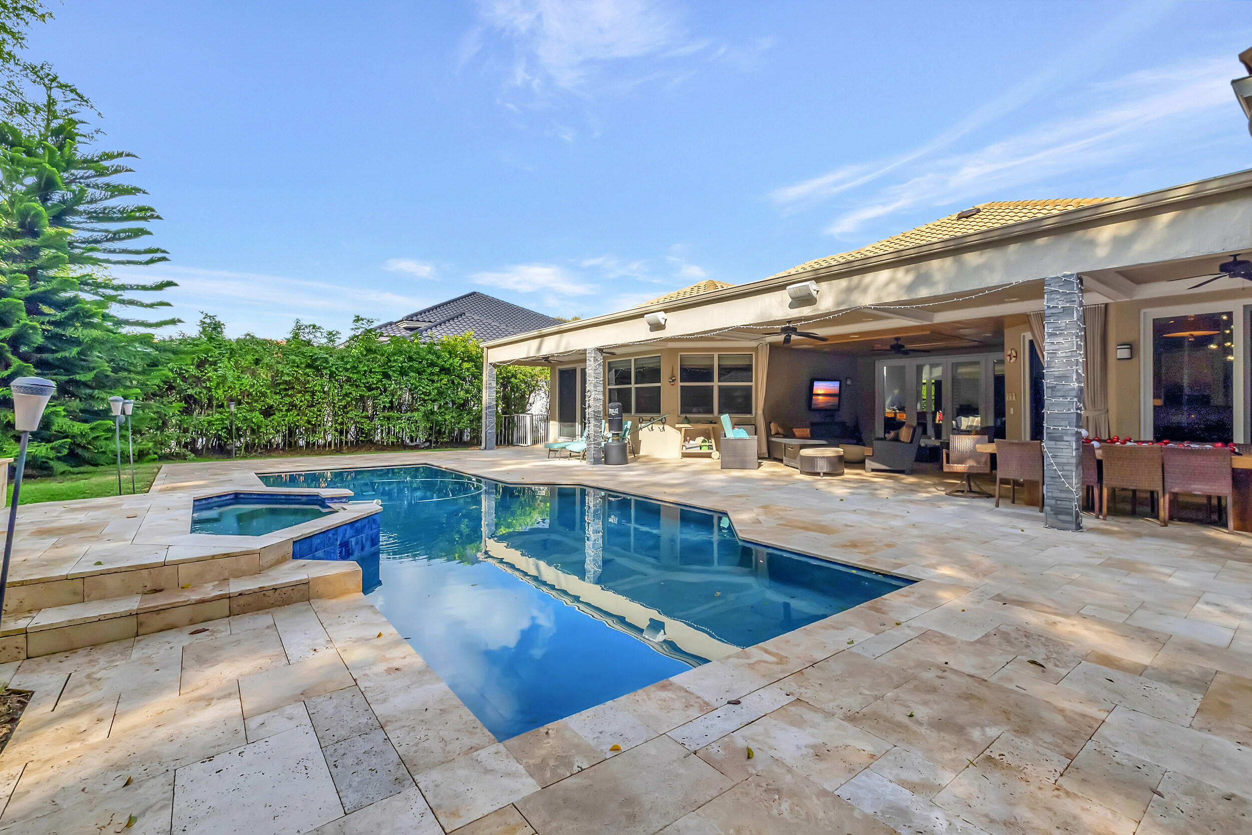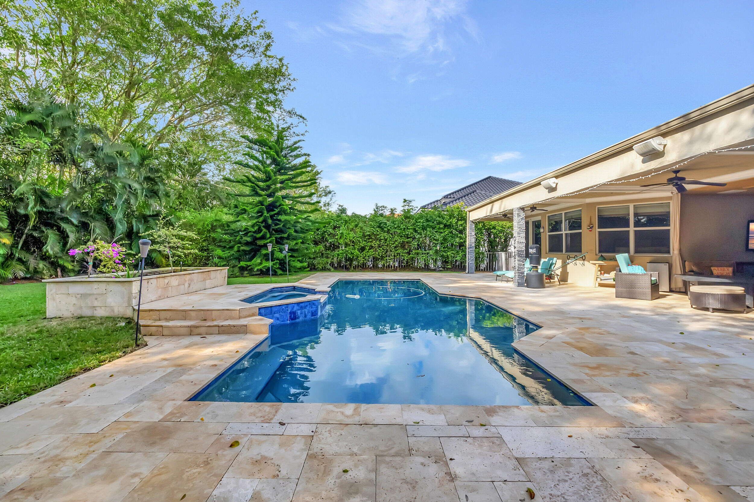 Beautiful 4 BD 4.5 BA + Office/5th bedroom one-story, estate home in highly coveted Devon Place of Woodfield Country Club. Split-bedroom plan allows for ample privacy, with all ensuite bedrooms. Spacious kitchen, open to breakfast nook and living room and enjoys gorgeous views of the backyard. Great house for entertaining, backyard offers the complete Florida lifestyle with an outdoor living room with television hookup, a full summer kitchen and bathroom, pool, patio and lawn.
