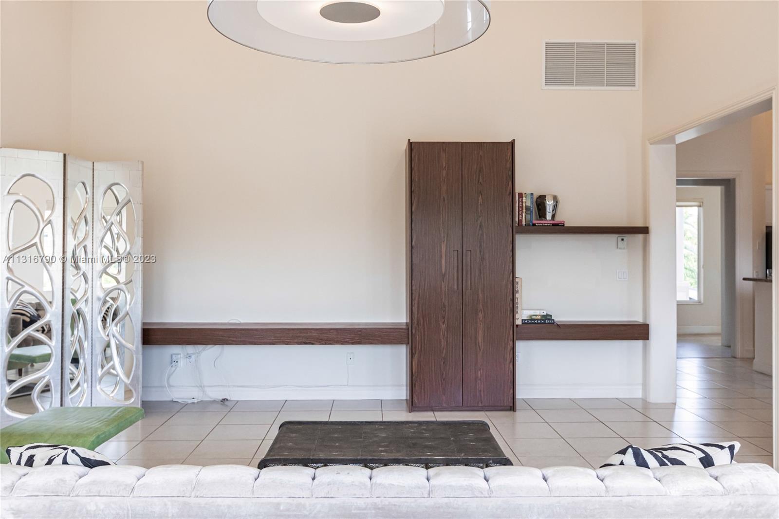 Stunning, split level waterfront mansion located in guard-gated Gables By The Sea, boasts the most picturesque setting for Florida's sunsets. Situated on a unique, T-style, wide section of the waterway with endless water views, the property has 5 bedrooms with master on the first floor. All rooms on the first floor including the bedroom, kitchen, breakfast area, formal dining with large windows, living room with fireplace,& oversized family room ALL HAVE WATER VIEWS AND 15' HIGH CEILINGS. The covered patio with retractable awnings overlooks the swimming pool and the water. There is a separate laundry room with ample cupboards, and the house has 2 x 2 car garages. Gables by the Sea is a treelined, tranquil & serene community located beside Gulliver Prep, a private day school.