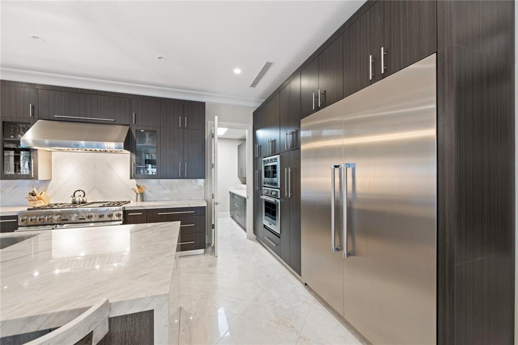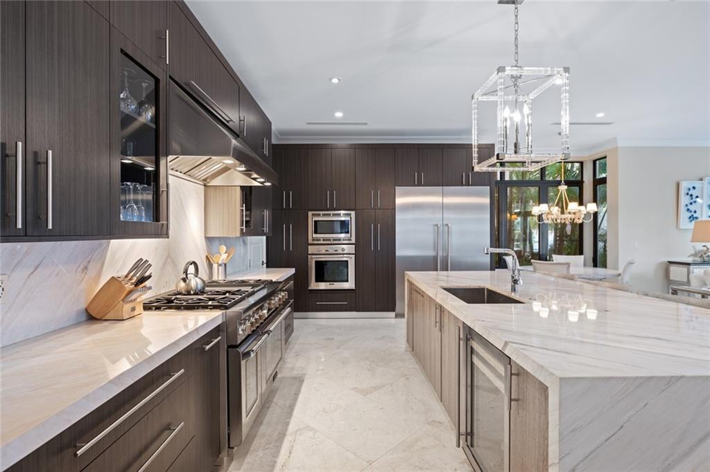 Offered turnkey & available for a quick closing! Stunning transitional custom deep-water residence offers Eastern exposure, resort style grounds, pool & spa, summer kitchen & 95' of deep-water frontage. The professional interior design offers a welcoming coastal modern vibe & open flow that is perfect for entertaining! Elegant entry foyer, 2-story living room & fireplace, adjoining formal dining room & expansive great room, breakfast area with large & well-equipped Chef's kitchen (all water facing). home office & potential bedroom on first level, 2 laundry rooms,custom lighting & drapery throughout. Grand staircase/elevator to 4 spacious bedrooms & incredibly well proportioned primary suite, sitting area, ultra-luxurious spa bath & large custom closets, access to oversized covered balcony
