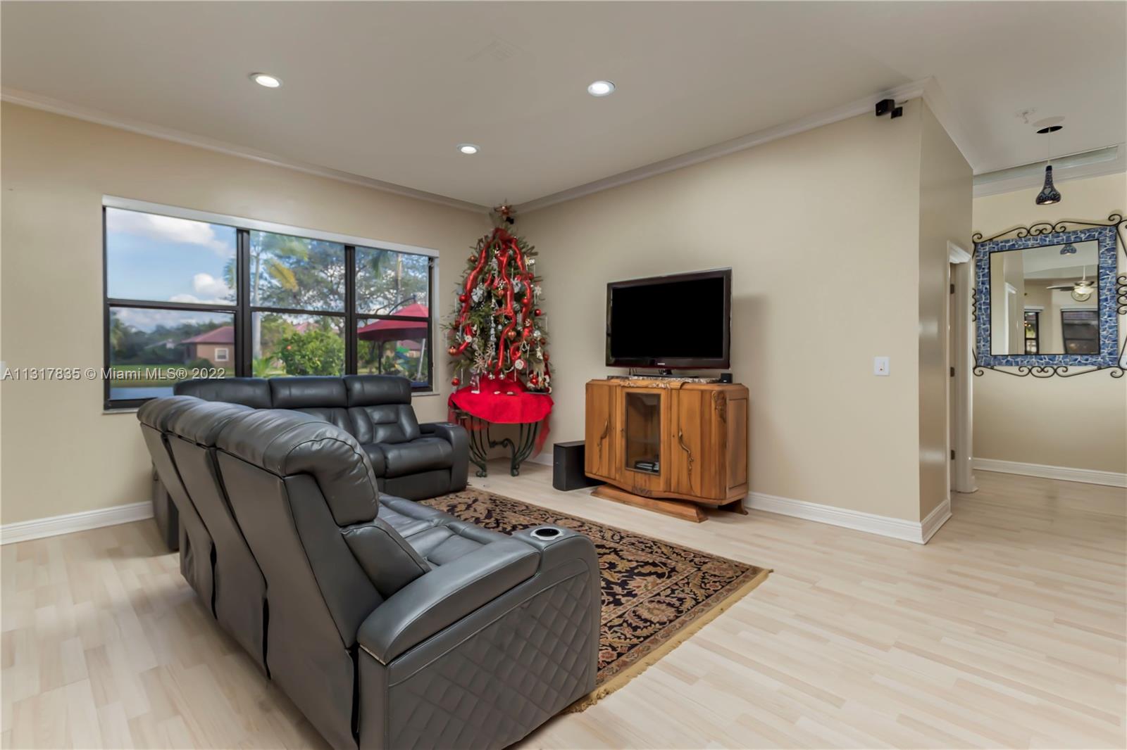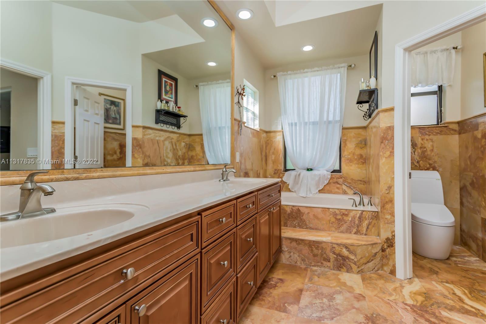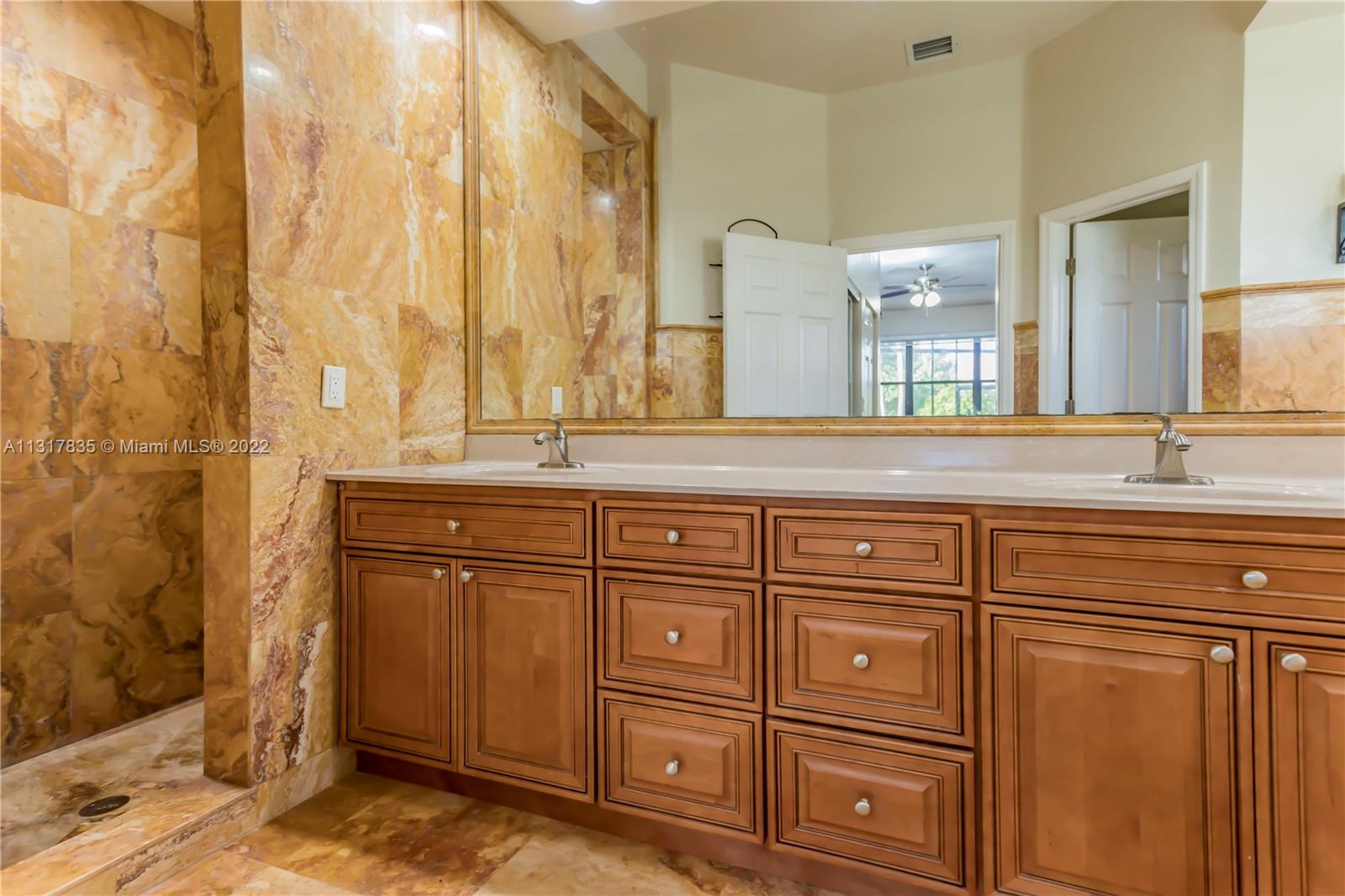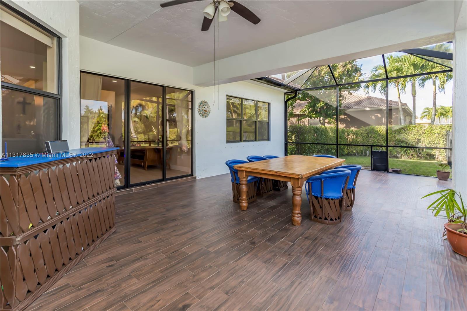 Stunning lakefront home on nearly a full acre lot in the guard gated community of Imagination Farms. This split floor plan includes volume ceilings, beautiful warm neutral colors, recessed lighting and more. Gourmet kitchen features granite counter tops, stainless steel appliances, and a large walk in pantry. Master Bedroom boast spectacular lake views, 2 walk-in closets and a large master bathroom with travertine tiles and large soaking tub. Walk out to your backyard oasis which features an extended screened in patio with beautiful ceramic tile floors, a dog run, a pool and amazing lake views. This large lot not only has lush landscaping but also fruit trees which include mango, avocado, and coconut. LG fridge does not convey.