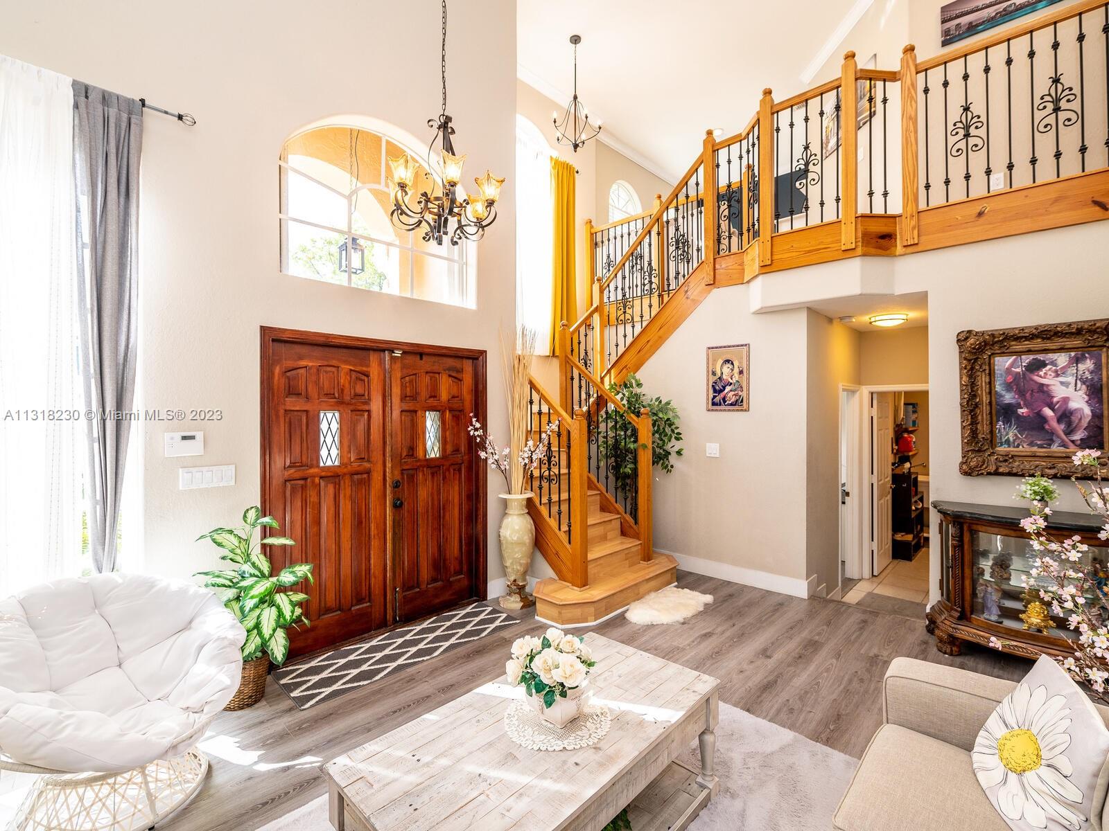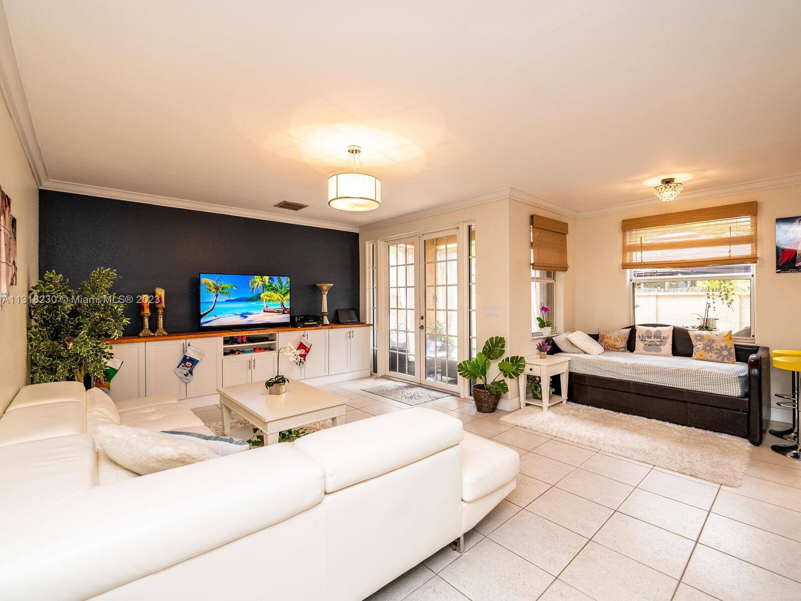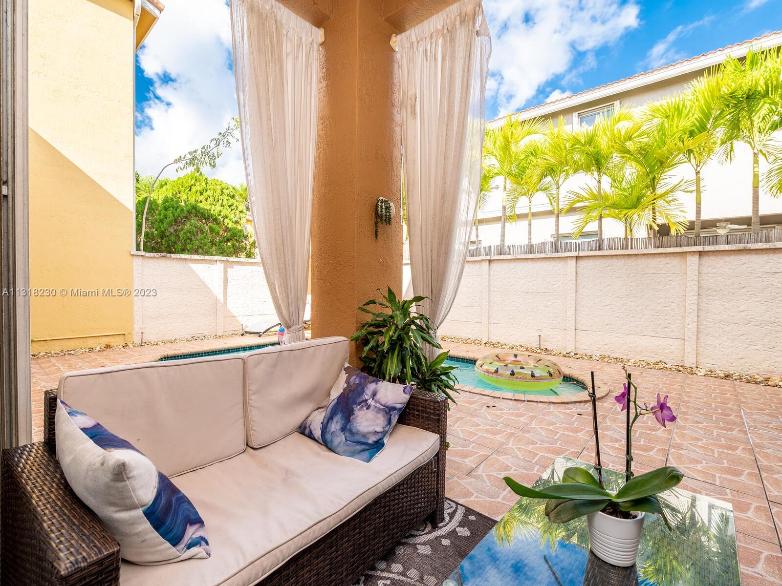 REDUCED...Great Location, Spectacular Mediterranean style. 4BR 3.5 Bath home, formal living and dining room, huge family room, LOFT, roof top terrace/sun deck overlooking the spacious patio and your own in ground POOL. Eat-in kitchen with wood cabinets, granite countertops, and SS appliances, full bedroom and bath downstairs, tile downstairs and wood laminate 2nd floor. Hurricane rated accordion shutters. Large two car garage, Outside shower/cabana bath, low HOA includes gated security, alarm, cable, walking distance to schools, shopping, entertainment, basic cable TV and ADT monitoring included. BACK ON THE MARKET. ROOF NEEDS REPAIR. CASH ONLY. Offer with proof of funds
