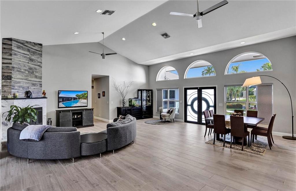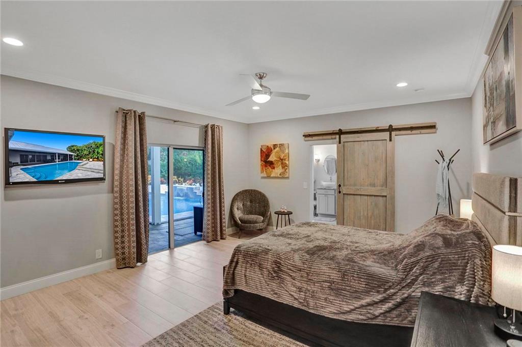 Must see this beautiful 1 acre estate w/5,565 total sqft. Located on one of the most private lots in the secluded enclave of Boniello Acres in central Boca Raton. This family oriented main home offers a spectacular Great Room, 4/4 plus Den. Large attached Guest/Next Gen House offers 2/2 w/full estate kitchen and separate entrance. Oversized garage. Property updated inside and out. Boasts an open and specious single story floor plan, with an abundance of natural lighting, fireplace, beautiful pool with LED fountains and waterfall, outdoor kitchen, motorized patio screens, a playground, room for Tennis/Basketball court. Tesla EV charger. Barn can be utilized for storage, Man/She shed. New roof/Impact Garage Door (2022), private gates and fencing. A Rated Schools Calusa, Omni, Spanish River.