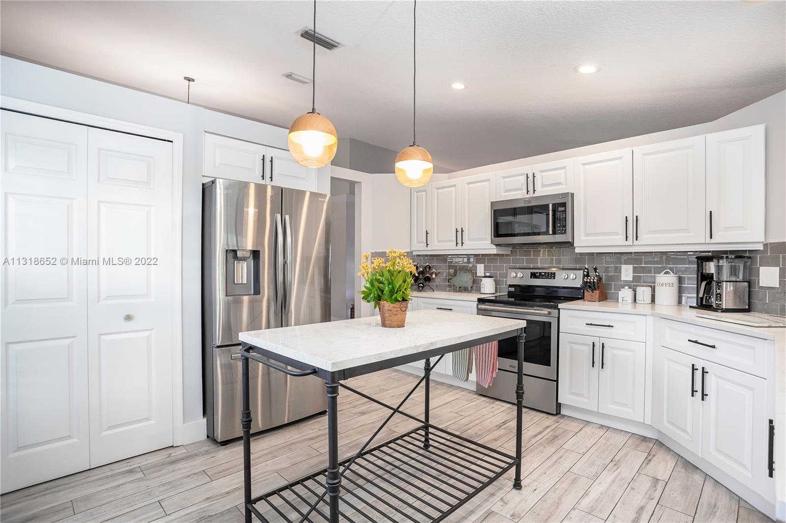 THE HOME YOU HAVE BEEN WAITING FOR HAS FINALLY ARRIVED!! THIS 4 BEDROOM, 2 BATH HEATED & SALTWATER POOL HOME WITH CANAL VIEW HAS BEEN UPDATED FROM HEAD TO TOE! ENTER THROUGH THE BRAND-NEW IMPACT DOUBLE DOORS AND BE GREETING WITH HIGH VOLUME CEILINGS. ALL NEW PORCELINE WOOD LOOK TILE THROUGHOUT, FORMAL LIVING & DINING, SPLIT BEDROOMS. OPEN KITCHEN WITH QUARTZ COUNTERTOPS, SS APPLIANCES, BAR TOP FOR ADDITIONAL SEATING AND SPACE TO ADD A TABLE OR ISLAND. PRIMARY BEDROOM FEATURES VIEWS OF THE POOL AND WATER, HIGH CEILINGS, FULLY UPDATED BATHROOM FEATURING DOUBLE SINKS, STAND ALONE TUB WITH CABANA DOOR. ALL NEW LIGHTING & FANS, PLANTATION SHUTTERS THROUGHOUT, BRAND NEW W/D & A/C, 2019 ROOF, 2022 PAVER STONE DRIVE, NEW LANDSCAPING WITH LIGHTING. ALARM SYSTEM ON ALL WINDOWS AND DOORS.