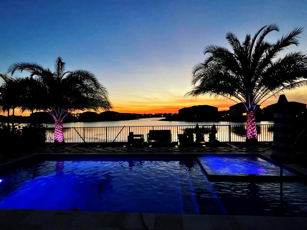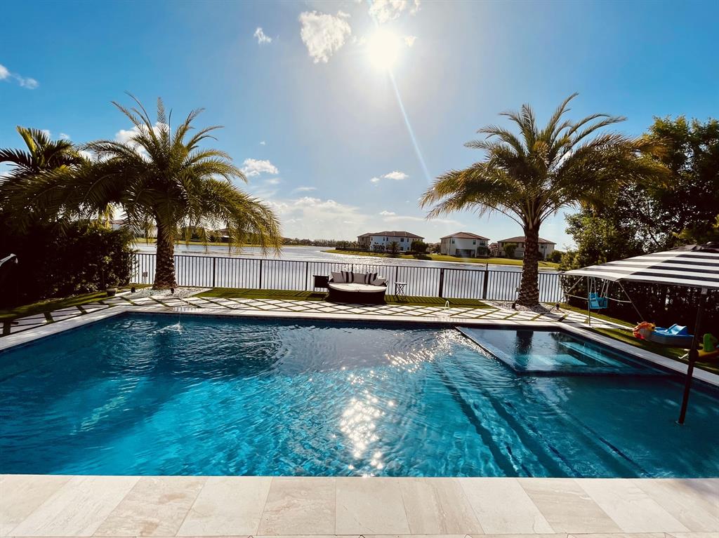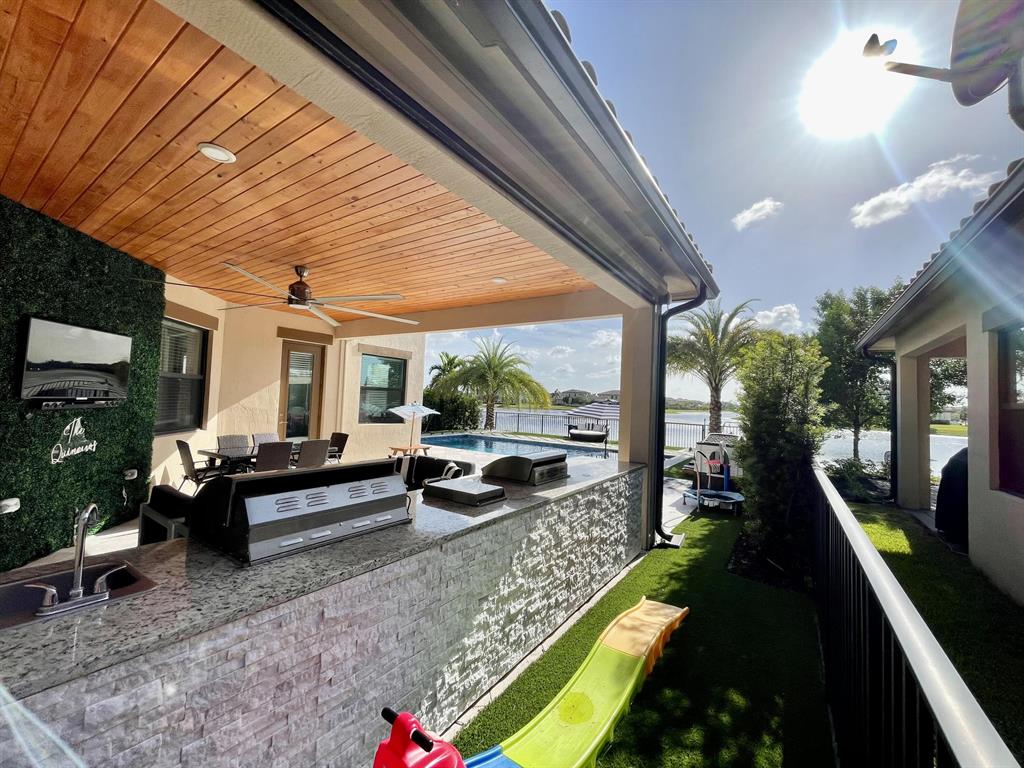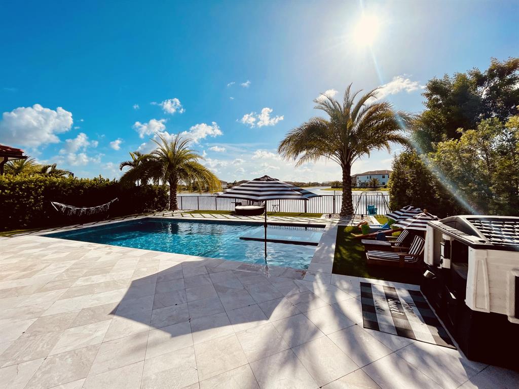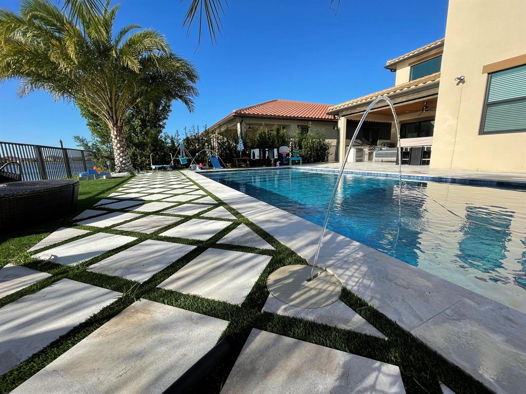 Fully upgraded Tern model in Parkland Bay with backyard overlooking large lake with sunset views. Built in 2020, this elegant home has 5 Bedrooms,4 baths, souring 21 foot ceilings in the extra large main living room, open floor kitchen and family room, formal dining room for those special occasions and so much more. Private Retreat styled back yard features custom heated SALTWATER pool w/ sundeck and jacuzzi. Home is fully automated, Mosquitoes misting system, retractable screens on lanai & artificial turf throughout entire backyard. Custom outdoor kitchen with grill, griddle, single burner, fridge and sink. Hurricane Impact windows and doors and brand new generator. Air conditioned 3 car garage with custom flooring (can be used as a gym/game room). Community is 24/7 guard-gated.