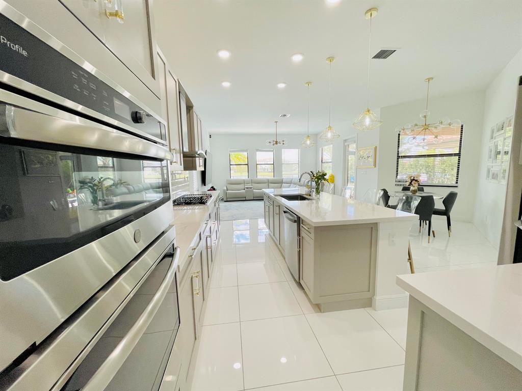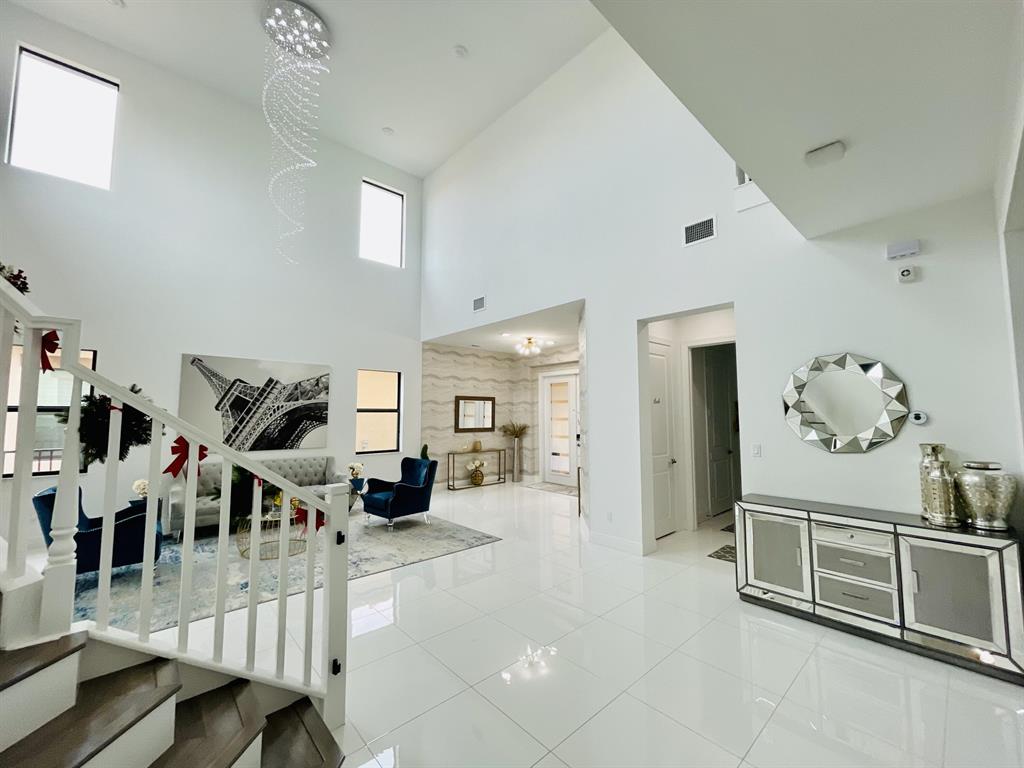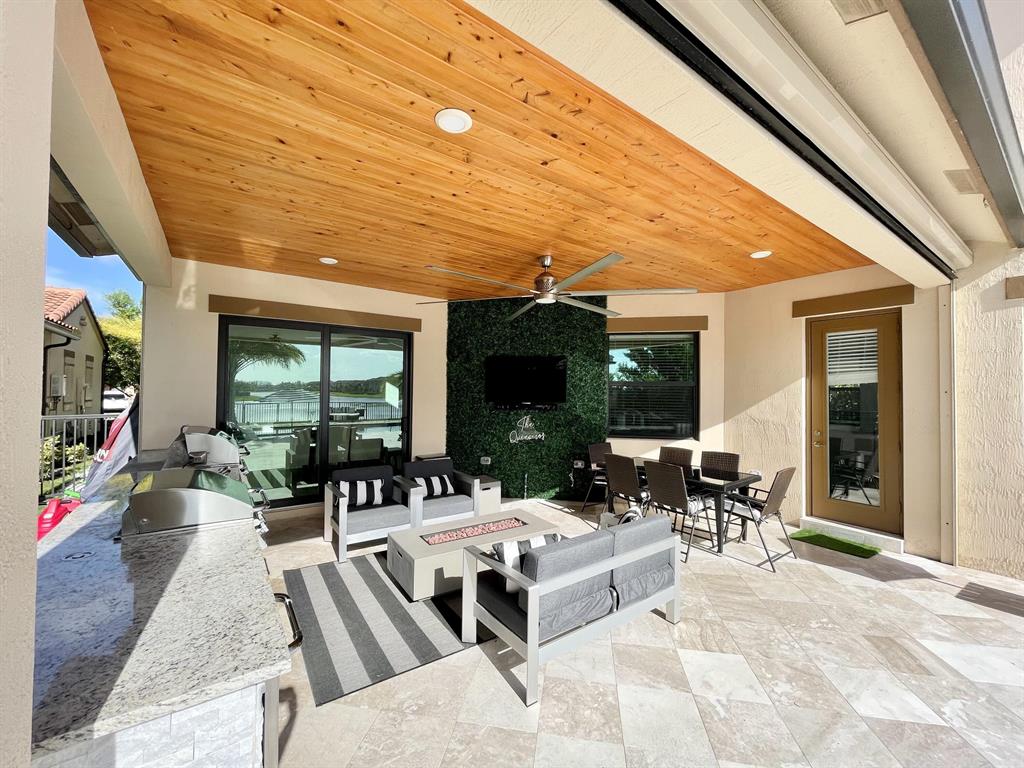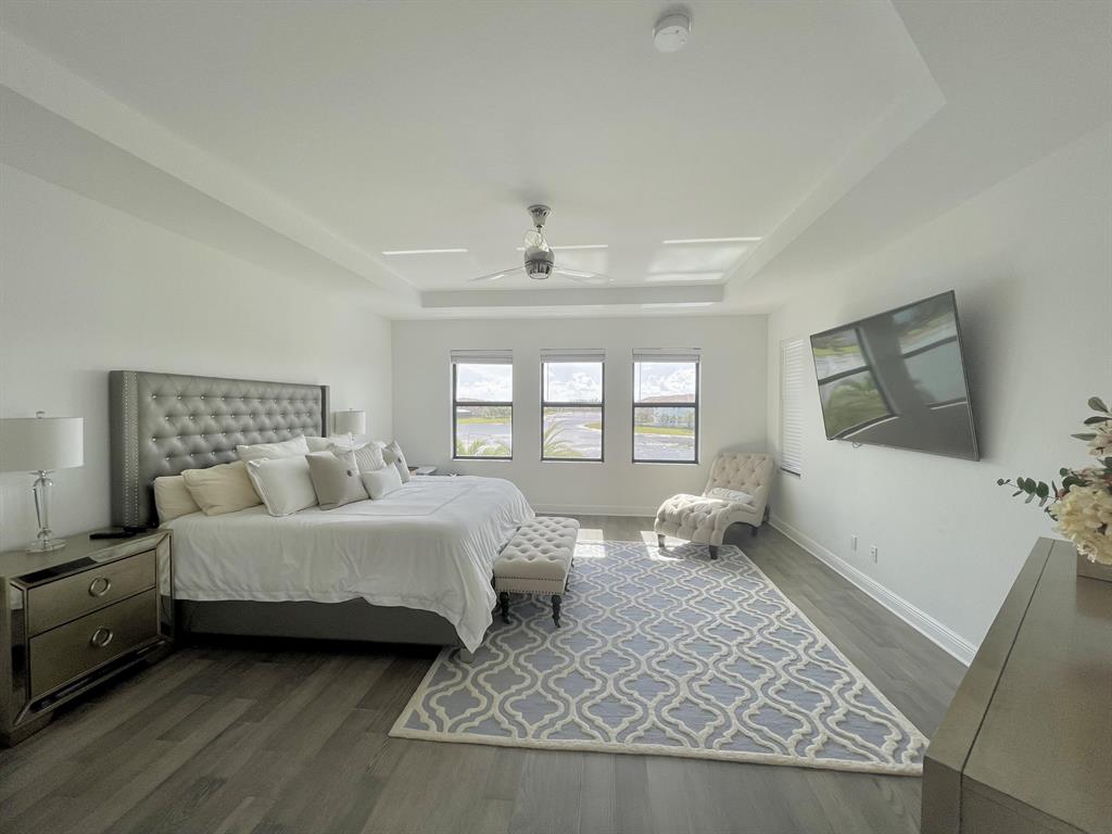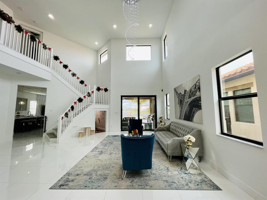 Fully upgraded Tern model in Parkland Bay with backyard overlooking large lake with sunset views. Built in 2020, this elegant home has 5 Bedrooms,4 baths, souring 21 foot ceilings in the extra large main living room, open floor kitchen and family room, formal dining room for those special occasions and so much more. Private Retreat styled back yard features custom heated SALTWATER pool w/ sundeck and jacuzzi. Home is fully automated, Mosquitoes misting system, retractable screens on lanai & artificial turf throughout entire backyard. Custom outdoor kitchen with grill, griddle, single burner, fridge and sink. Hurricane Impact windows and doors and brand new generator. Air conditioned 3 car garage with custom flooring (can be used as a gym/game room). Community is 24/7 guard-gated.