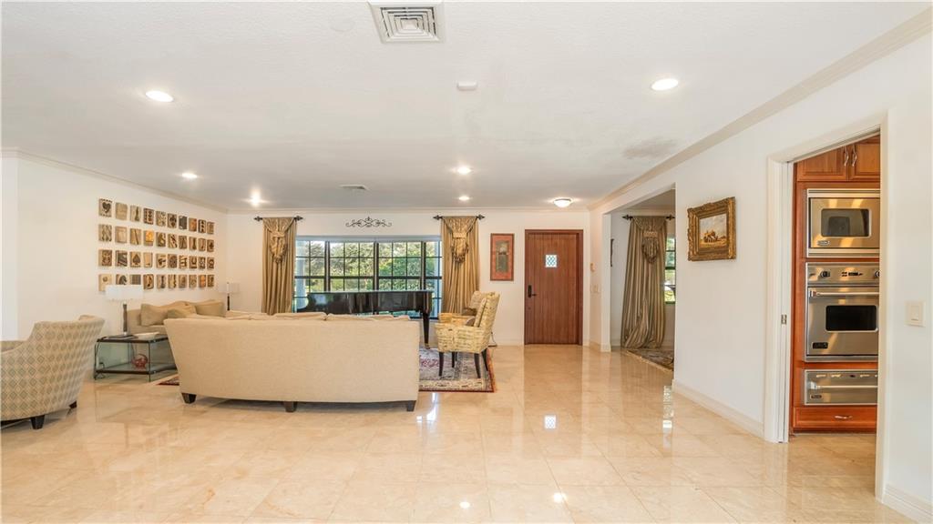 Elegant Mediterranean exterior ties in historic European Architecture with timeless style and charm. Expansive 3.67 acres of manicured & lighted landscape with pool, jacuzzi & hurricane rated pergola make this estate an entertaining paradise. 2 bedroom guest house boasts new Roof, Impact windows & upgraded electrical. Main House features West wing dedicated to 3 bedrooms, bath & a second master ensuite for maid/Nanny. East wing hosts the Master with attached sitting room/gym & Private stairs to dual office w/wet bar & patio. Ample room for entertaining with formal living, dining rooms & family room with fireplace off the eat in kitchen. Chef's dream kitchen w/Viking appliances, 2 Sub Zero refrigerators & 3 ovens. Complete house generator, Exquisite neighborhood, A+ Schools & much more!