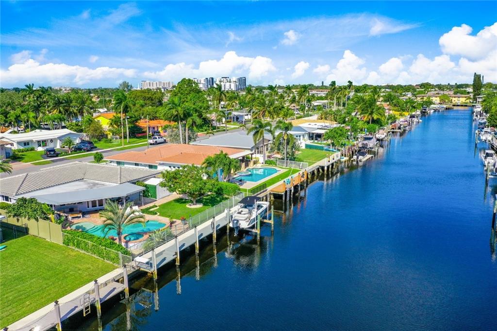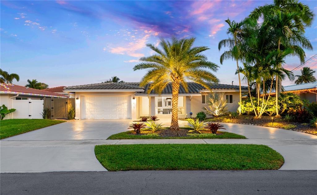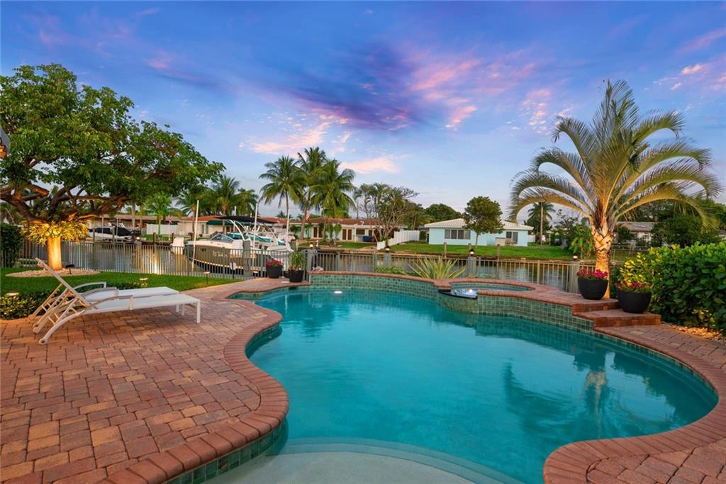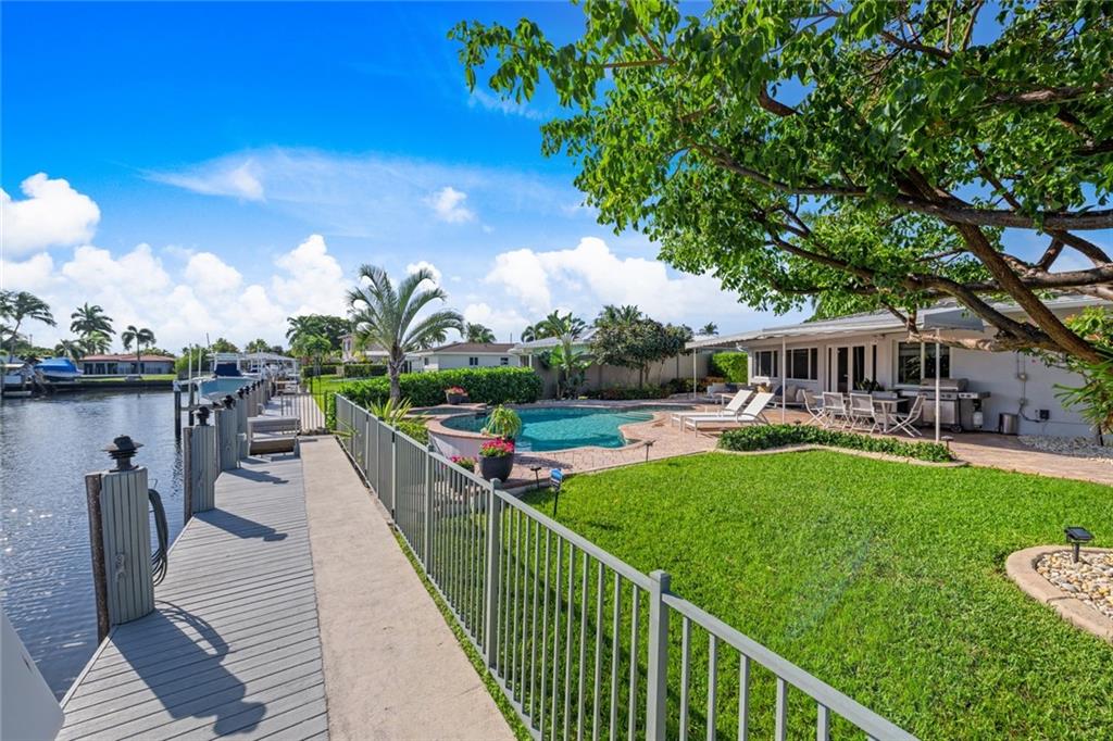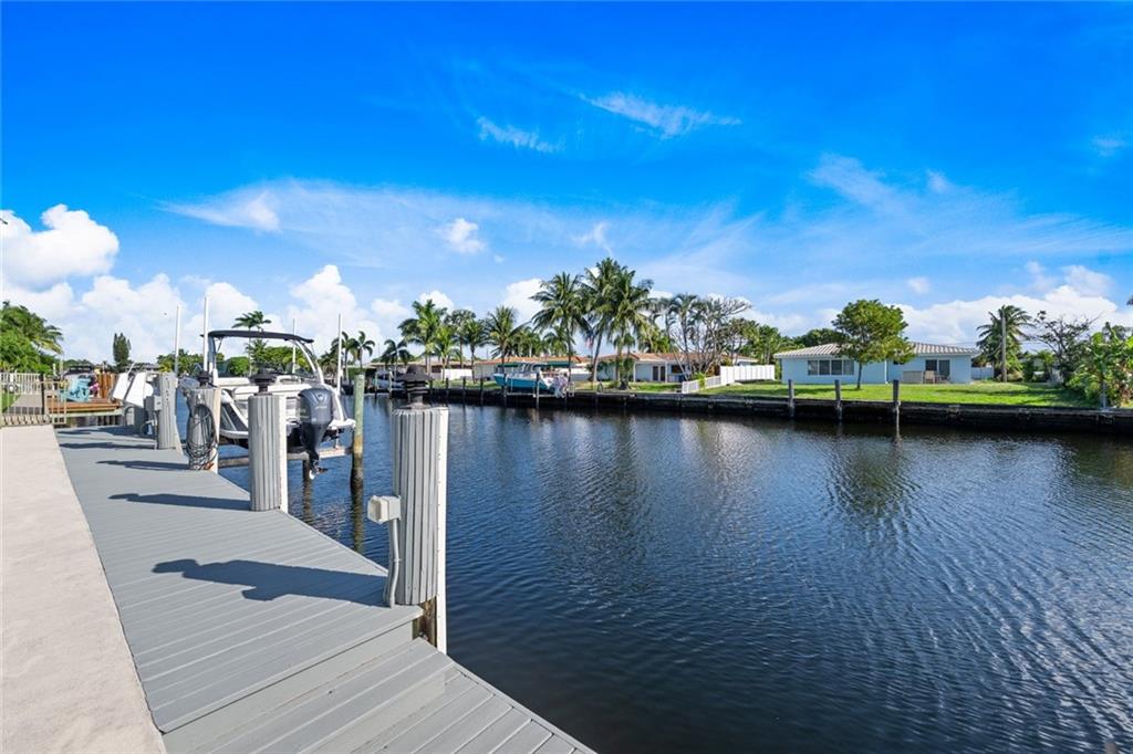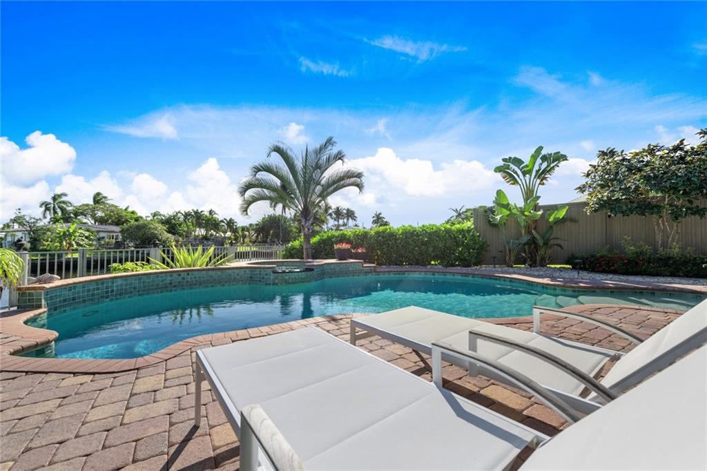 Welcome to this elegantly updated turn key home. The East facing backyard allows an ocean breeze with ocean access. Located 10 mins from the beach, lushly landscaped, modern 1,766± SF 3 bed, 2 bath single family home. The neutral colored living area covered in luxury flooring flows into the kitchen which makes it perfect for entertaining. All new stainless steel appliances, gas range, natural stone quartzite countertops and breakfast island. Exit the living room French doors to the free-form salt water pool oasis with a spa. Featuring 70’± of direct waterfront dockage with 10K boat lift, reinforced seawall cap and batter pilings. This home is move in ready, roof 2019, impact windows, tankless water heater, new washer & dryer, new generator, pool heater with automated system.