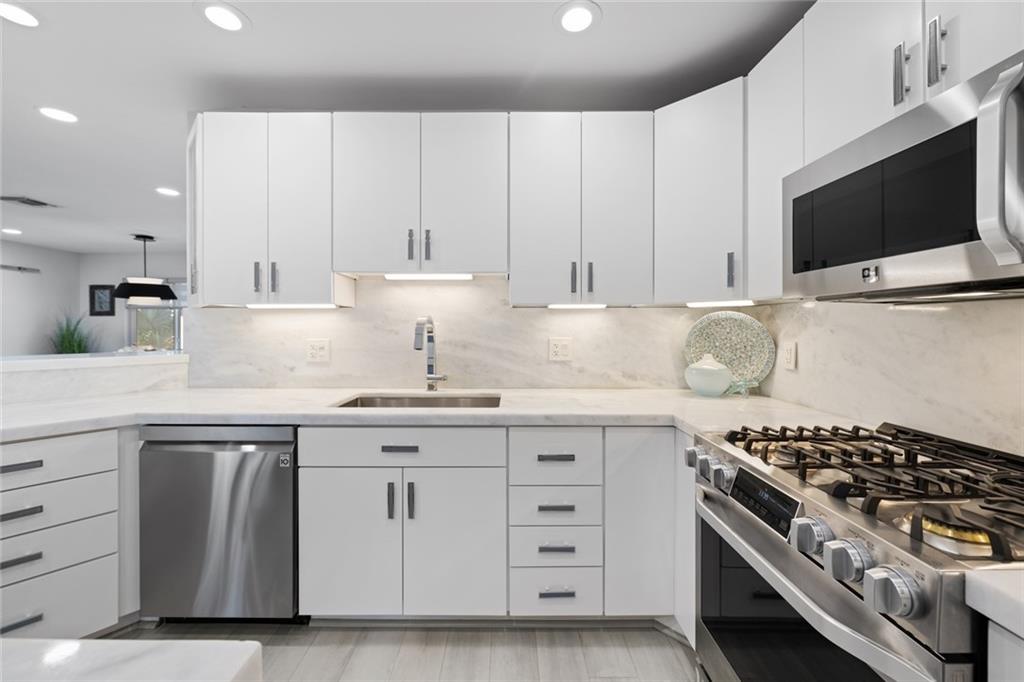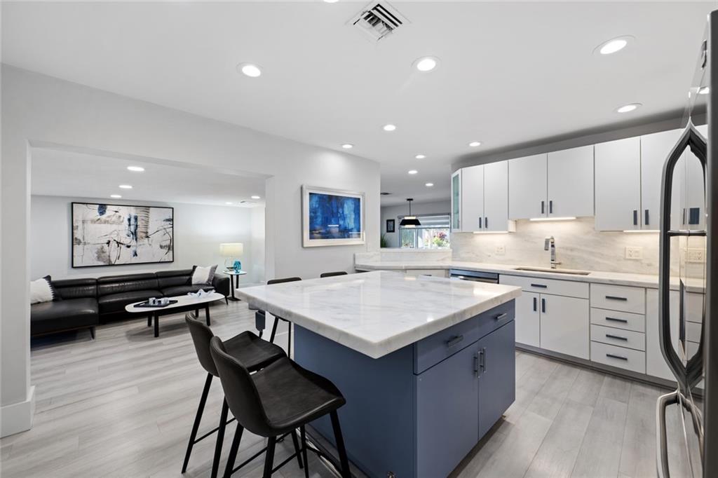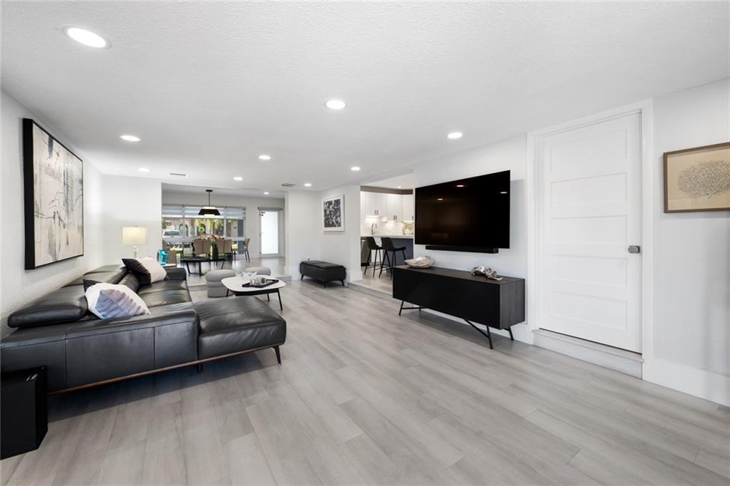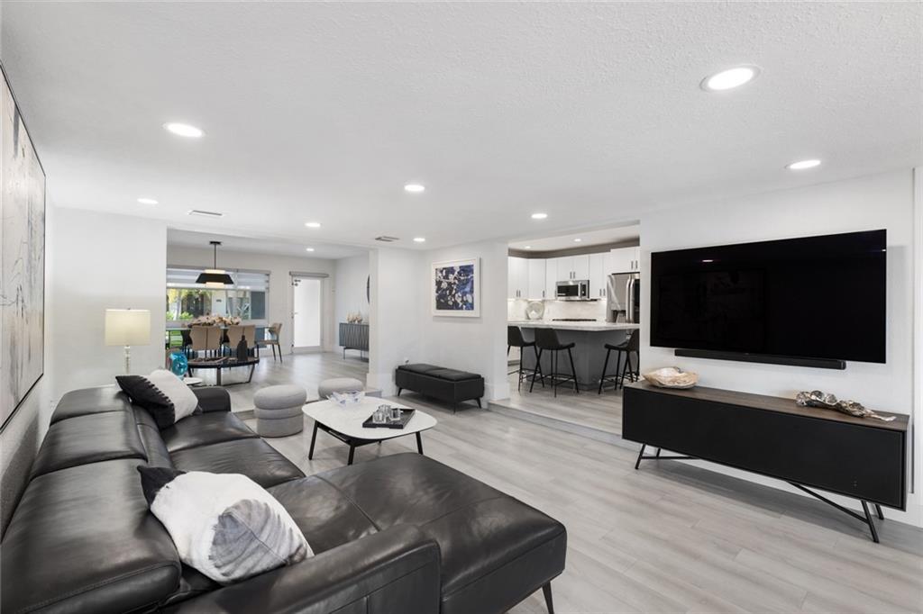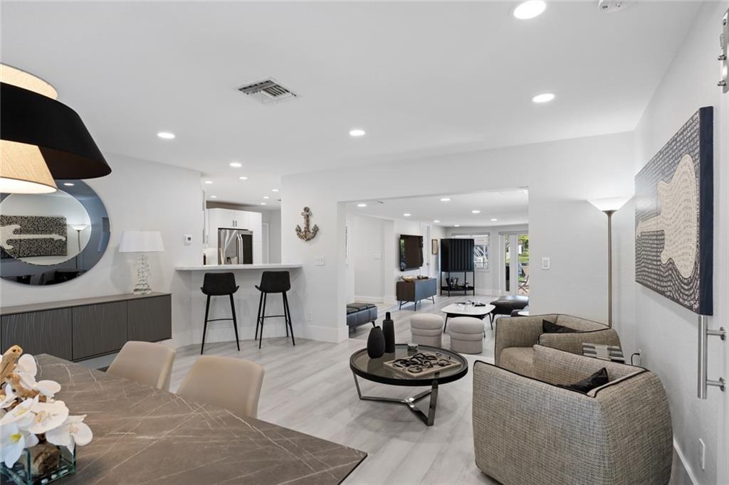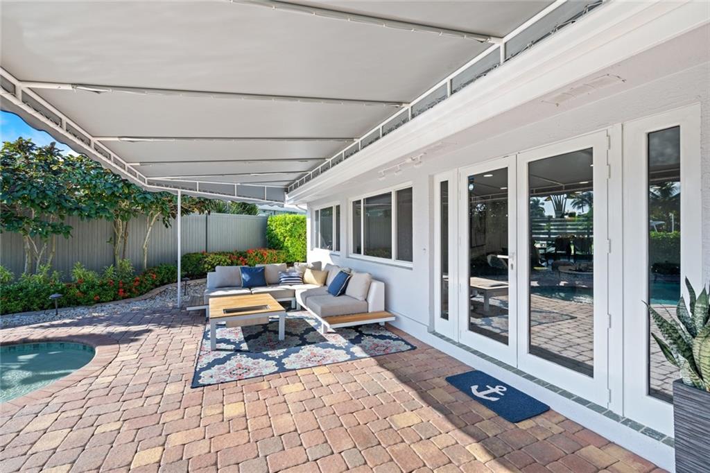 Welcome to this elegantly updated turn key home. The East facing backyard allows an ocean breeze with ocean access. Located 10 mins from the beach, lushly landscaped, modern 1,766± SF 3 bed, 2 bath single family home. The neutral colored living area covered in luxury flooring flows into the kitchen which makes it perfect for entertaining. All new stainless steel appliances, gas range, natural stone quartzite countertops and breakfast island. Exit the living room French doors to the free-form salt water pool oasis with a spa. Featuring 70’± of direct waterfront dockage with 10K boat lift, reinforced seawall cap and batter pilings. This home is move in ready, roof 2019, impact windows, tankless water heater, new washer & dryer, new generator, pool heater with automated system.