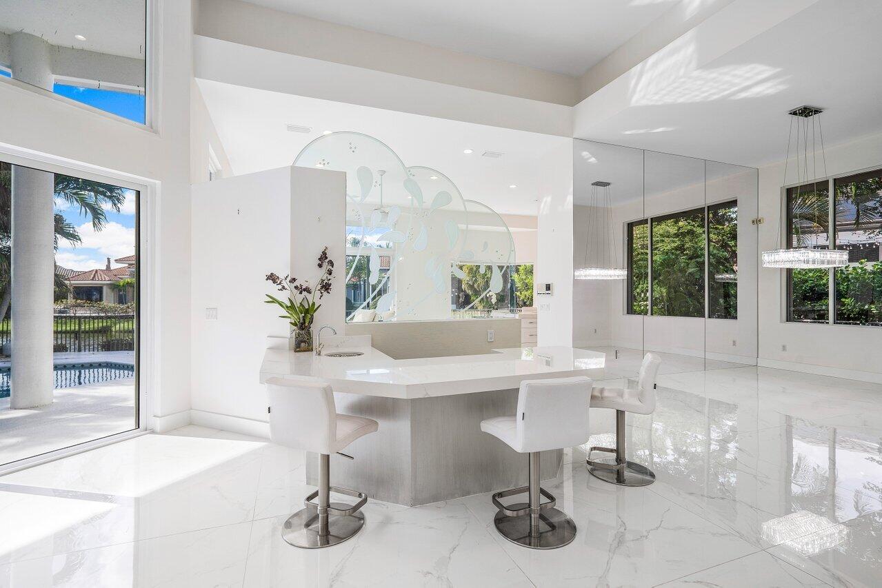 Stunning upgraded lakefront home, with soaring ceilings and floor-to-ceiling windows. The bright open floor plan, with beautiful views of the pool and lake, make this home perfect for entertaining or enjoying the Florida lifestyle. This large modern home features 4 bd/4br and an office. This neighborhood boasts meticulously manicured landscaping, oversized lakes, first-class amenities and 24-hour-maned guard gate.