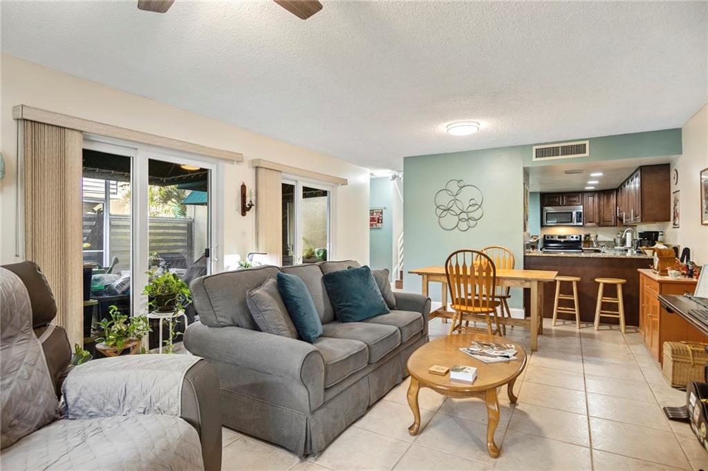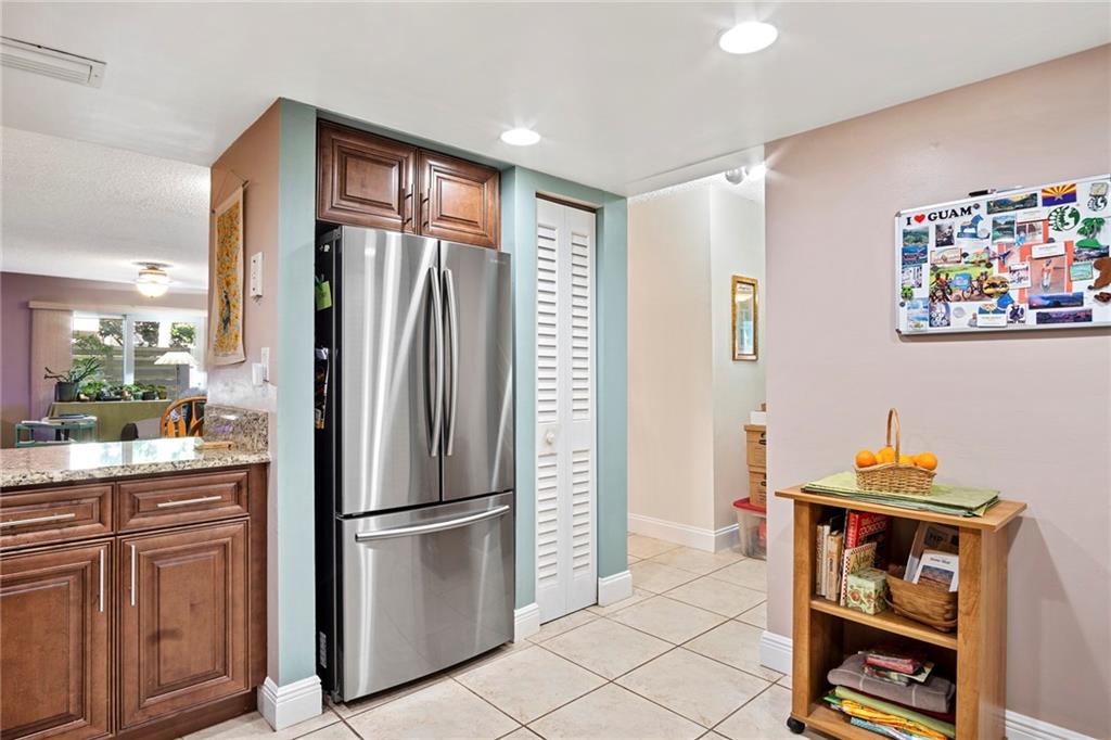 Updated 3 bedroom, 2.5 bath/townhome with new roof (2019), new electrical panel (2019), new awnings (2021), new fence (2021), and new refrigerator (2021). All kitchen cabinets/drawers have soft closures; granite countertops and stainless steel appliances accentuate the spacious kitchen. Three sets of sliding doors lead to a private screened-in patio. All windows/doors are impact resistant. Neutral tile on the 1st floor and laminate flooring upstairs; natural light throughout. One bedroom/half-bath on the first floor; two bedrooms and two full baths on the second floor. All bathrooms have granite vanity tops with neutral tiles. ALL AGES WELCOME!